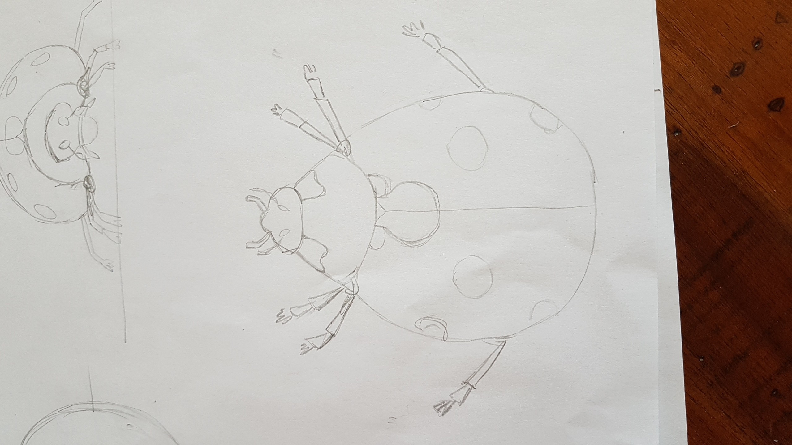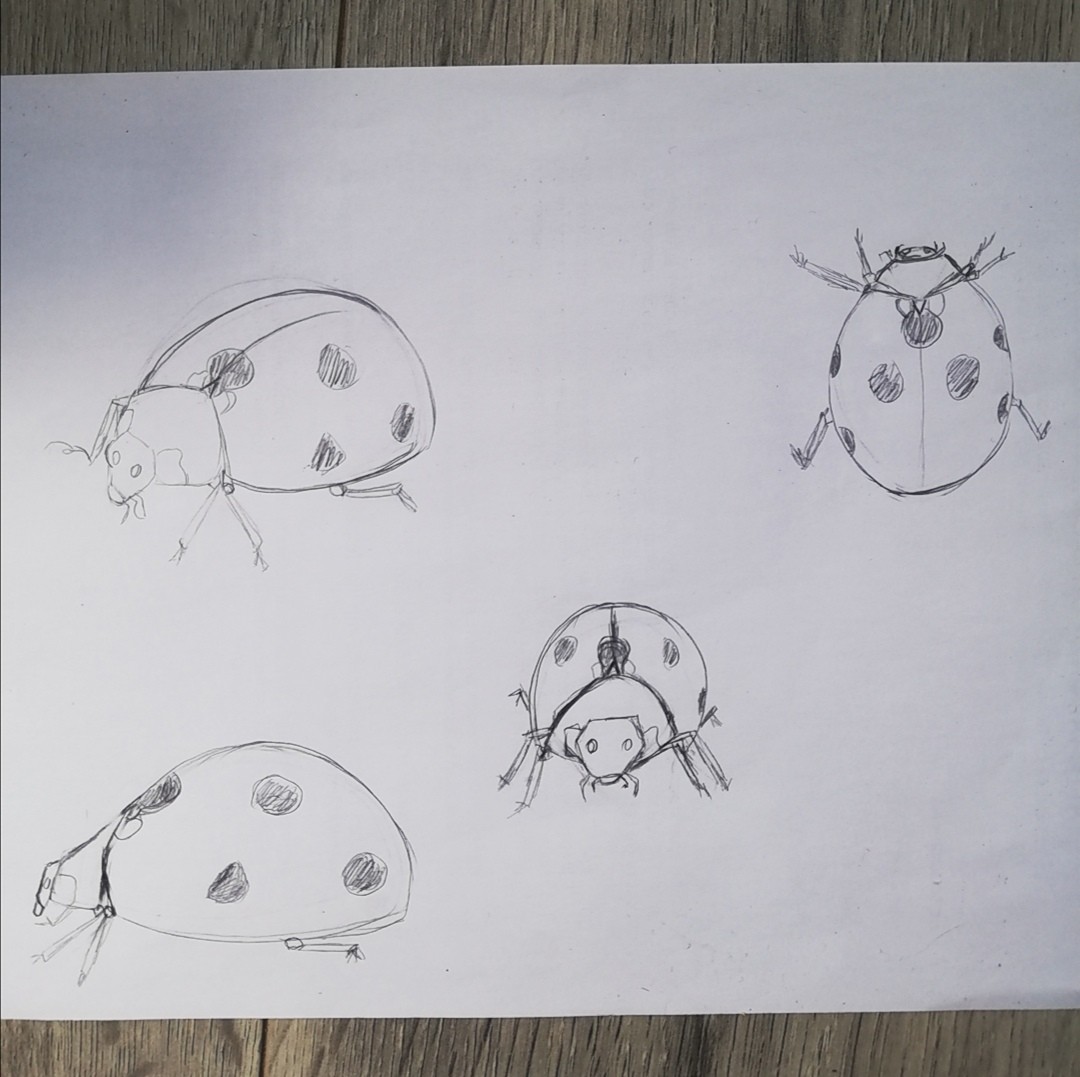 I struggled with the ladybug to visualize the volumes of the head and represent it from different angles. The legs also posed a problem in the different views. To do over after correction I think. But I am open to advice. Thank you.