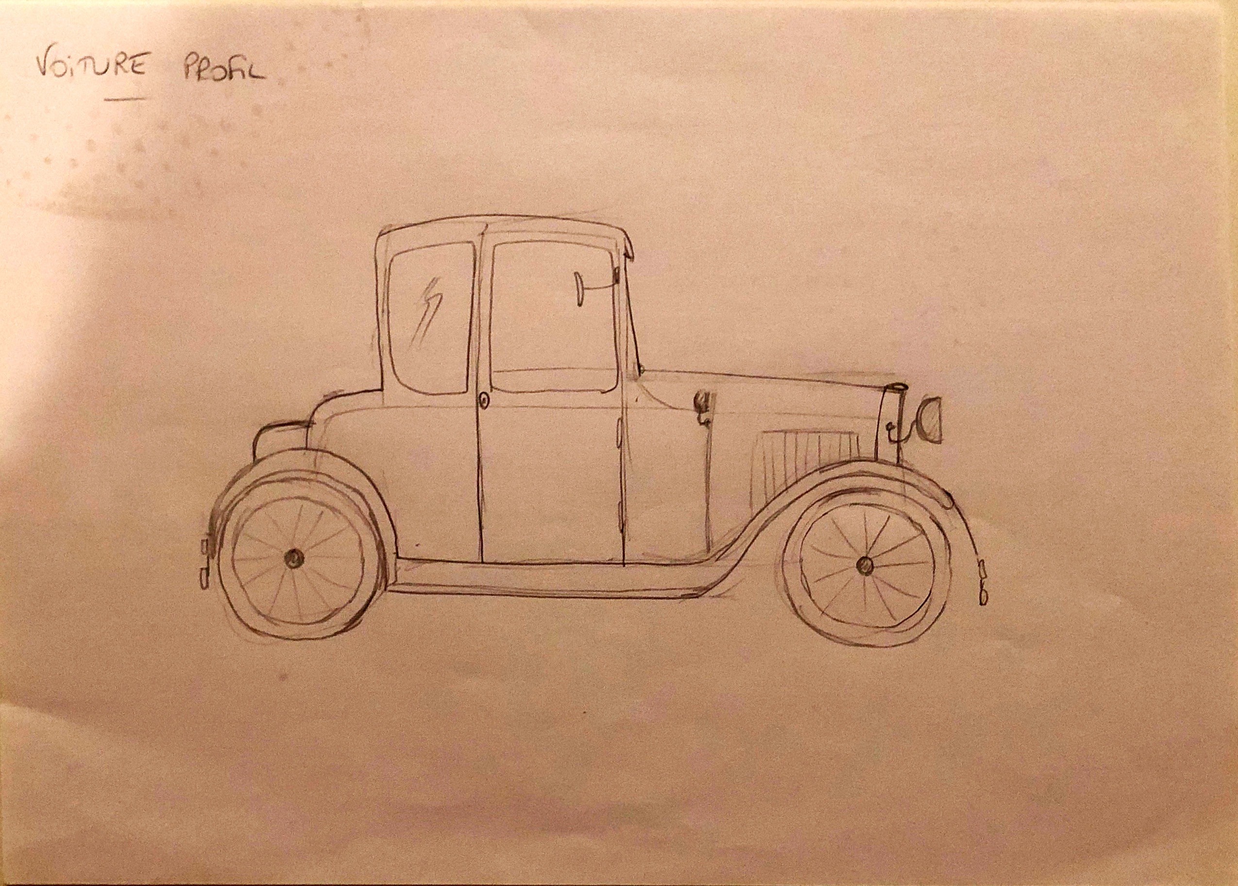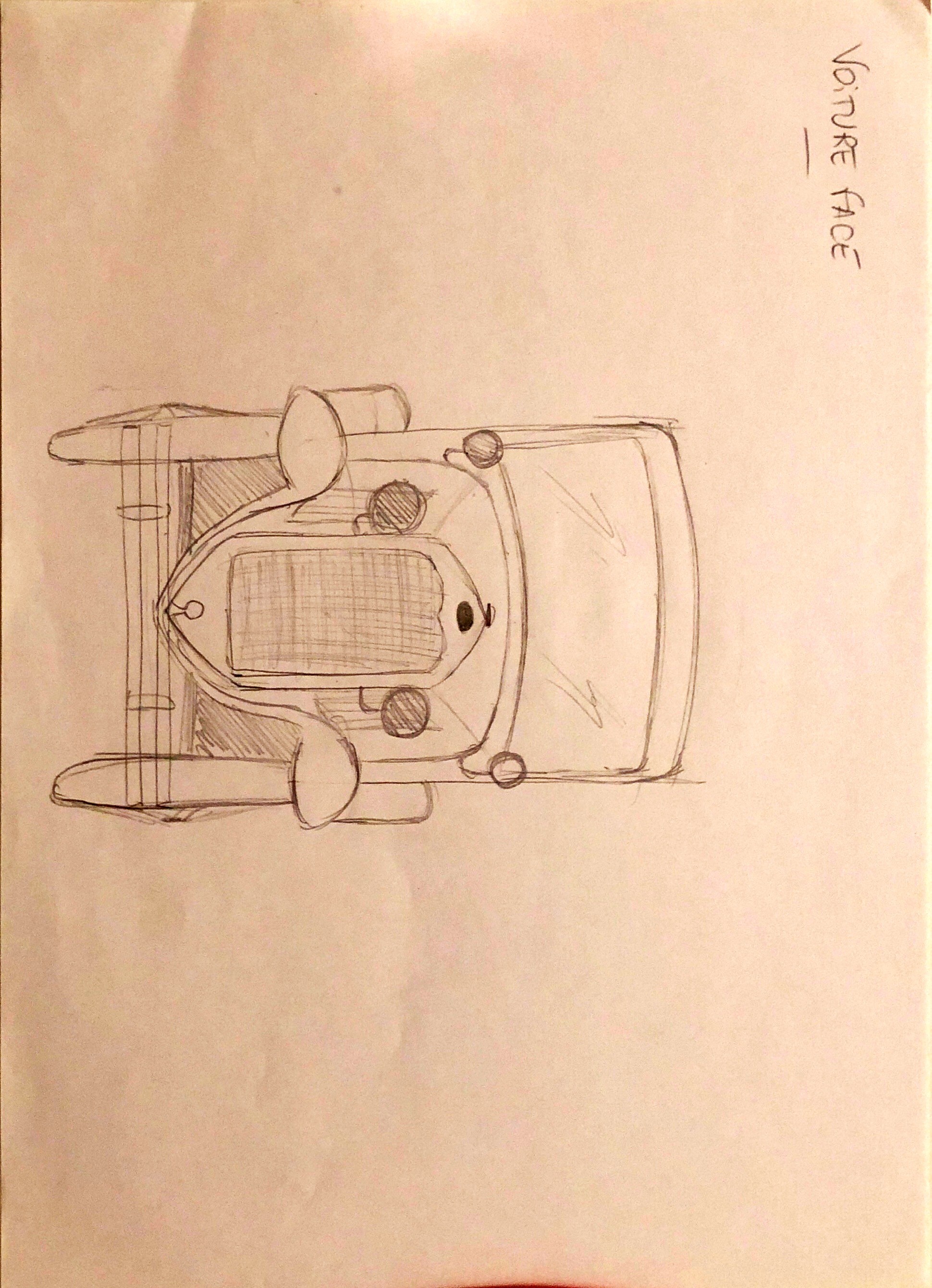 Il ne faut jamais dire jamais....finalement j'ai dessiné la voiture de face, de profil et vue d'en haut.