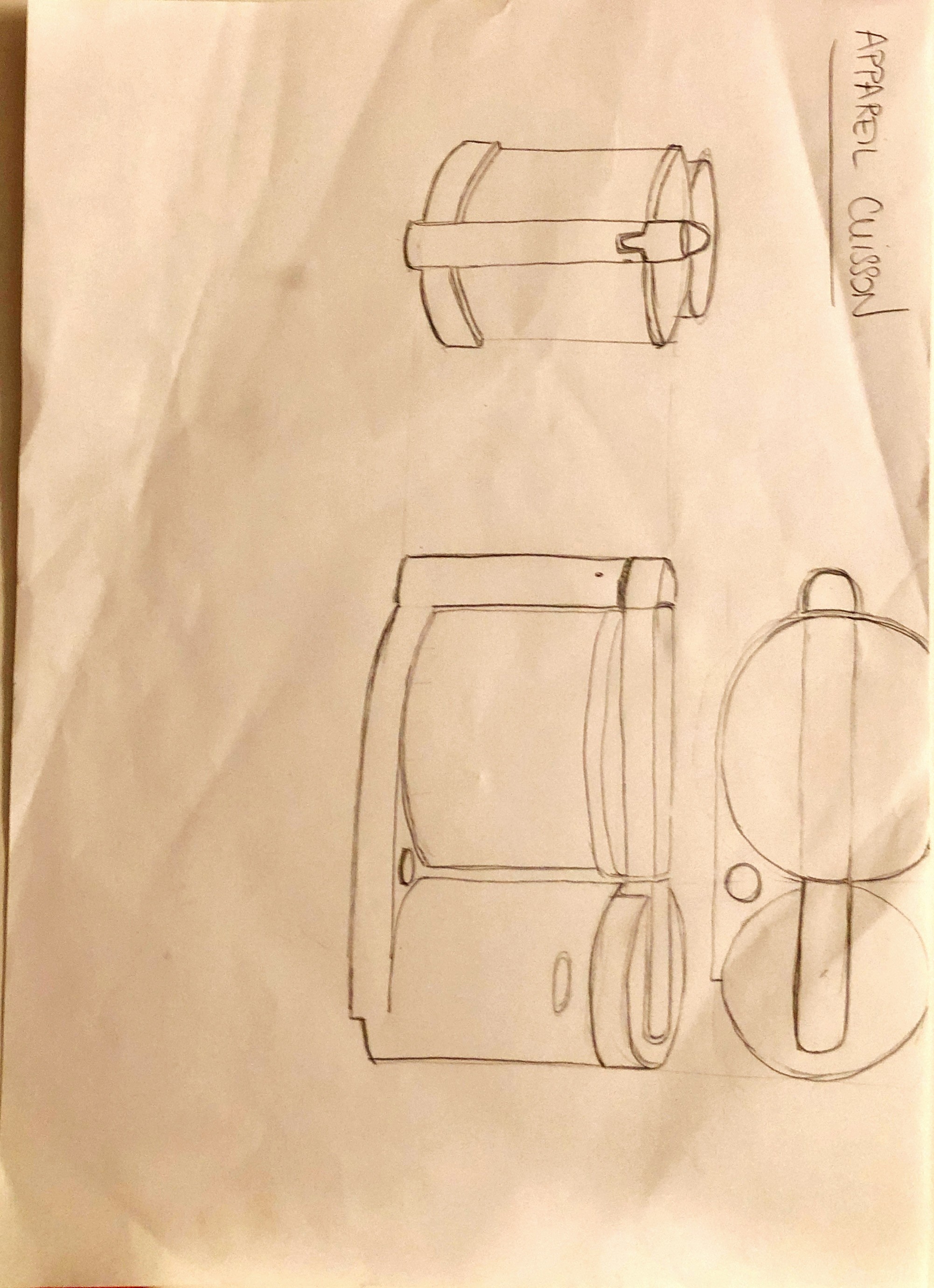 J'ai tenté de représenter l'objet vue de face, de profil et d'en haut.