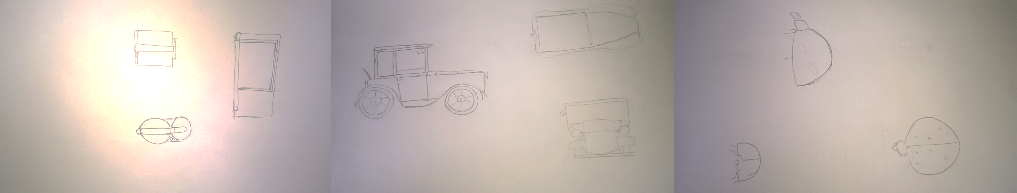 I'll leave you to redo the car and the ladybug (especially the top view)! Keep it up, you’re on the right track 🙂