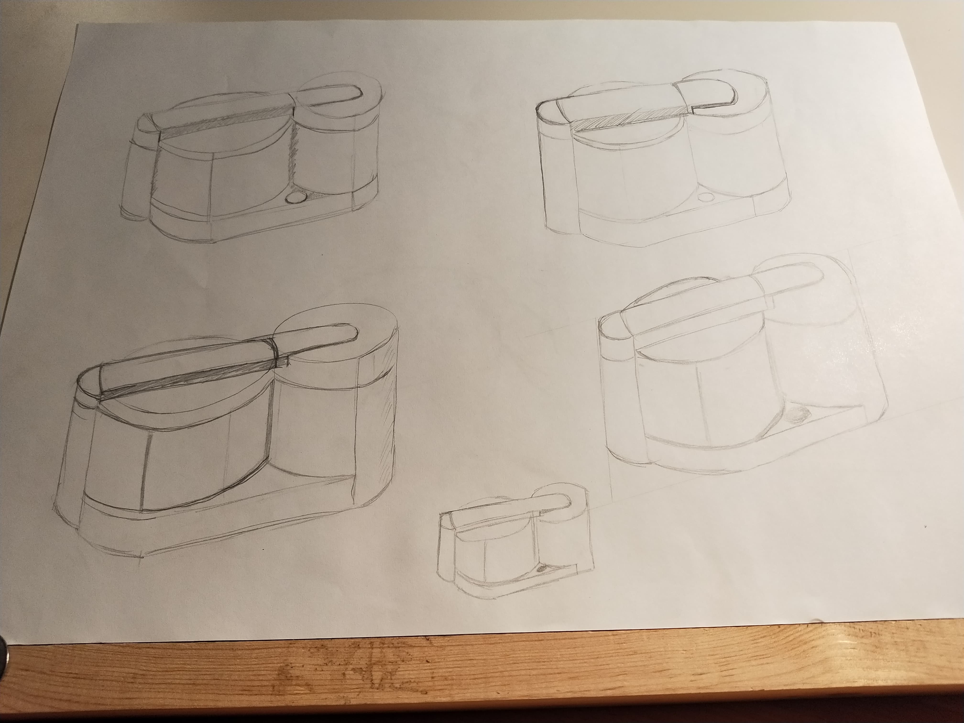 Après de nombreux essais désastreux, voici ce j'ai pu faire . Je crois que j'ai du mal à vraiment m'imaginer les objets dans de différents angles de vue... Merci pour votre retour