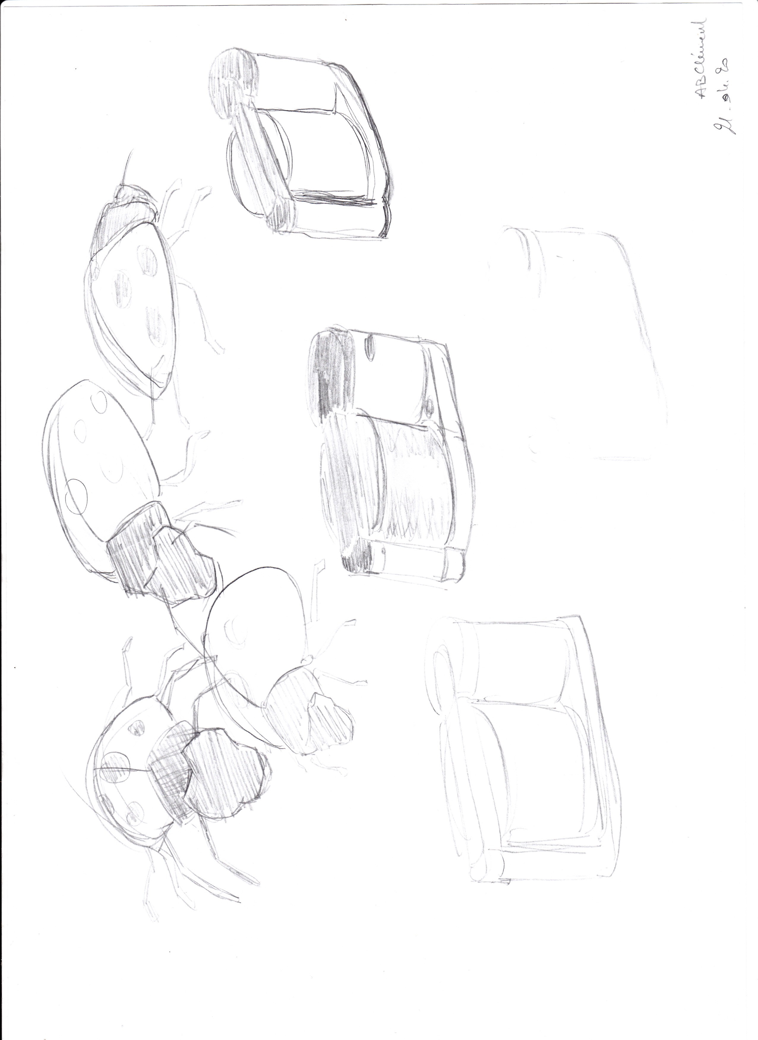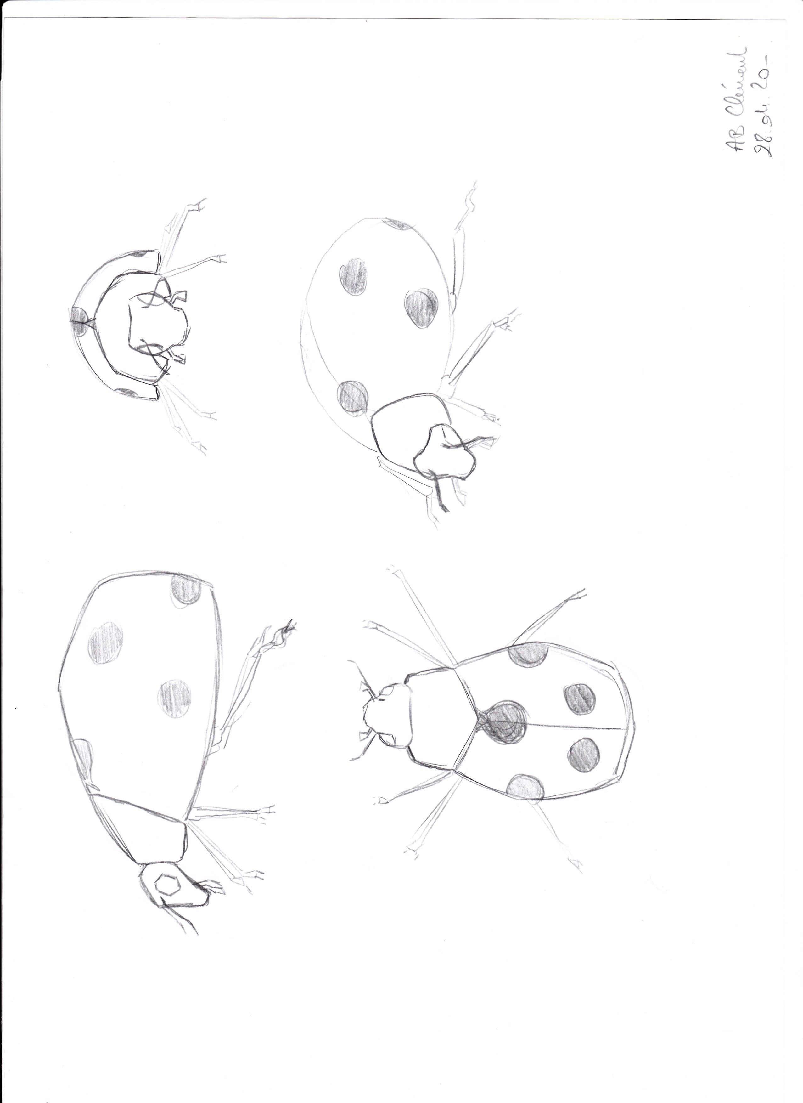 Ton travail est vraiment pas mal! Pour les coccinelles sur la première page elles sont toutes réussies, tu aurais juste du faire le corps de la coccinelle plus rond, plus bombé sur la vue d'en haut et peut être le cou un poil moins long, mais mise à part cela, c'est bien!