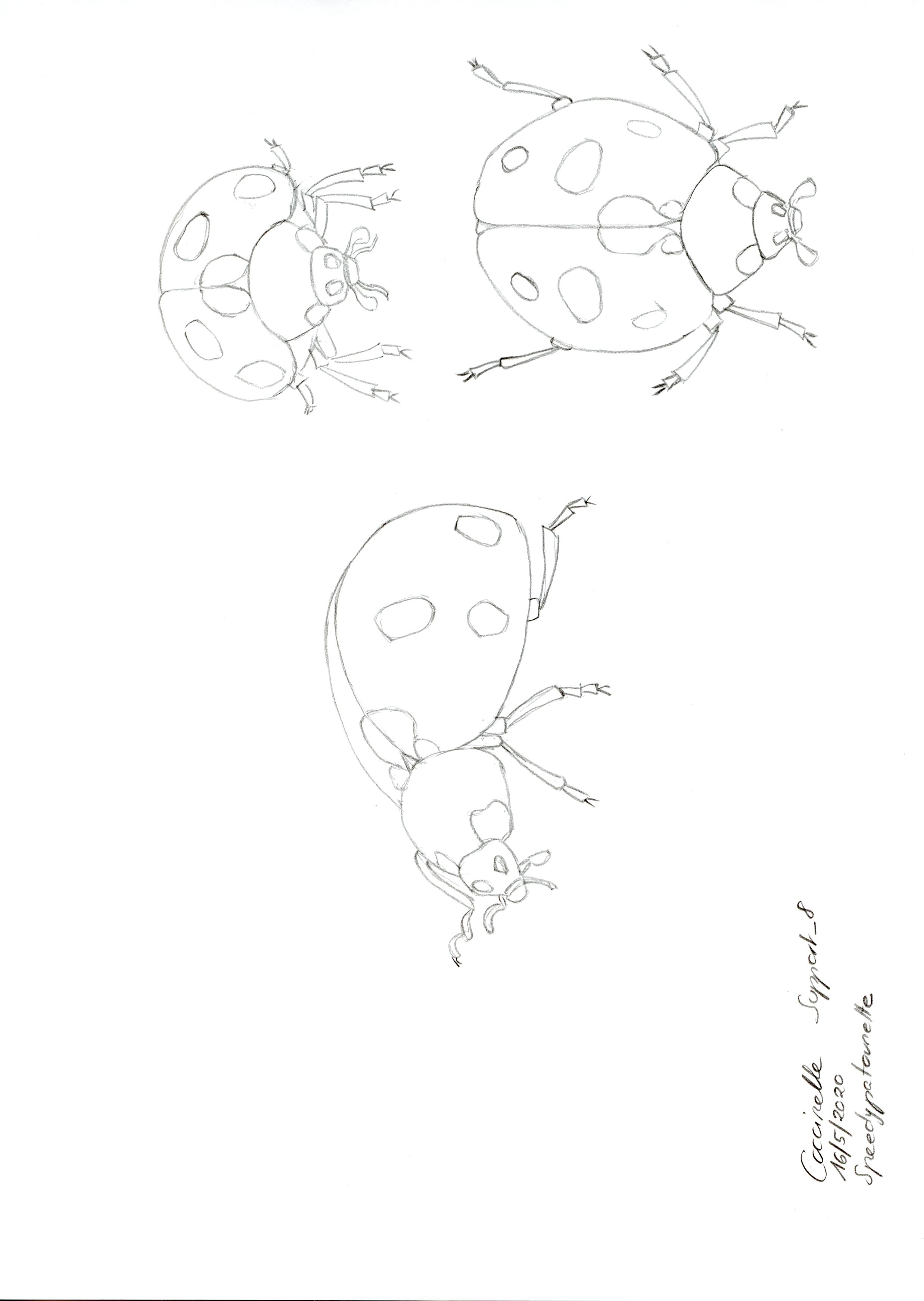 J'ai commencé par la coccinelle car cela me parlait plus, je soumets mon dessin à ta critique.