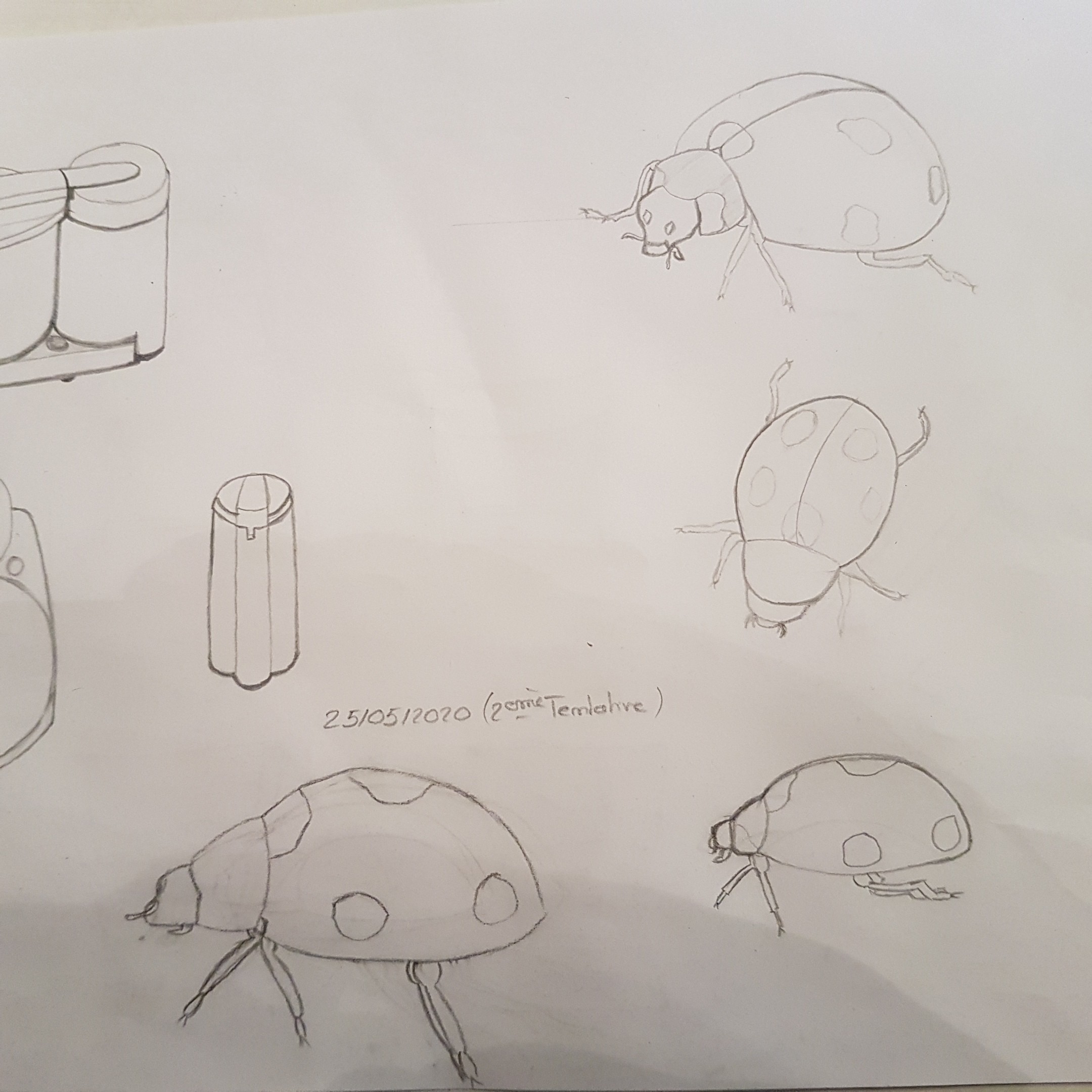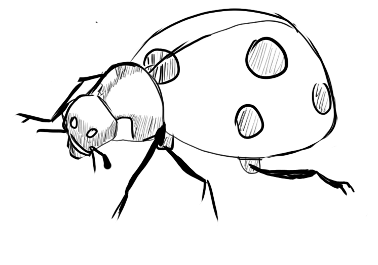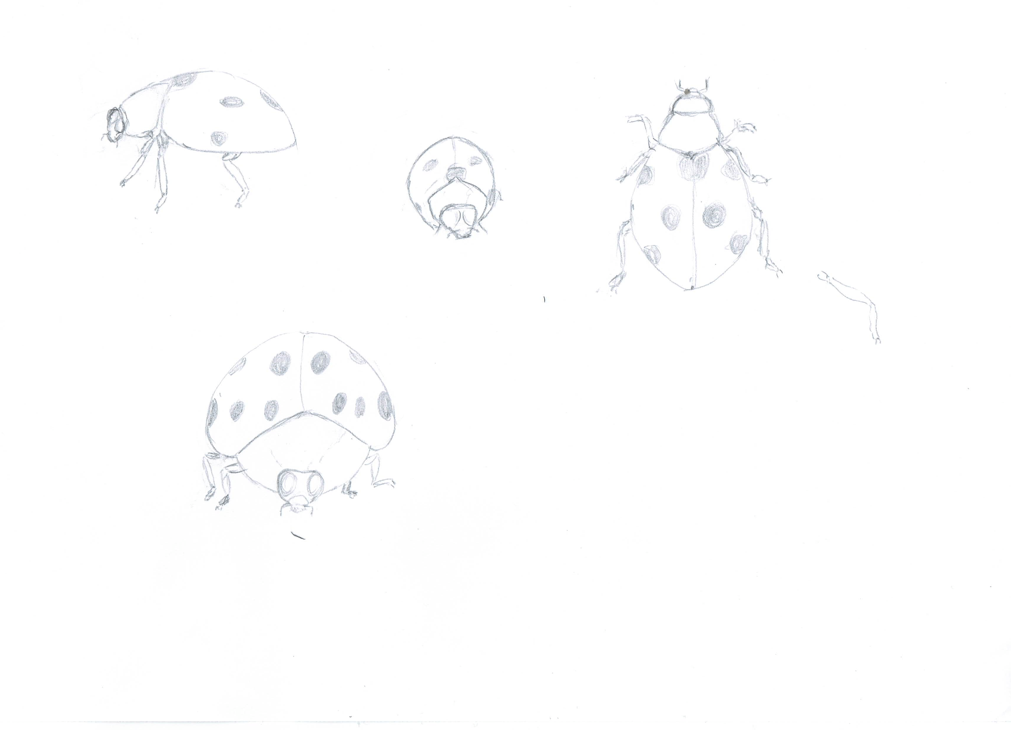 Je te conseille tout de même de bien observer la référence de la coccinelle, sur ton dessin, sa tête est un poil trop grande, et n'est pas axée correctement!