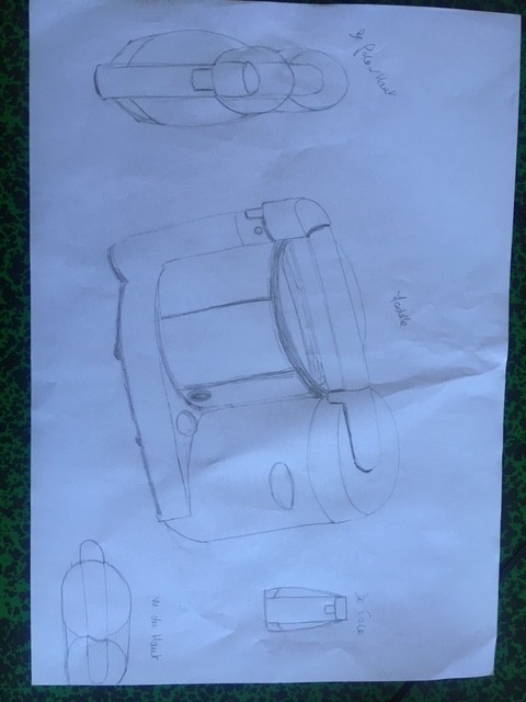 Ta vue de 3/4 est vraiment pas mal, il faut juste garder en tête que le 1er cylindre est plus large et plus court que le second! Par rapport à la vue de face-haut, il y a de très bonnes idées mais fais attention aux côtés de l'appareil, c'est un cylindre, il faudrait donc qu'ils soient moins arrondis!
