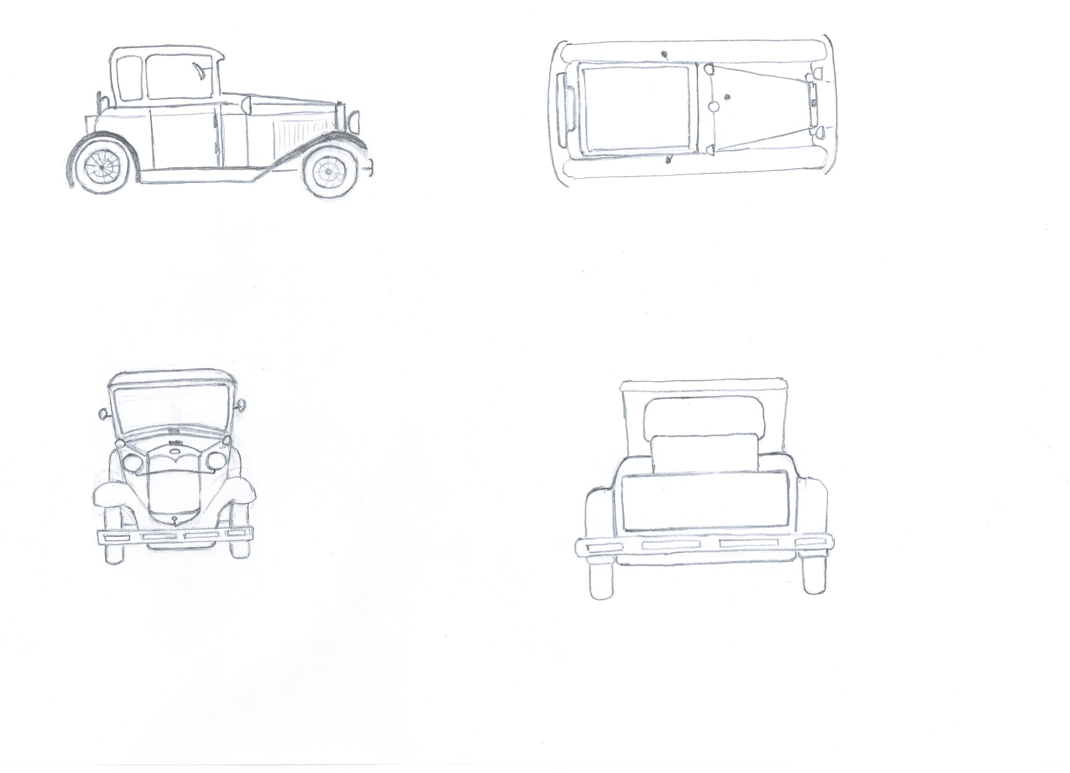 Attached are my drawings of the food processor, the ladybug, and the car for your feedback.