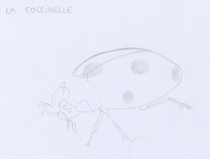 Je vous envoie la coccinelle revue , et mon travail sur la voiture. Il y a toujours des ratures bien que j'ai refait ''au propre'' !!