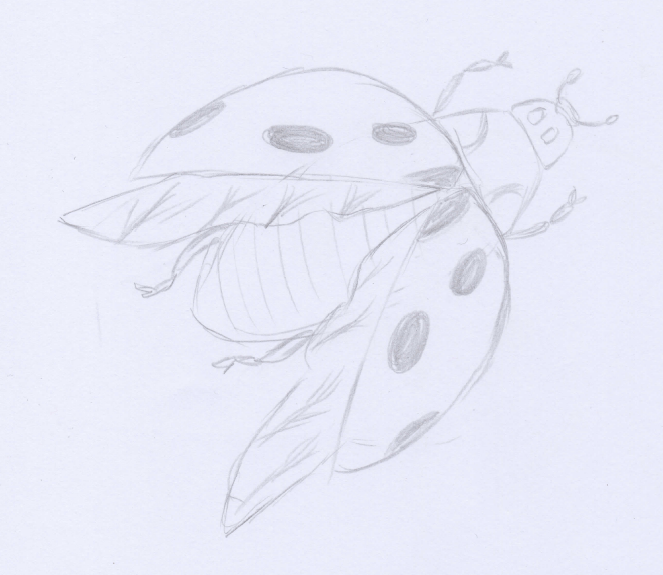 Pour la coccinelle, ici aussi c'est pas mal, il faut juste que tu fasses attention à la vue de 3/4, ici tu as rendu la coccinelle très plate, tu aurais du la faire plus bombé, ici elle ressemble presque à une punaise! Mais pour le reste des vues c'est bien!