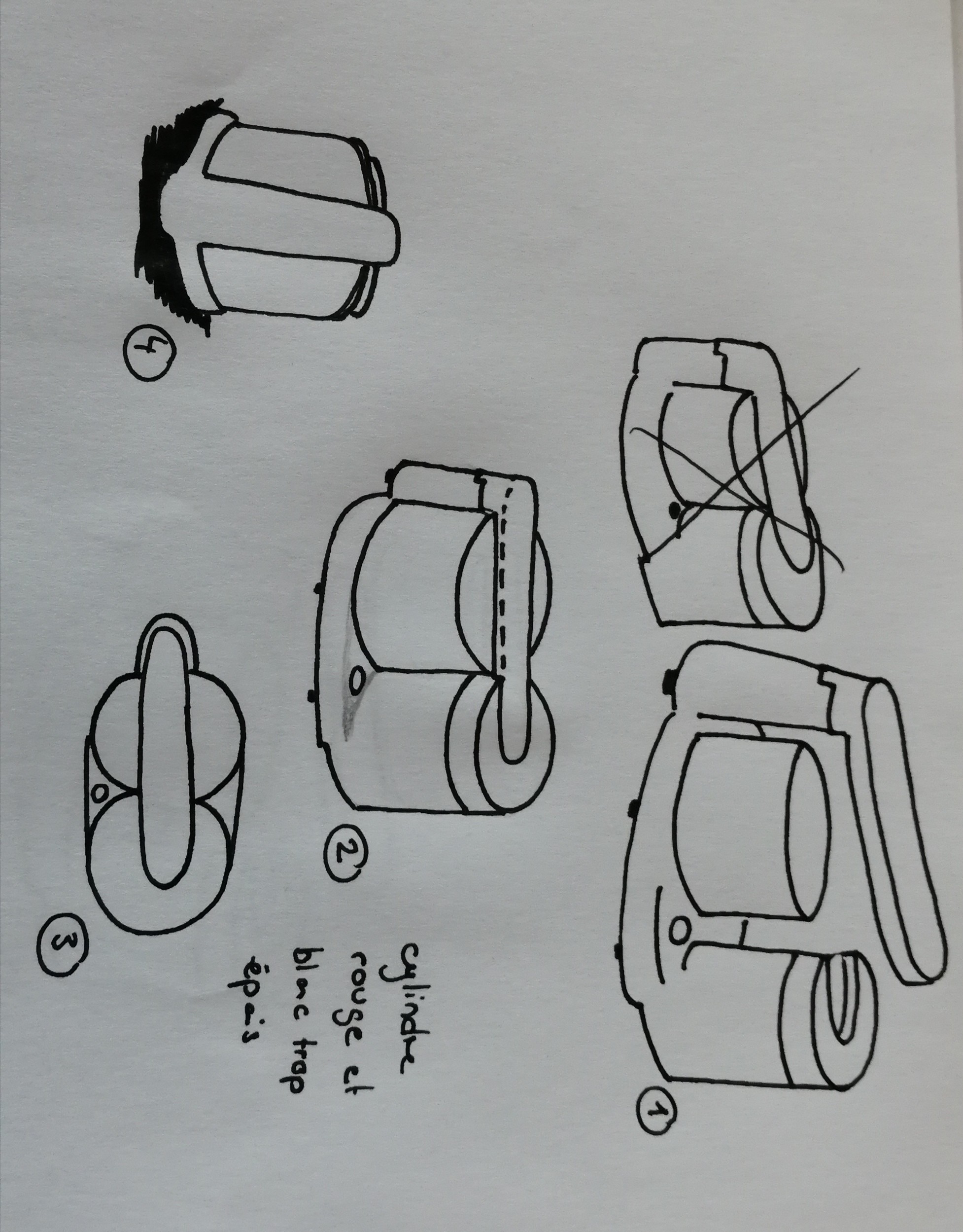 Pour le robot ménager : pour ta vue 1, l'idée est bonne mais les deux cylindres sont un peu trop éloignés l'un de l'autre! La vue 2 et 3 sont justes 🙂 Pour ta vue 4 tu as eu un petit souci au niveau de l'angle de vue, on dirait que ton robot ménager part vers l'avant, il devrait être bien droit!