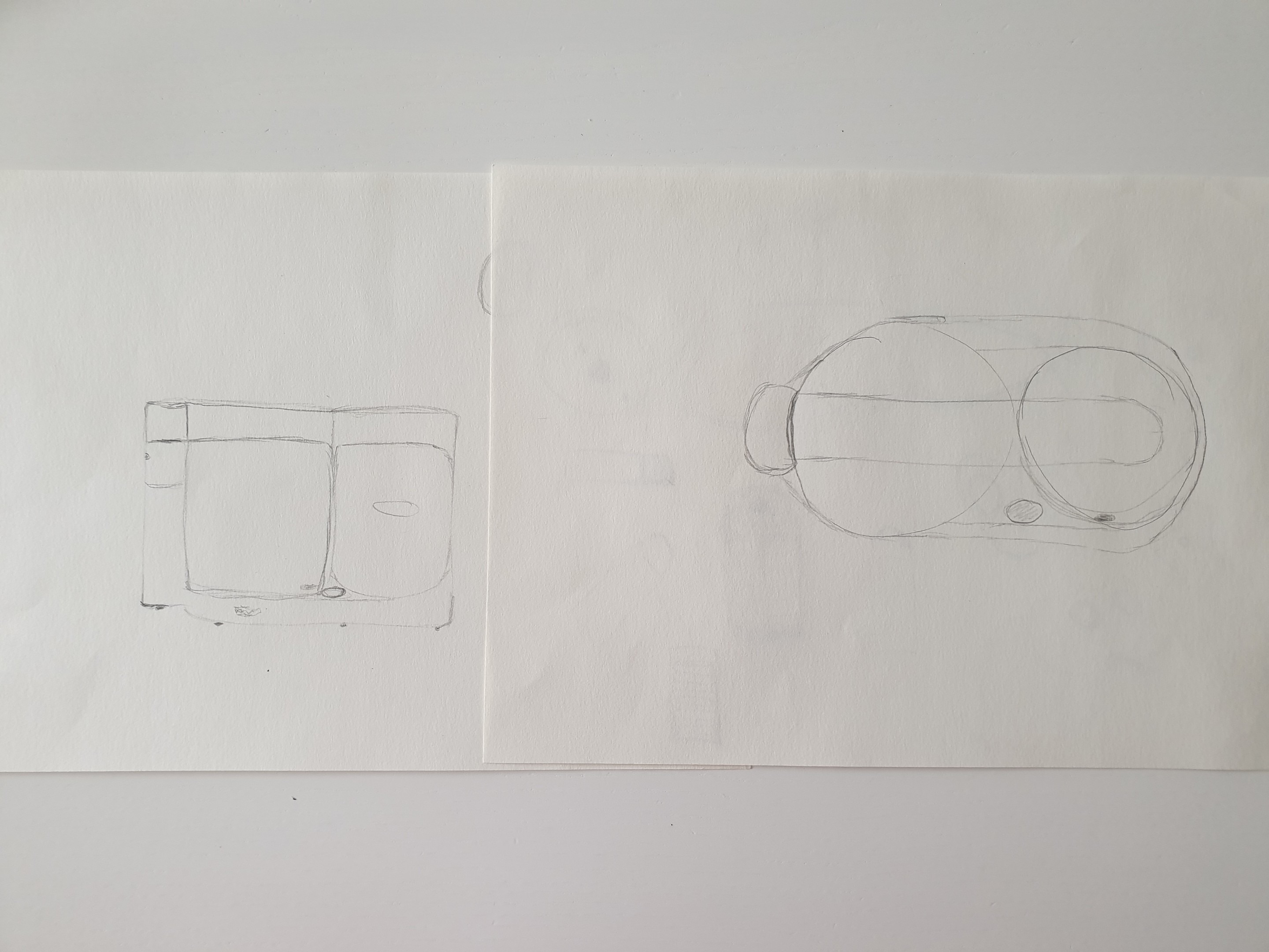 Pour le robot ménager l'idée est juste, fais juste attention au fait que le premier cylindre est plus large et plus court que le second, sur ton dessin de profil ce détail n'est pas visible!