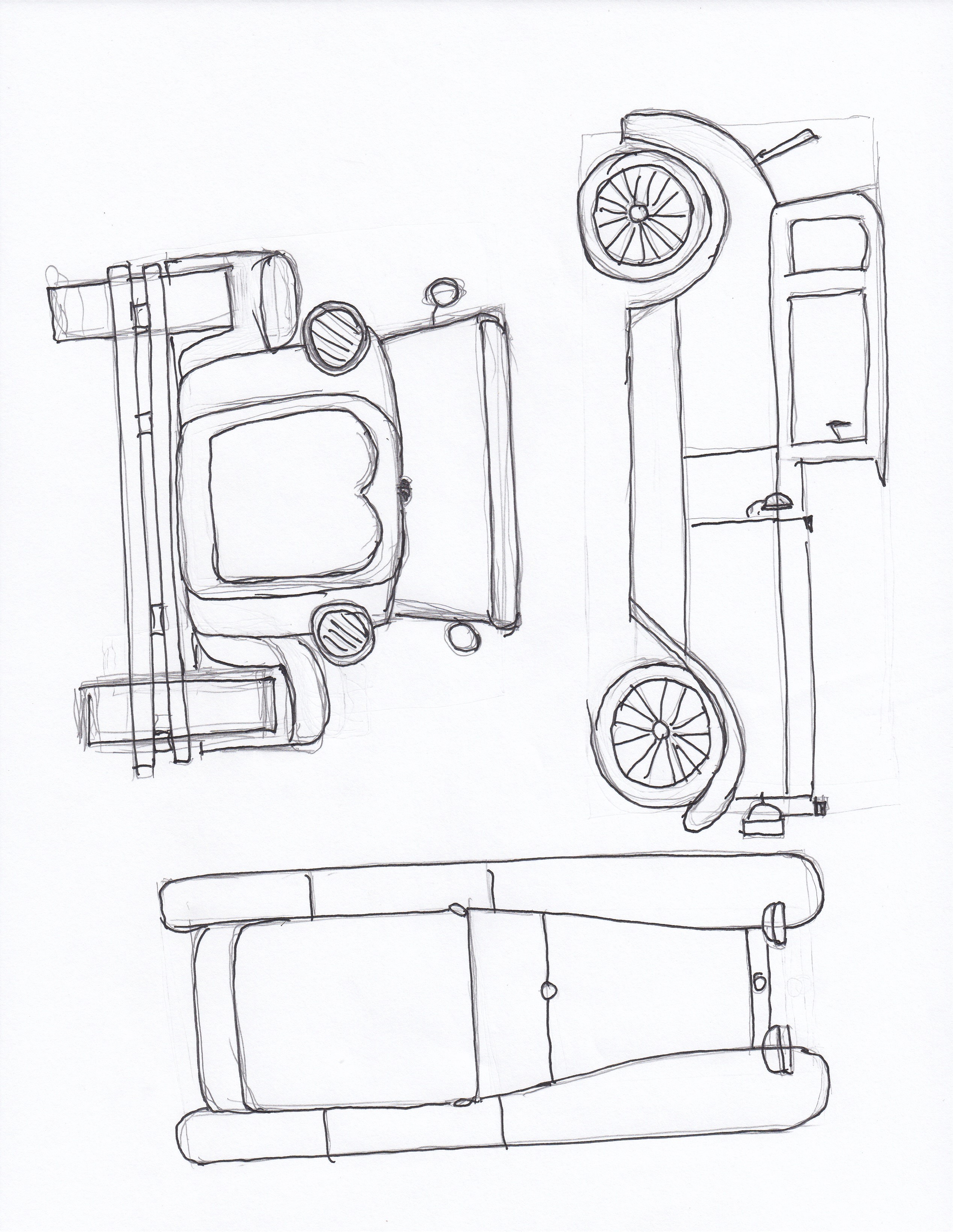 Pour la voiture tu as juste eu un petit souci pour la vue de profil où tu as fait le nez de la voiture un peu trop long!