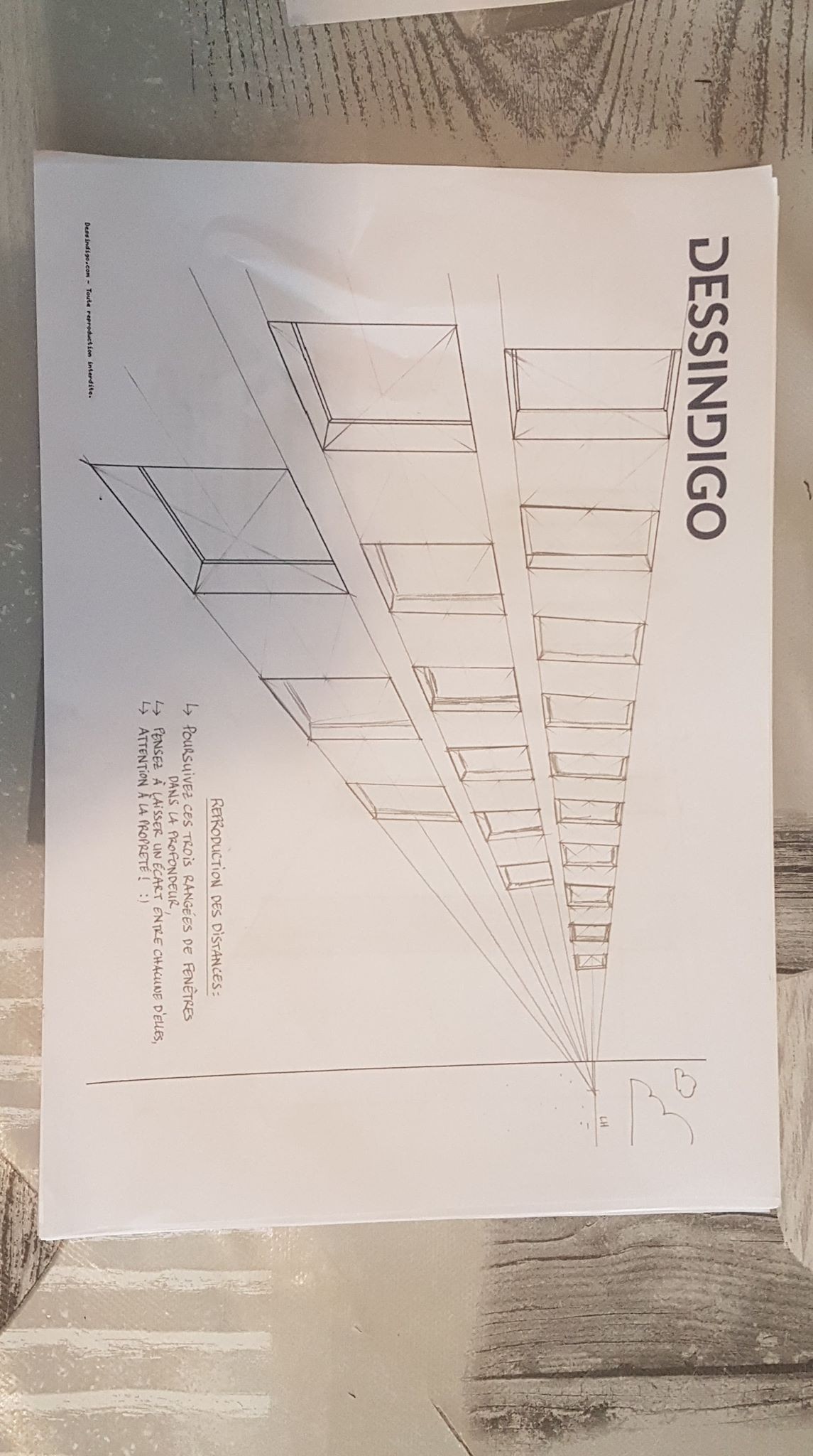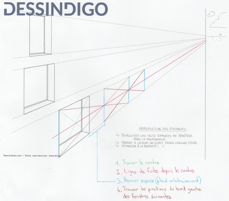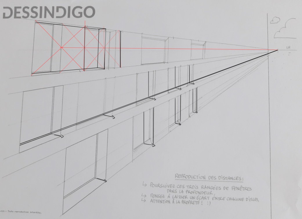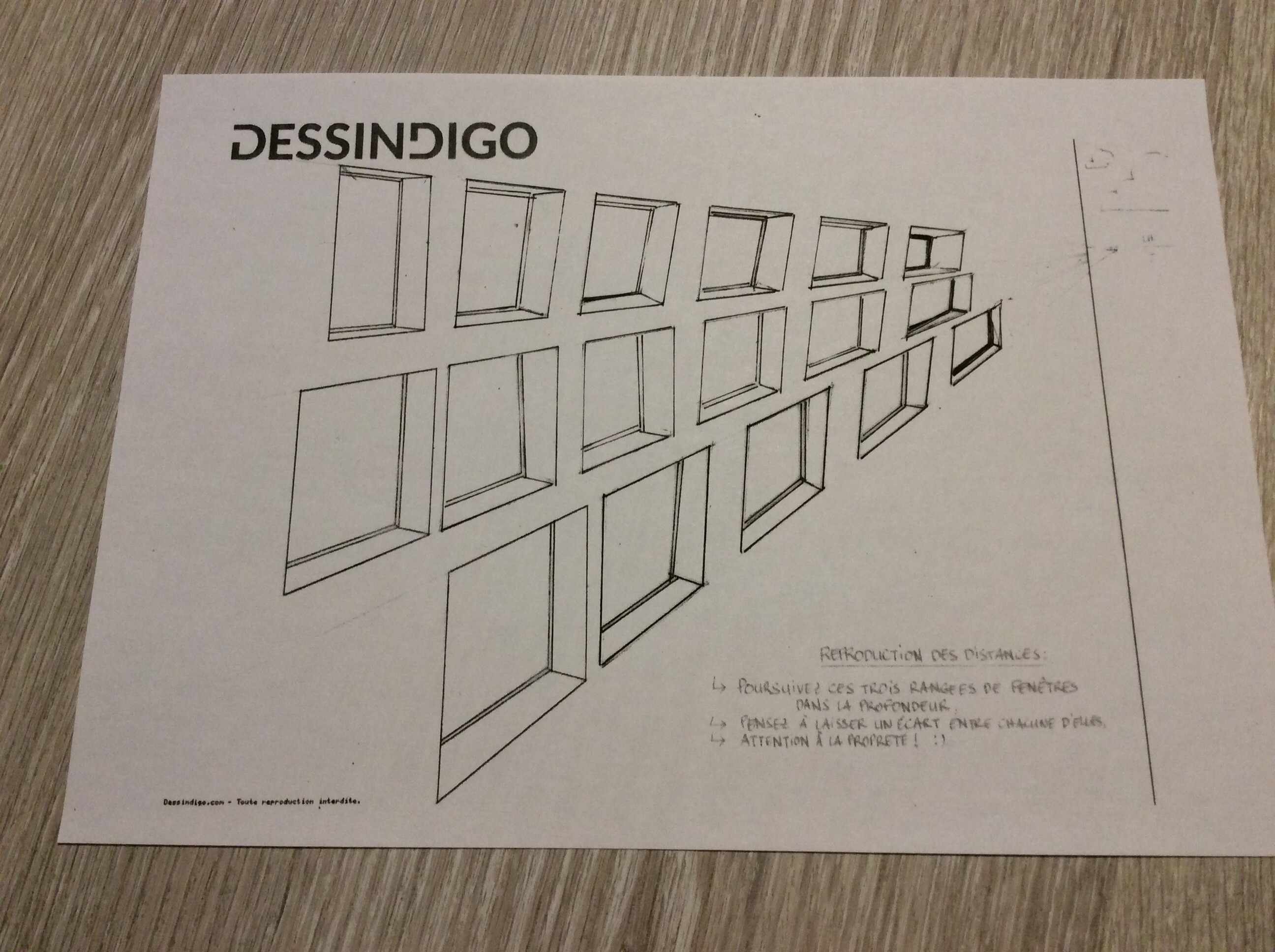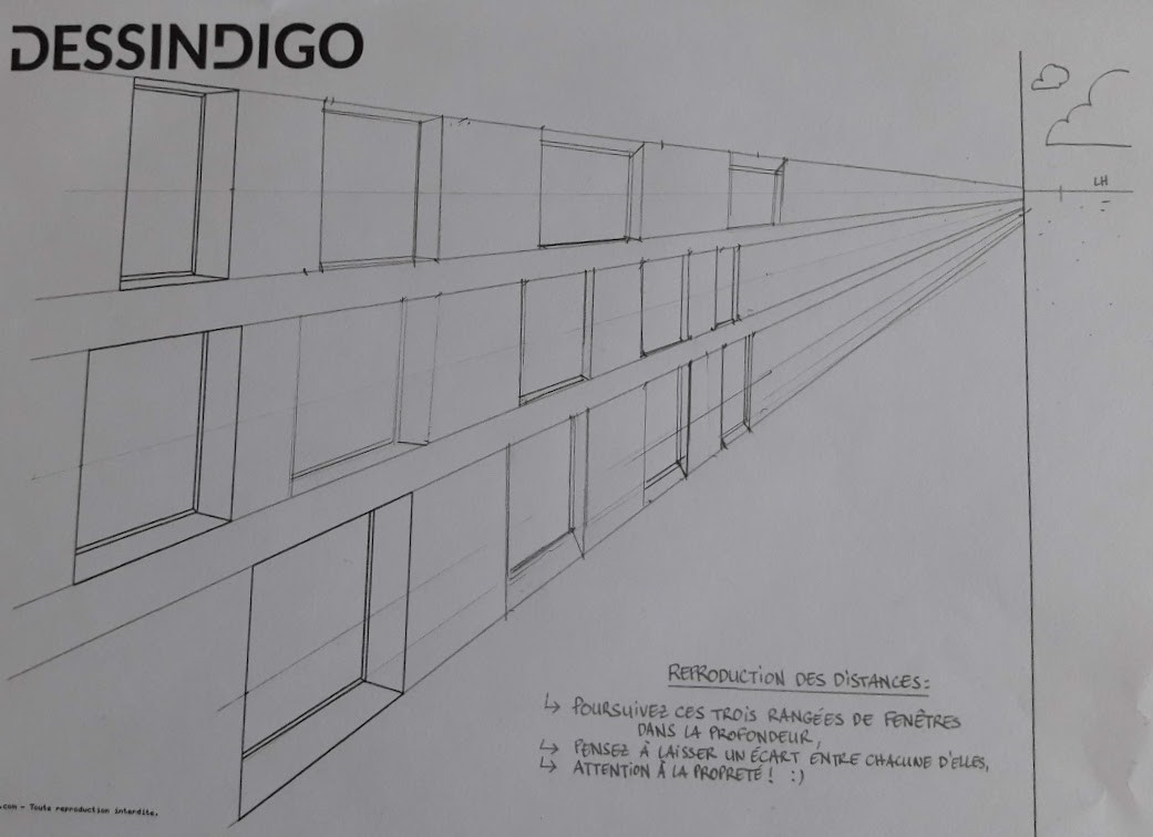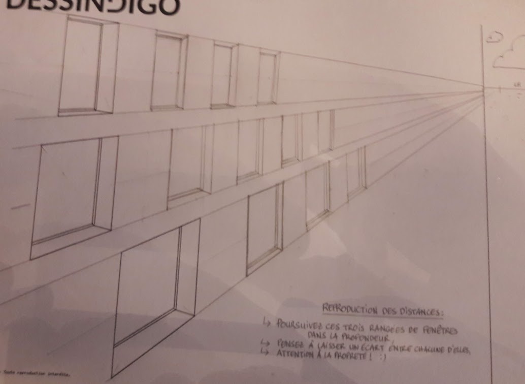 Je galère un peu pour l'exercice où il faut construire les fenêtres dans la perspective... Peut-être que quelqu'un pourra m'aiguiller. Le début est pas trop difficile et je pense que je m'en suis pas trop mal tiré. Sur l'image vous pouvez voir où j'en suis...