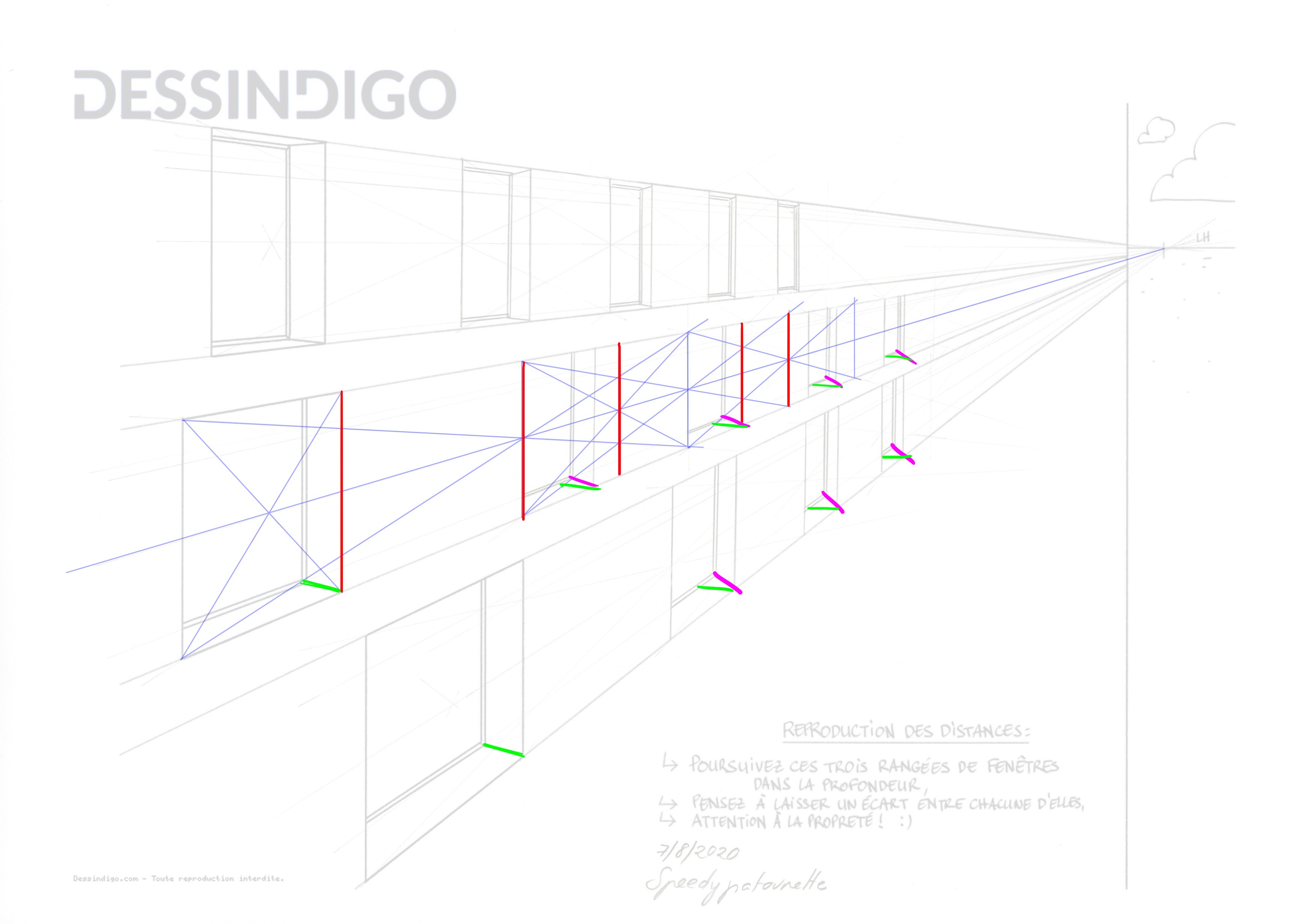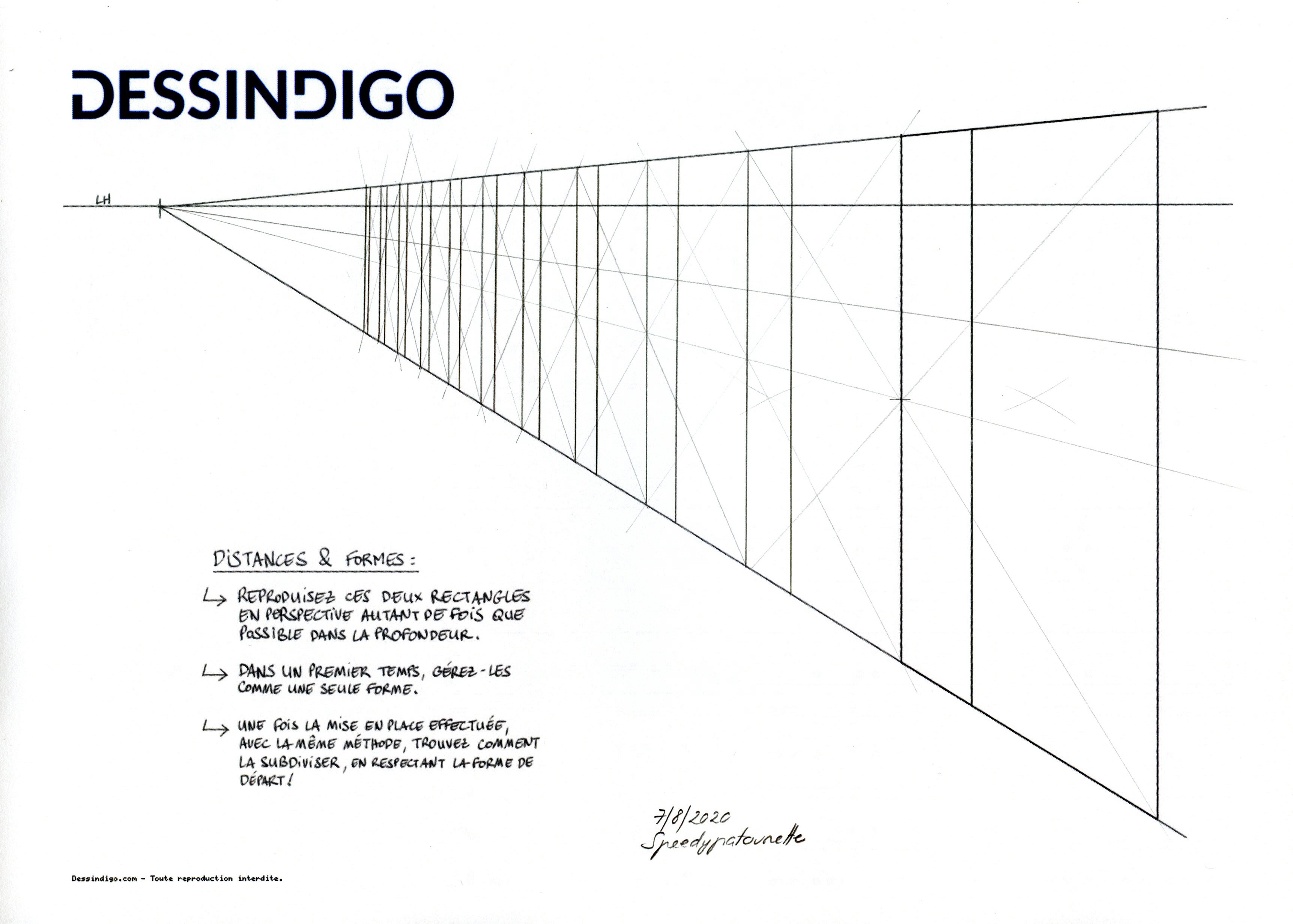 Bonjour, J'ai bien compris comment reproduire les distances et trouver le centre d'un carré en perspective, donc diviser en 2 parties égales un carré ou rectangle en perspective. C'est bien pratique pour dessiner des carreaux de céramique de même dimensions! Avez-vous un truc pour diviser le carré ou le rectangle en 3 parties égales?