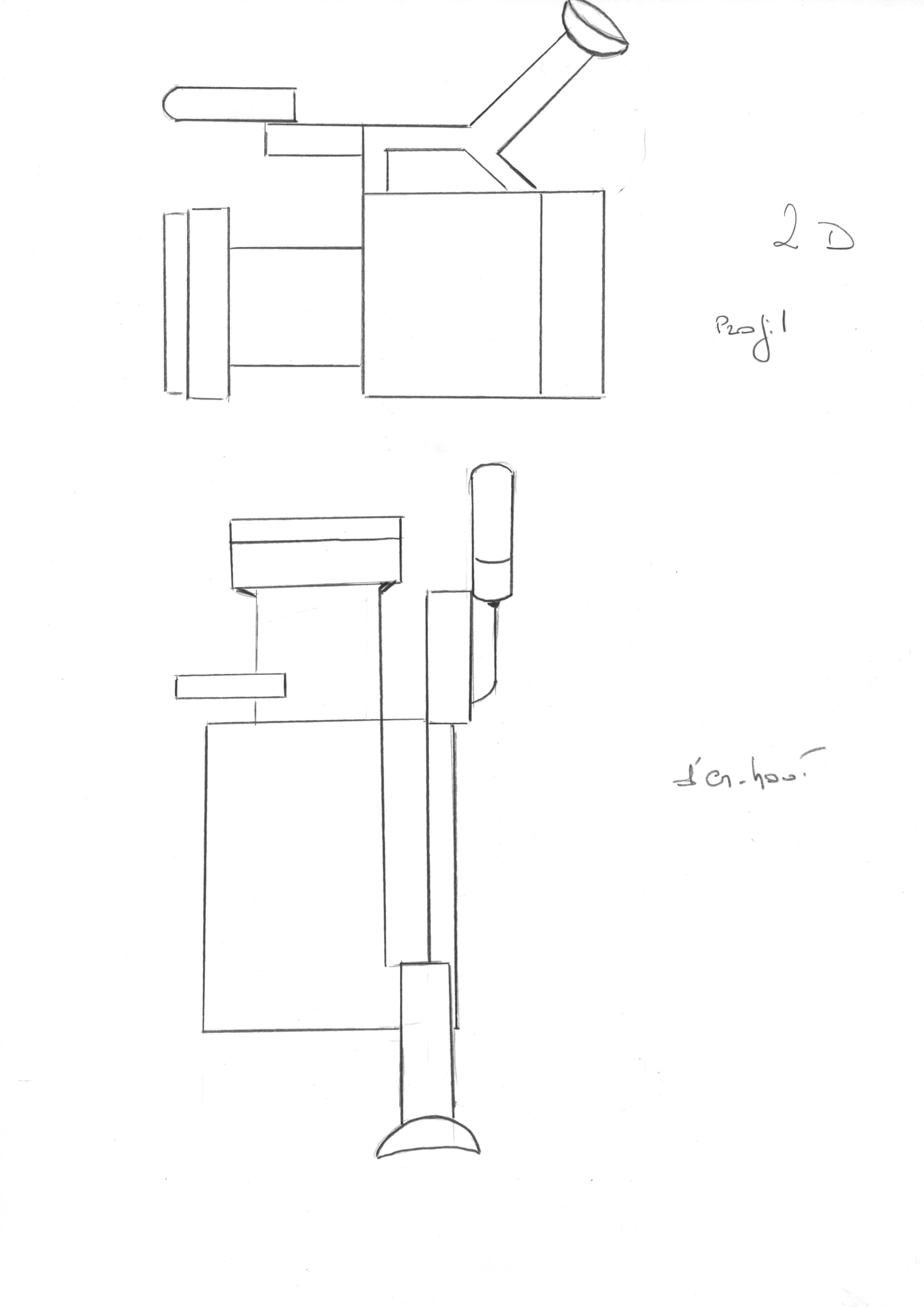 Et voici, je vous envois les croquis en 2D et 3D de la caméra... Je commence à prendre conscience tout doucement de ce que représente la perspective...