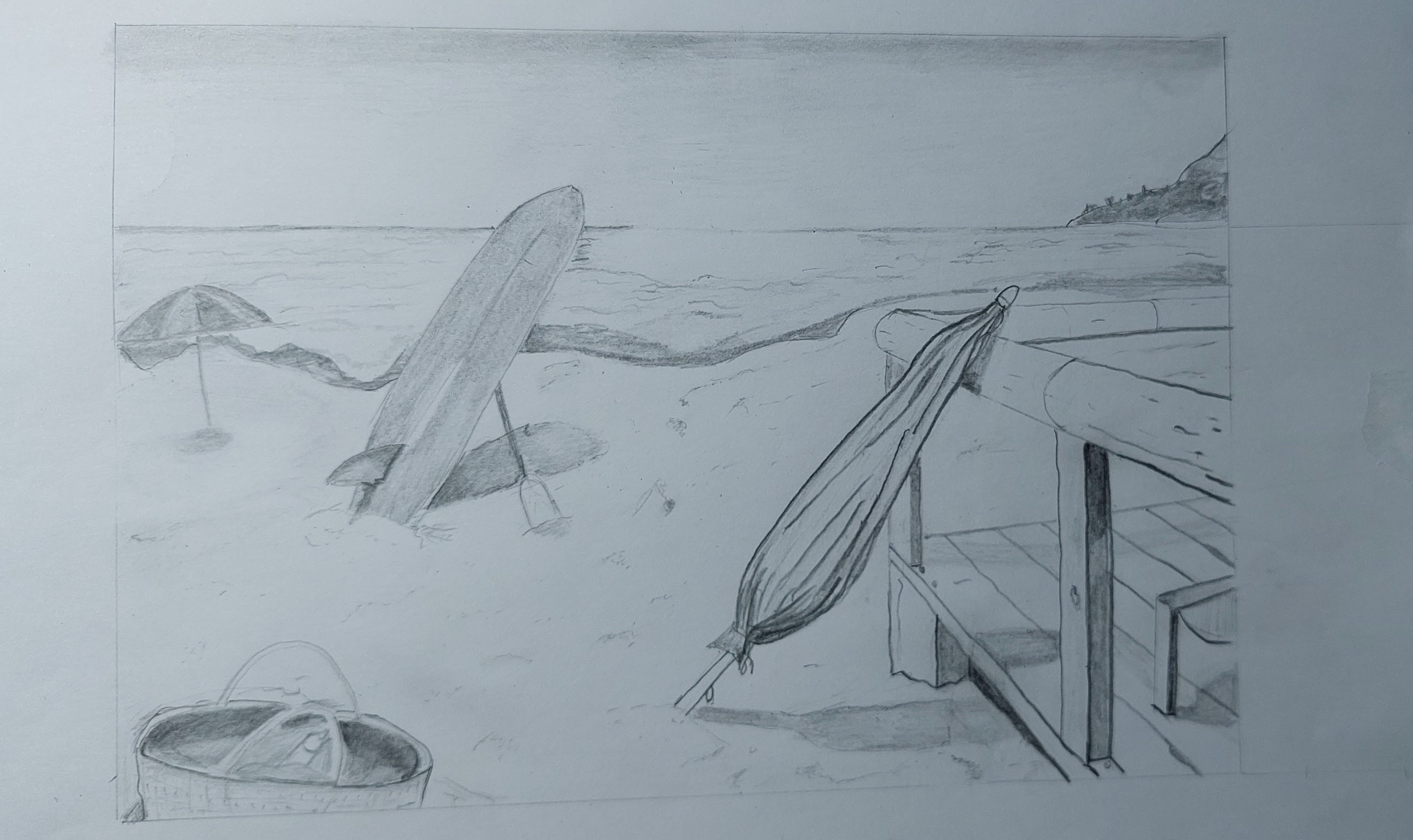 Not easy to draw the beach and the sea ...!