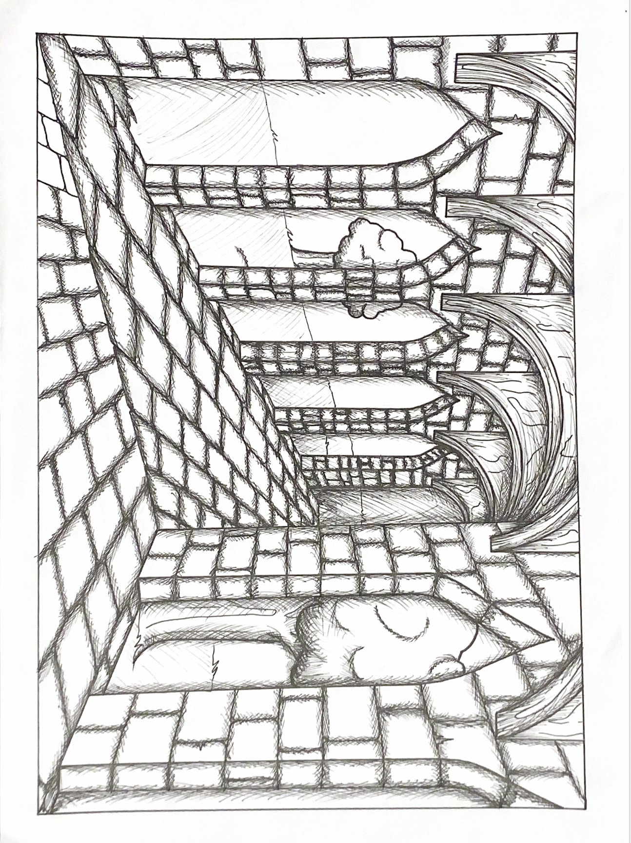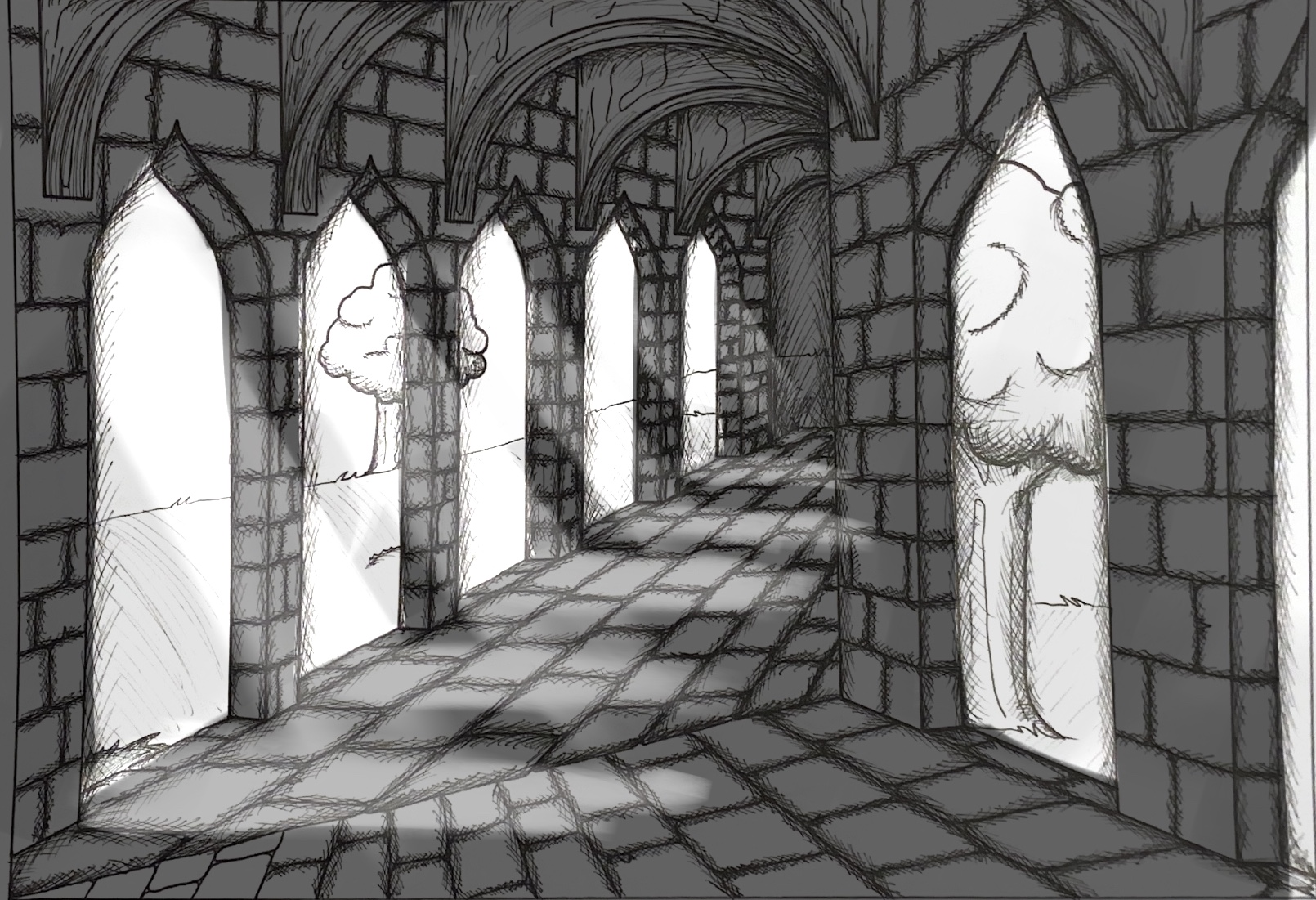 Very first test of a drawing from A to Z for me, paying attention to the values of lines and perpective