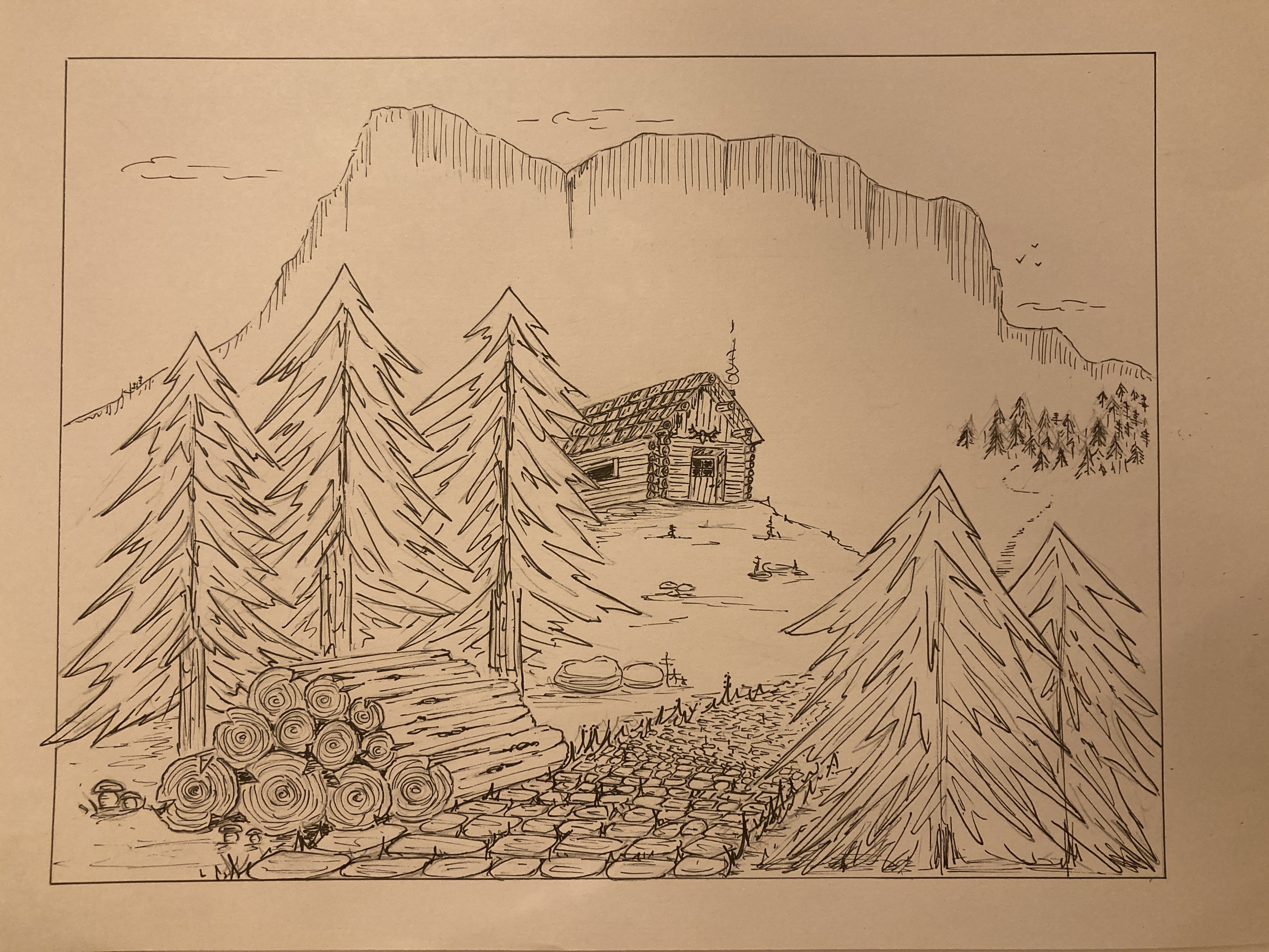 Bonjour, mon premier paysage, je suis super contente. J'ai eu un peu de mal avec les valeurs de traits parce que j'ai repassé au stylo... En tous cas j'adore vos cours, j'apprends beaucoup et j'ai l'impression d'avoir deja bien progressé 😃