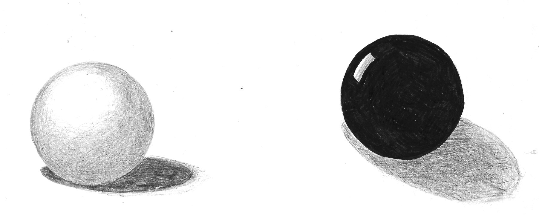 La première sphère est bien réussie :) Elle peut peut-être aller juste vers de l'un peu plus foncé au bout du dégradé. Pour la deuxième le feutre noir n'était peut être pas judicieux car il ne permet pas de faire des valeurs différentes. Un objet noir reste à la lumière et en renvoie toujours un peu, il ne peut donc pas être totalement noir partout (du moins si on veut quelque chose de réaliste). Pour l'ombre au sol ce n'est pas spécialement dérangeant, ça indiquerait juste un point de vue plus de dessus et une lumière venant de l'arrière de la sphère à gauche. C'est du beau travail sinon :)