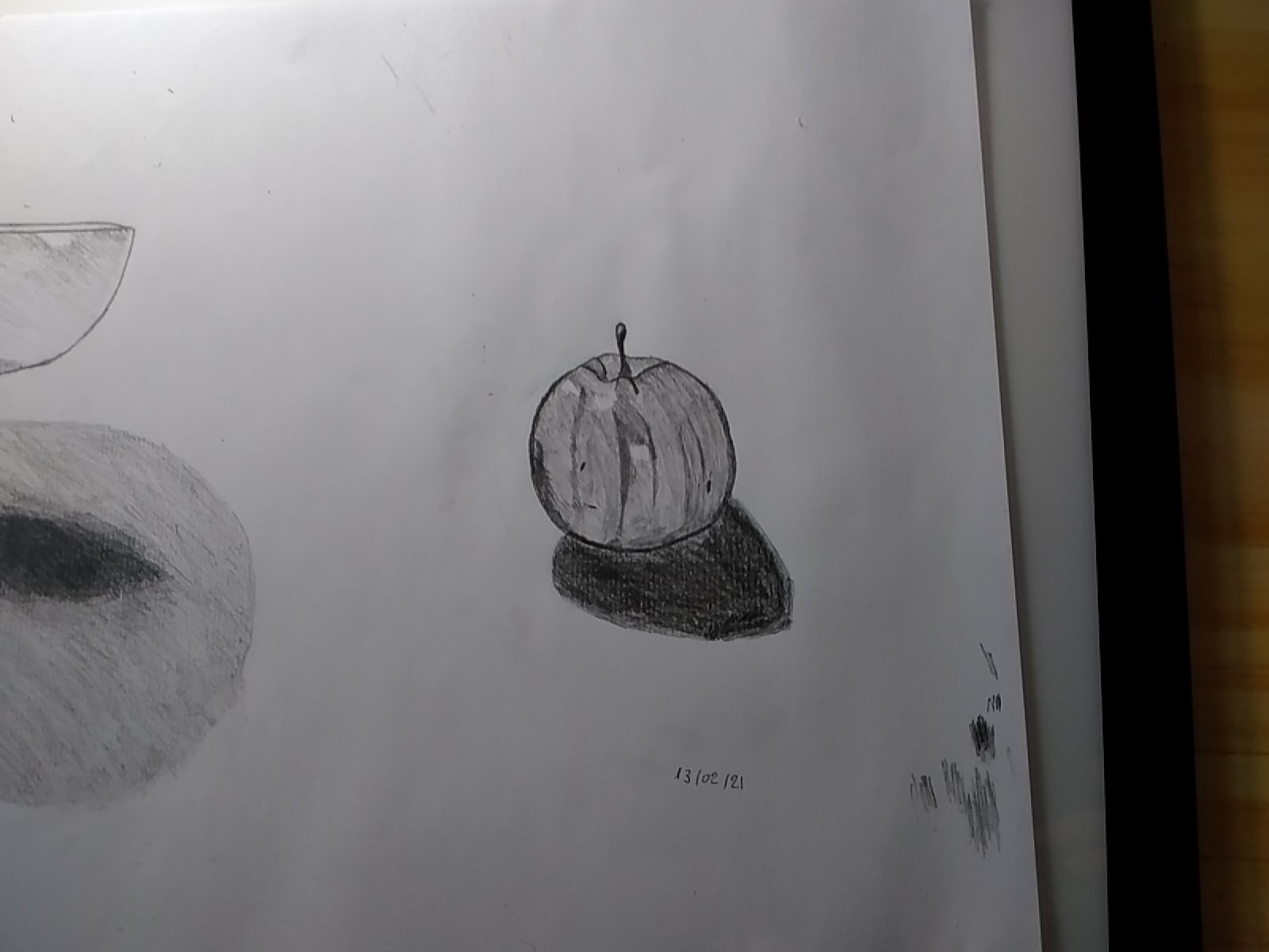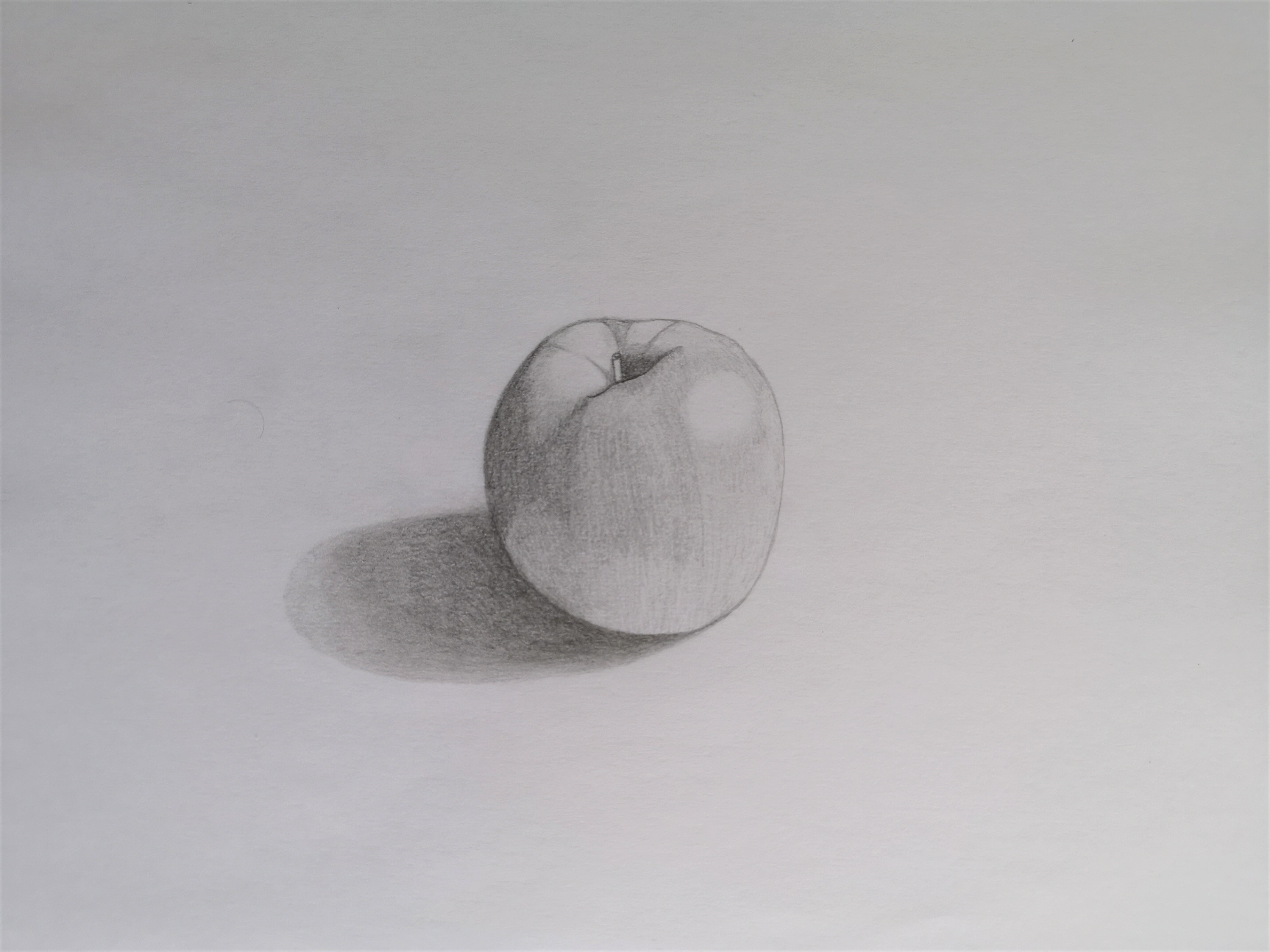 It's pretty good, but we're confusing the color changes and the shadow values, you made the red part of the apple in the middle as dark as the shadow area on the left, while it's definitely the shadow area that should be the darkest. Also, on the right side of the apple in the roundest area, it's a bit lighter thanks to the light. To avoid getting mixed up between colors and shadows, we can first practice on black and white or solid color photos ^^ It's well contrasted anyway :)