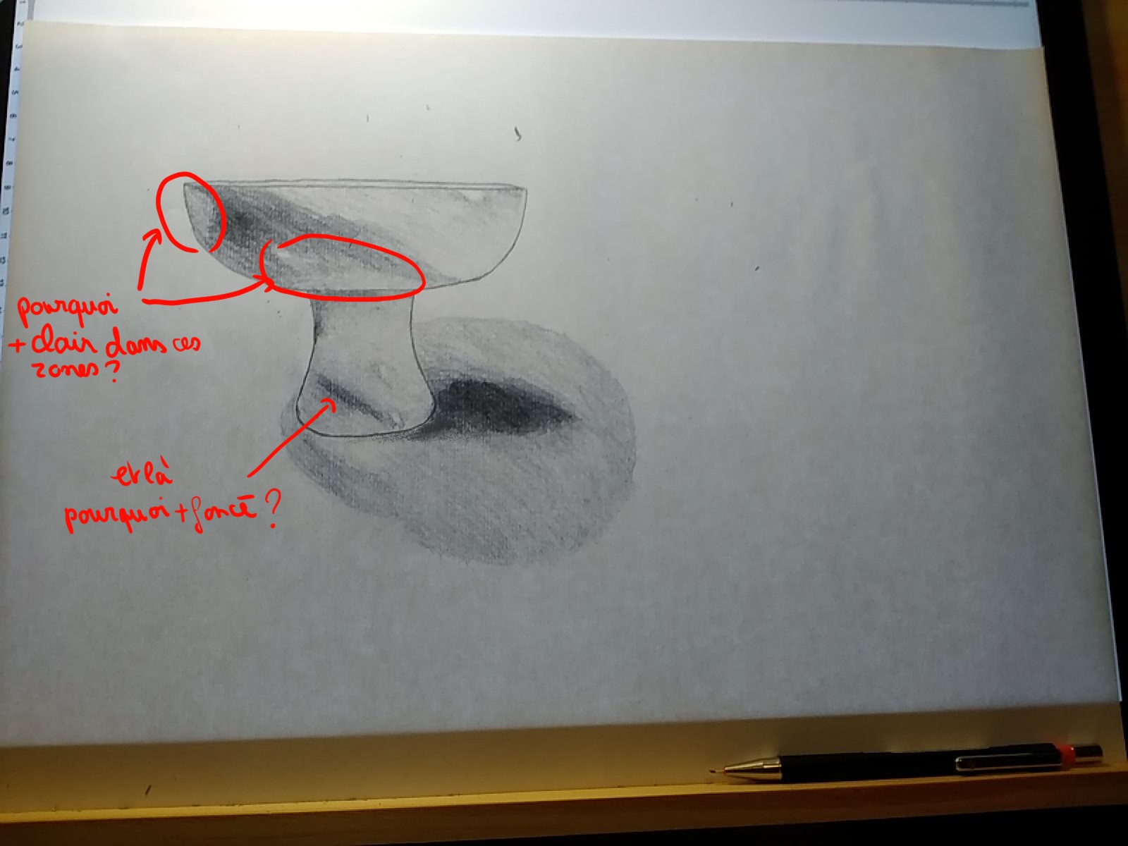 Du coup je peux constater qu'il manque une ombre sur la gauche du pied de la coupelle, et que certaines valeurs ne sont pas assez marquées alors qu'elles ont des délimitations très nettes sur le modèle. J'ai un peu modifié ça sur le dessin. En tous cas c'est plutôt bien !