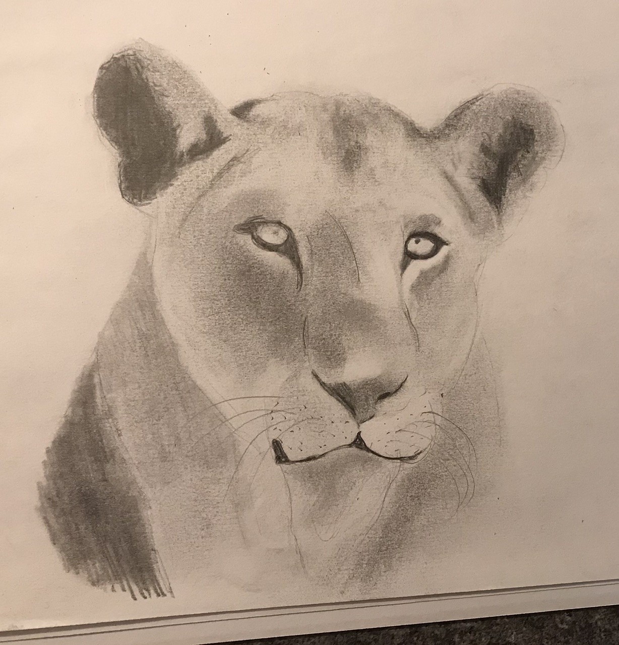 Joli travail ! ça manque tout de même un peu de contraste et de définition des contours. Attention avec l'estompage, en faire trop peut amener un effet sali et flou. Par exemple la partie sous le cou à gauche devrait être plus foncée, la partie gauche du visage aussi tandis que le côté à droite devrait être plus clair. Avec quelques ajustements de valeurs et redéfinission des contours en coloriant bien sur les bords ça sevrait être encore mieux :)
