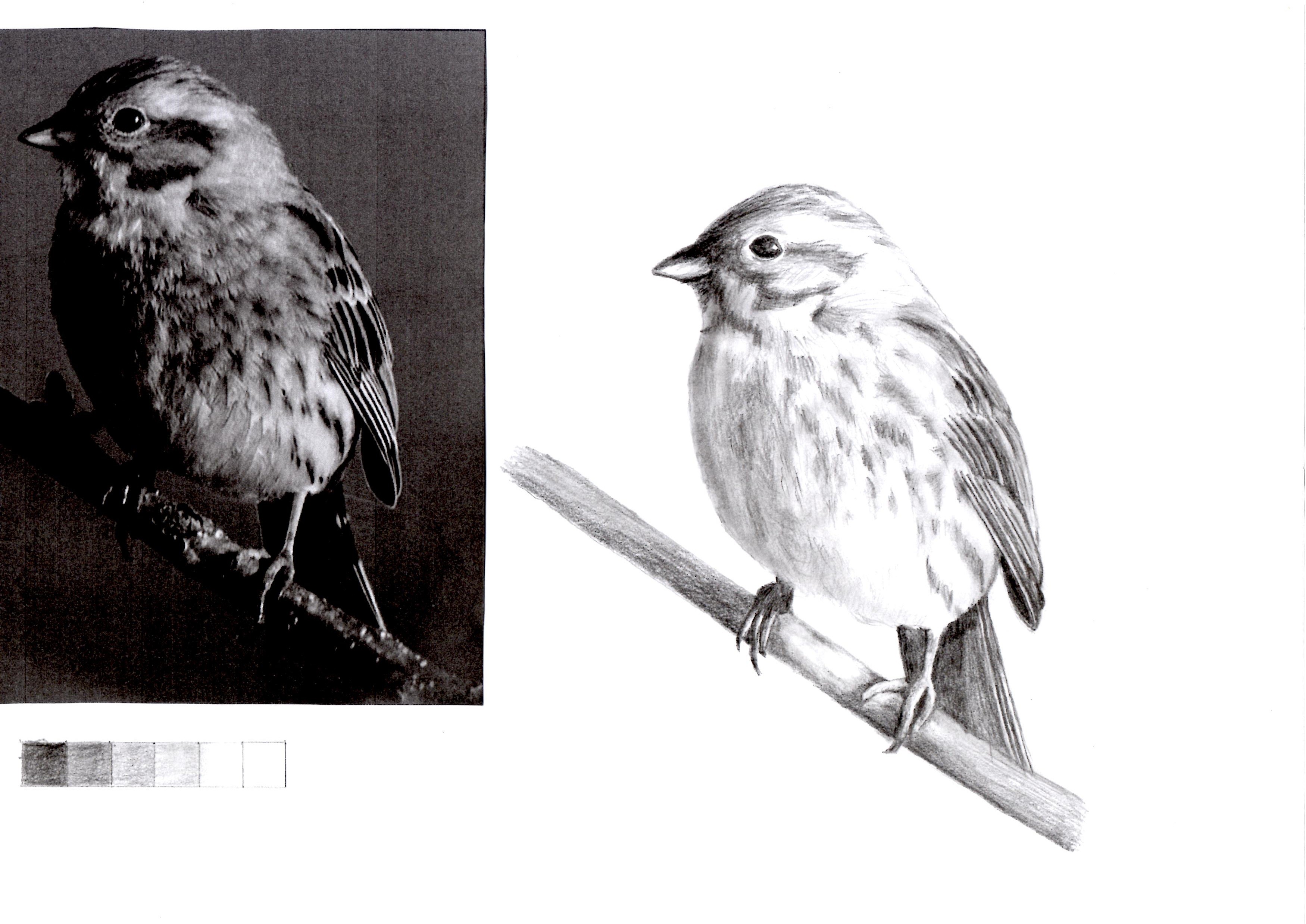 J'ai fait cet exercice à partir d'une photo éditée en N&B avec un criterium mine HB 0,5 mm.