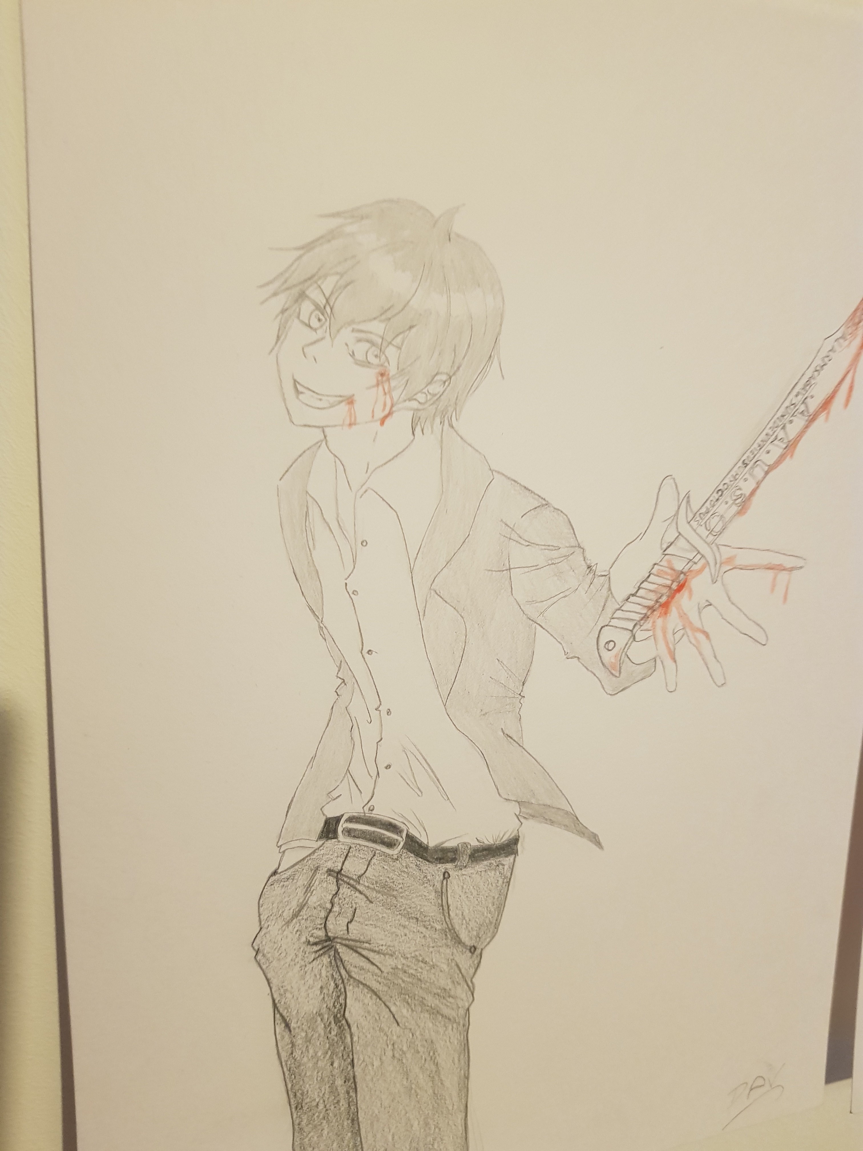C'est plutôt bien :) Attention, même si le pantalon est plus foncé il ressort trop par rapport au reste qui est un peu pâle. Même si tu ne fais pas vraiment d'ombres et lumières si tu fonçais plus les contours partout ce serait plus homogène.