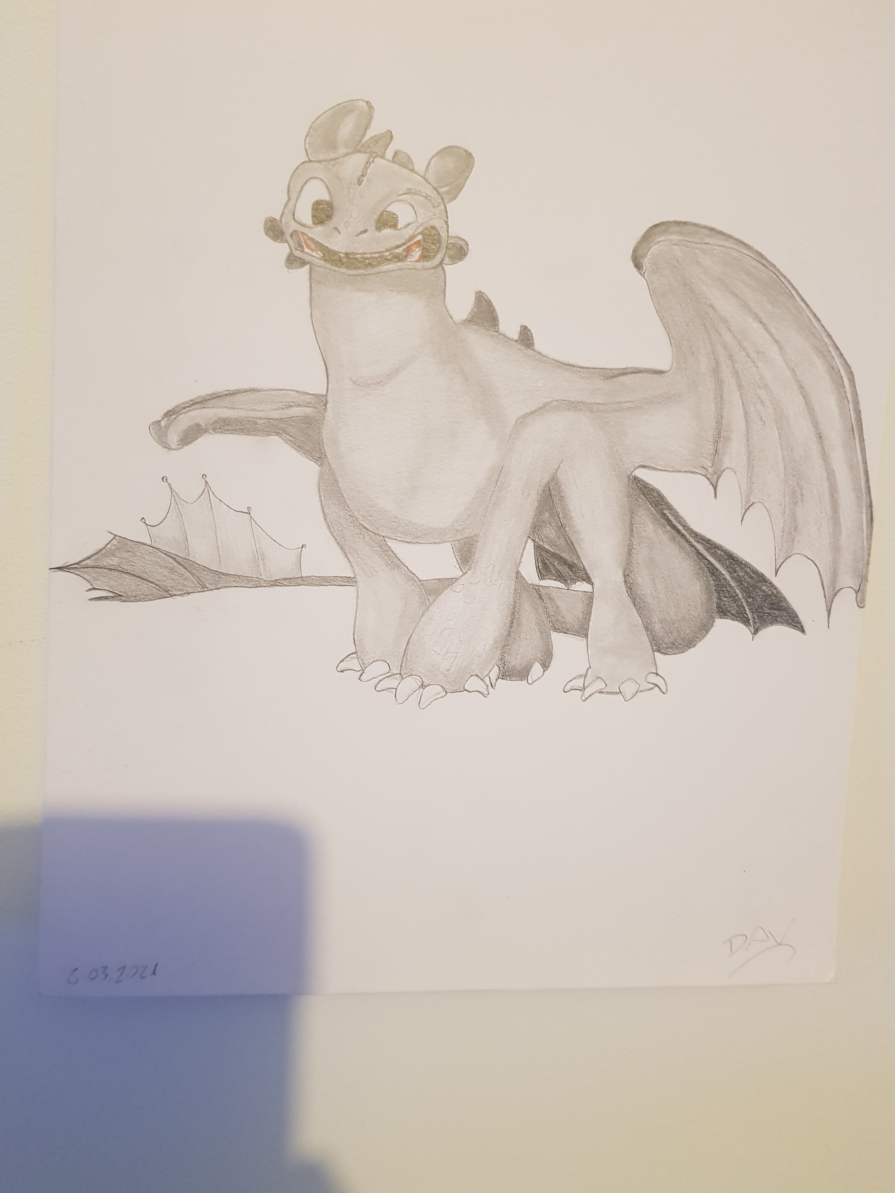 There are good foundations here :) What could be worked on is making the gradients more gradual to properly show the volumes. Also, I think you could have started with a darker base value and pressed harder for the small crevices. Toothless is black and it's not evident enough that he's dark. But otherwise, it's beautiful work :)