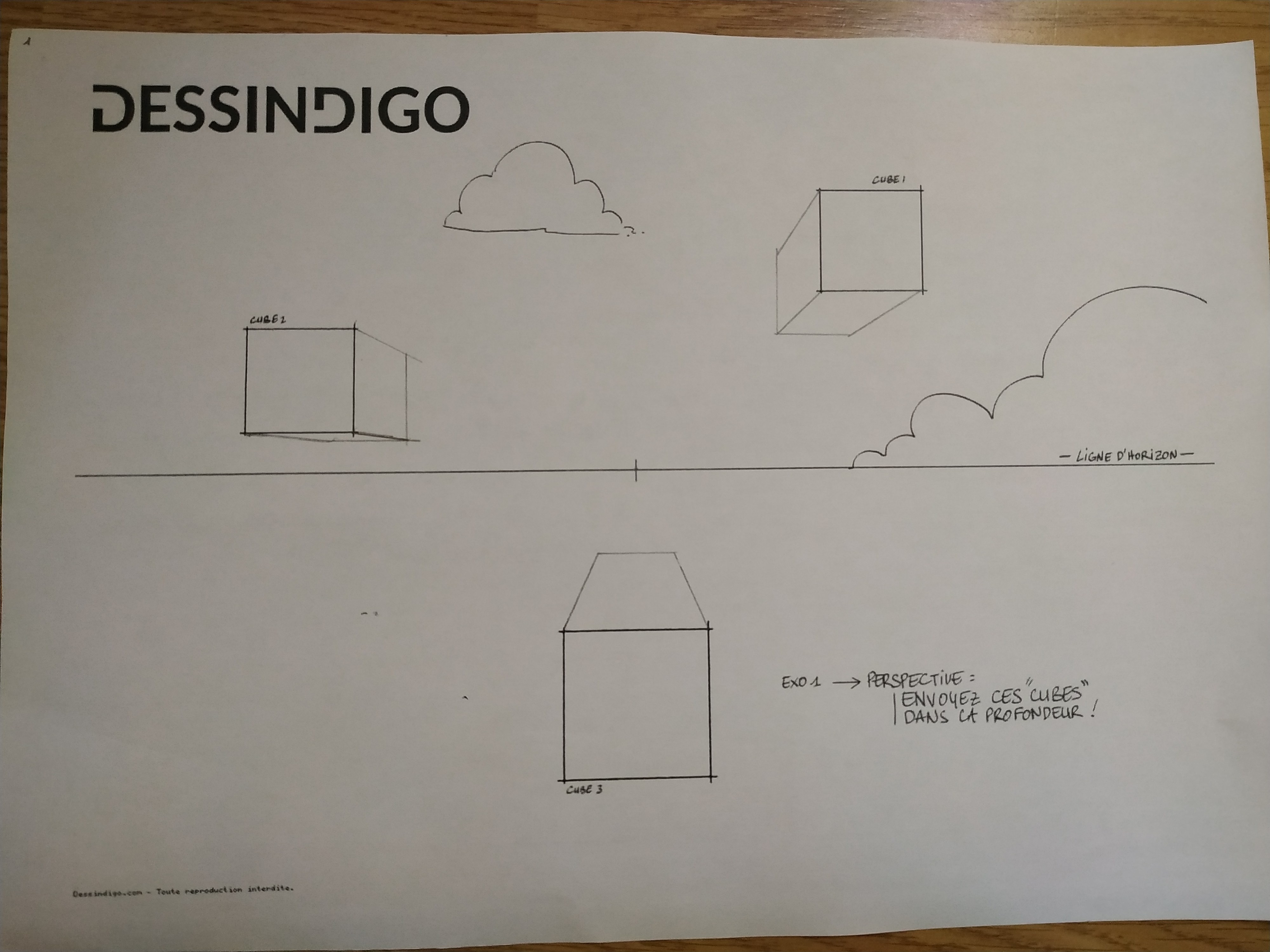 Beau travail pour ce premier exercice. Attention juste sur le cube de droite, la ligne de base inférieur au fond doit être parallèle à celle du premier plan