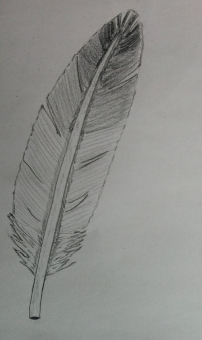 Pour la plume ça fonctionne aussi, les traits montrent bien les stries de la plume. Concernant la petite zone d'ombre foncée tout le long du centre de la plume, c'est peut-être un peu trop net. Dégradé un peu vers les côtés montrerait des volumes plus doux et progressifs. Très bon travail en tous cas :)