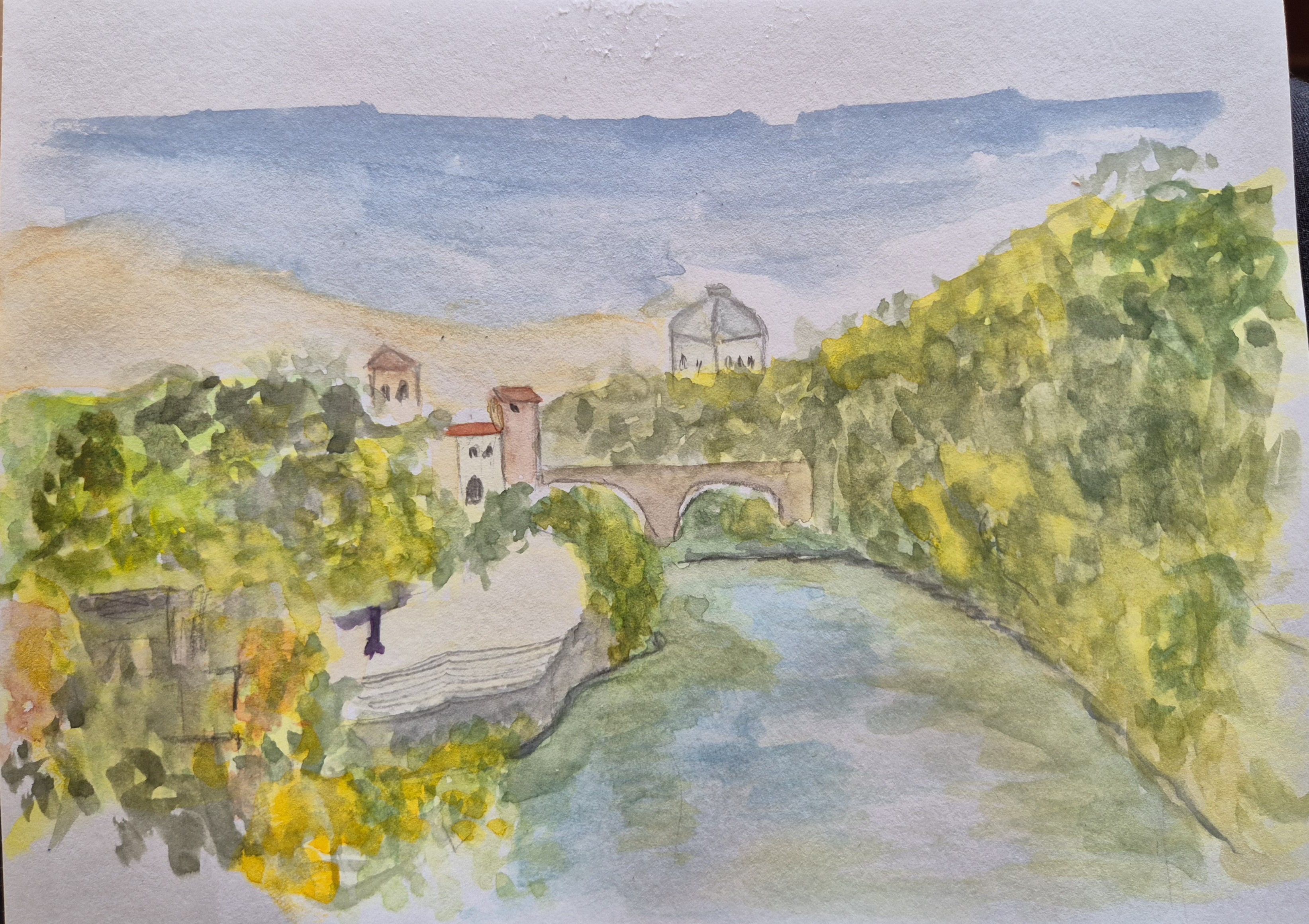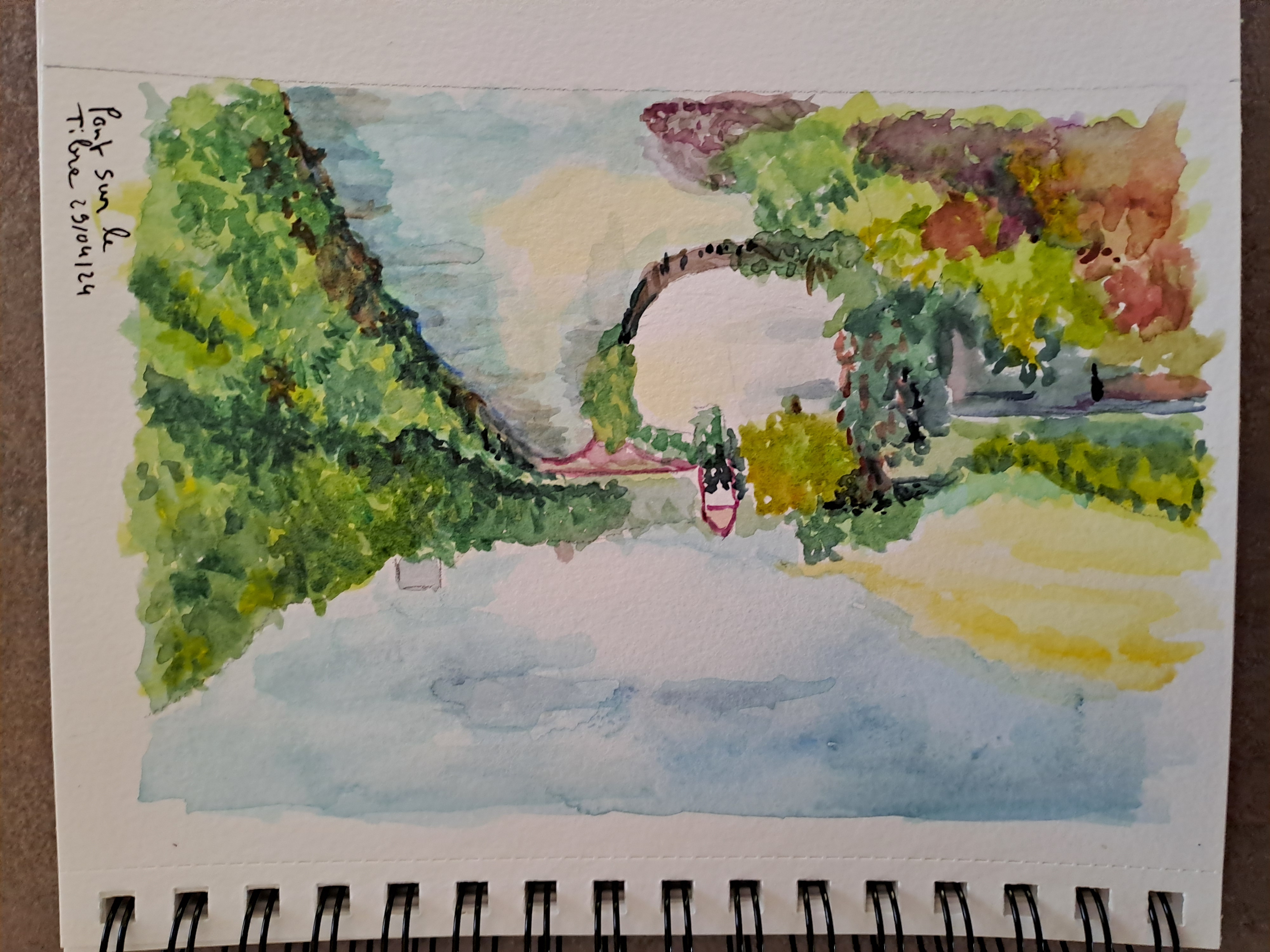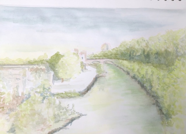 Cette aquarelle est divinement fraiche et légère ! il y a presque un côté Sempé. Tu as esquissé juste ce qu'il faut les ponts et l'architecture au dernier plan.