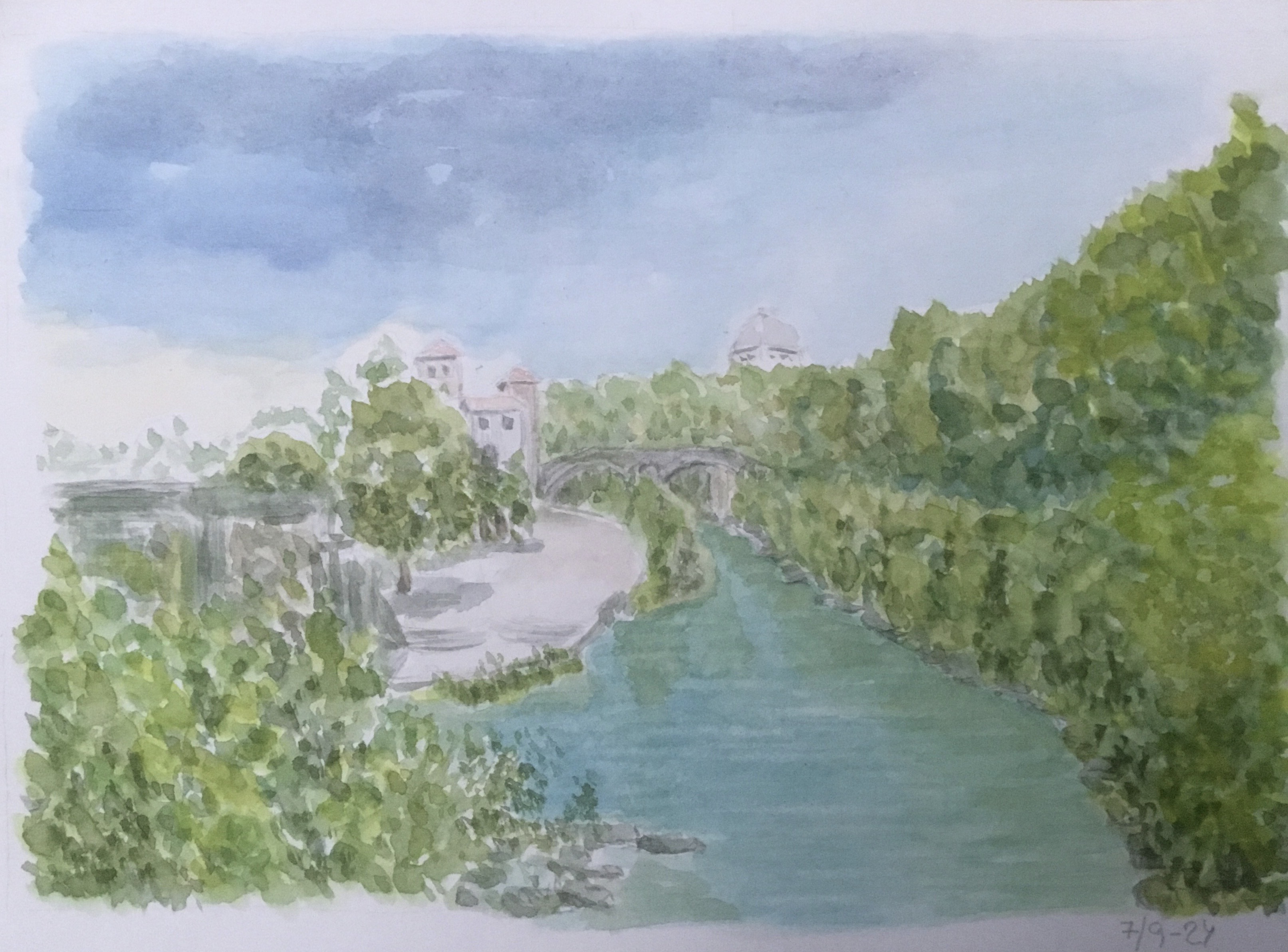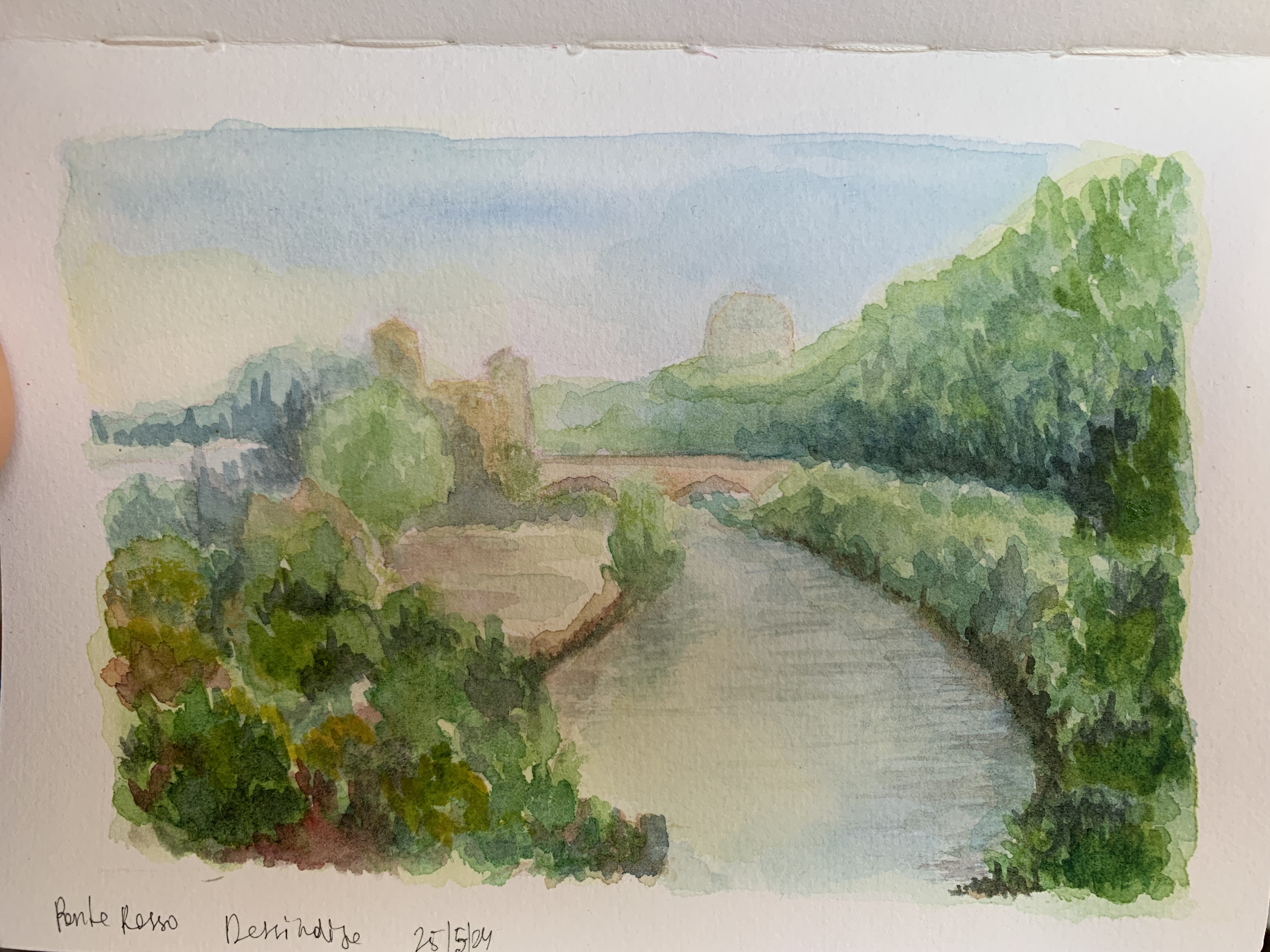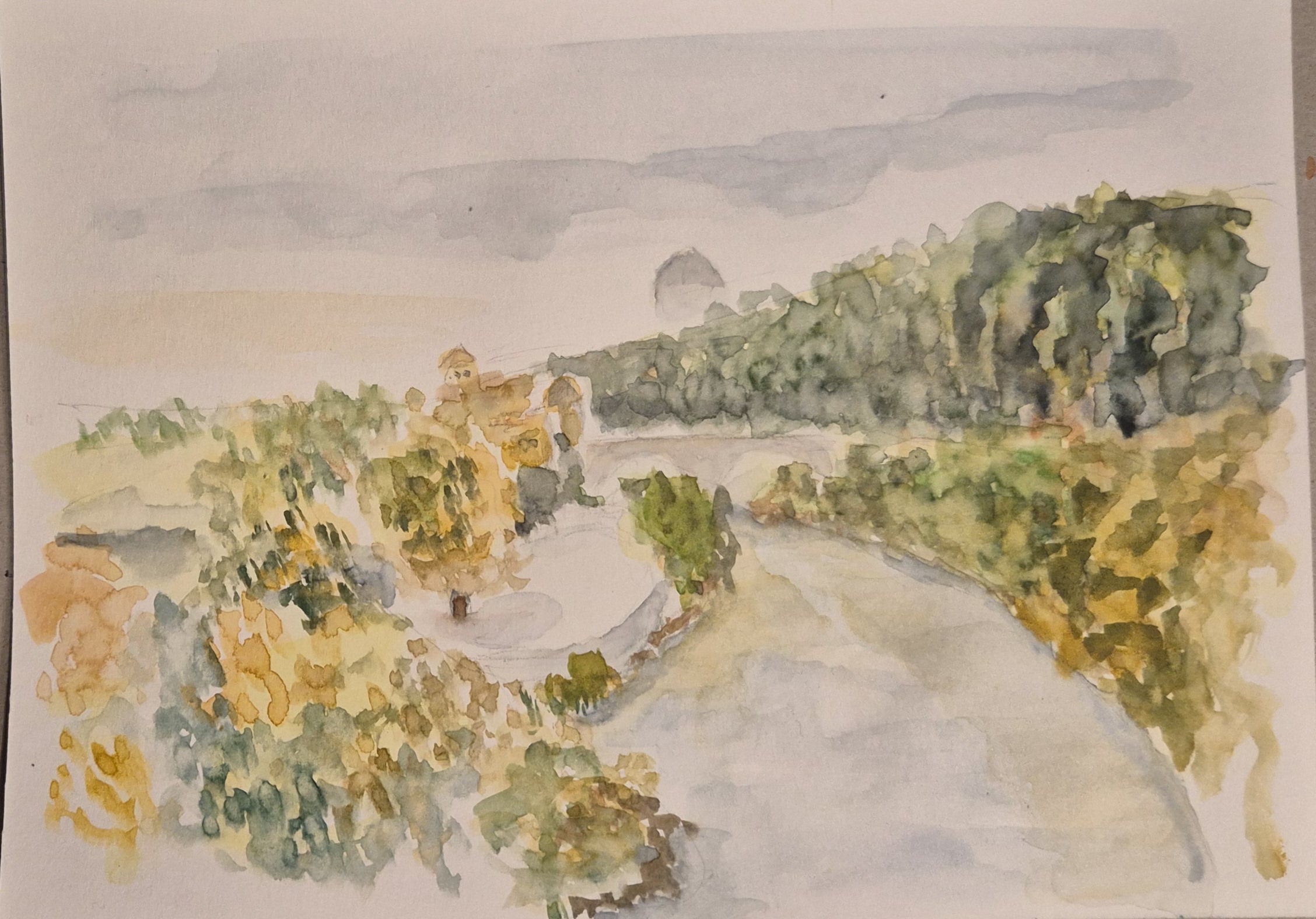 This watercolor is divinely fresh and light! there's almost a Sempé-like quality to it. You sketched just enough of the bridges and architecture in the background.