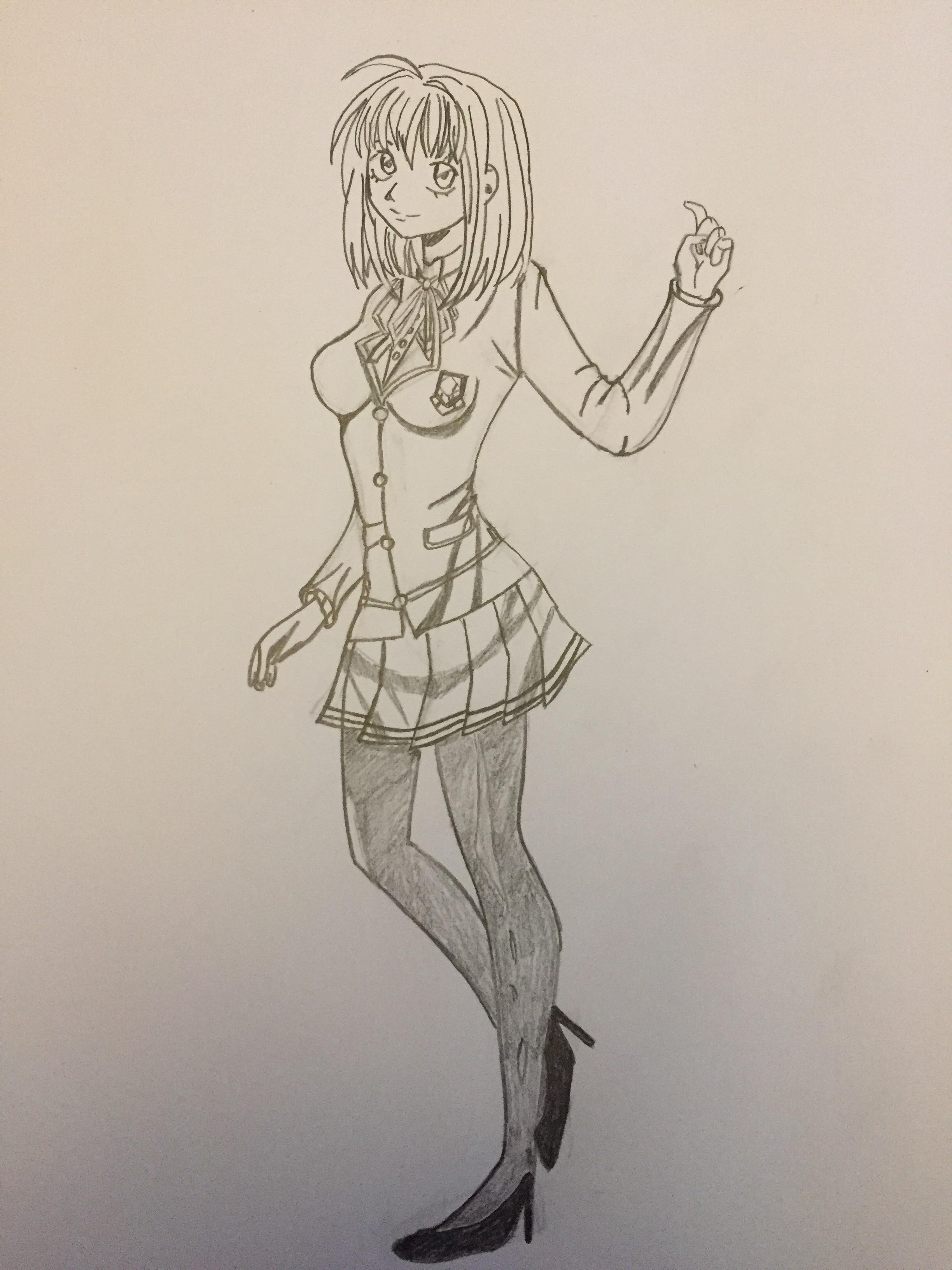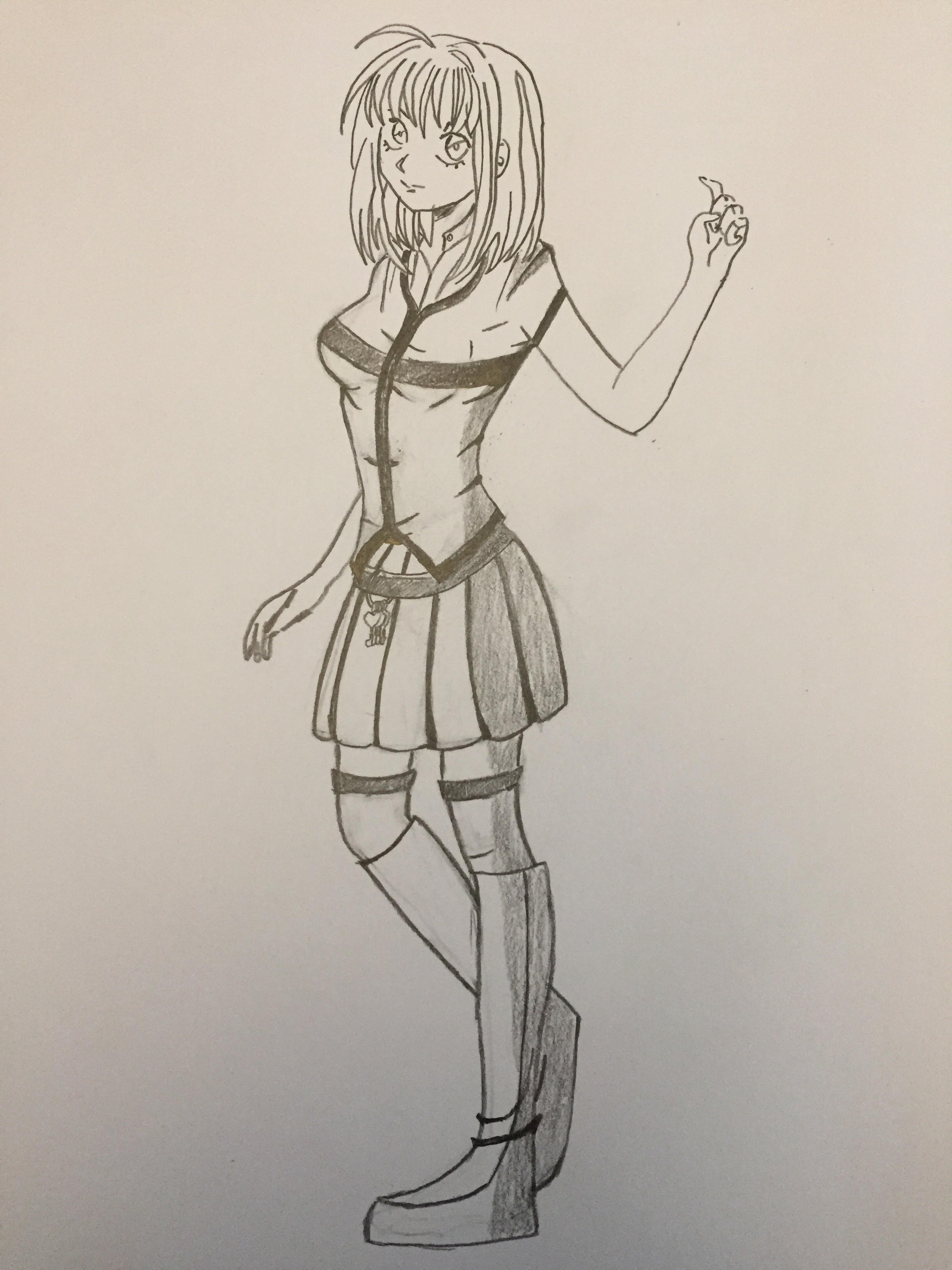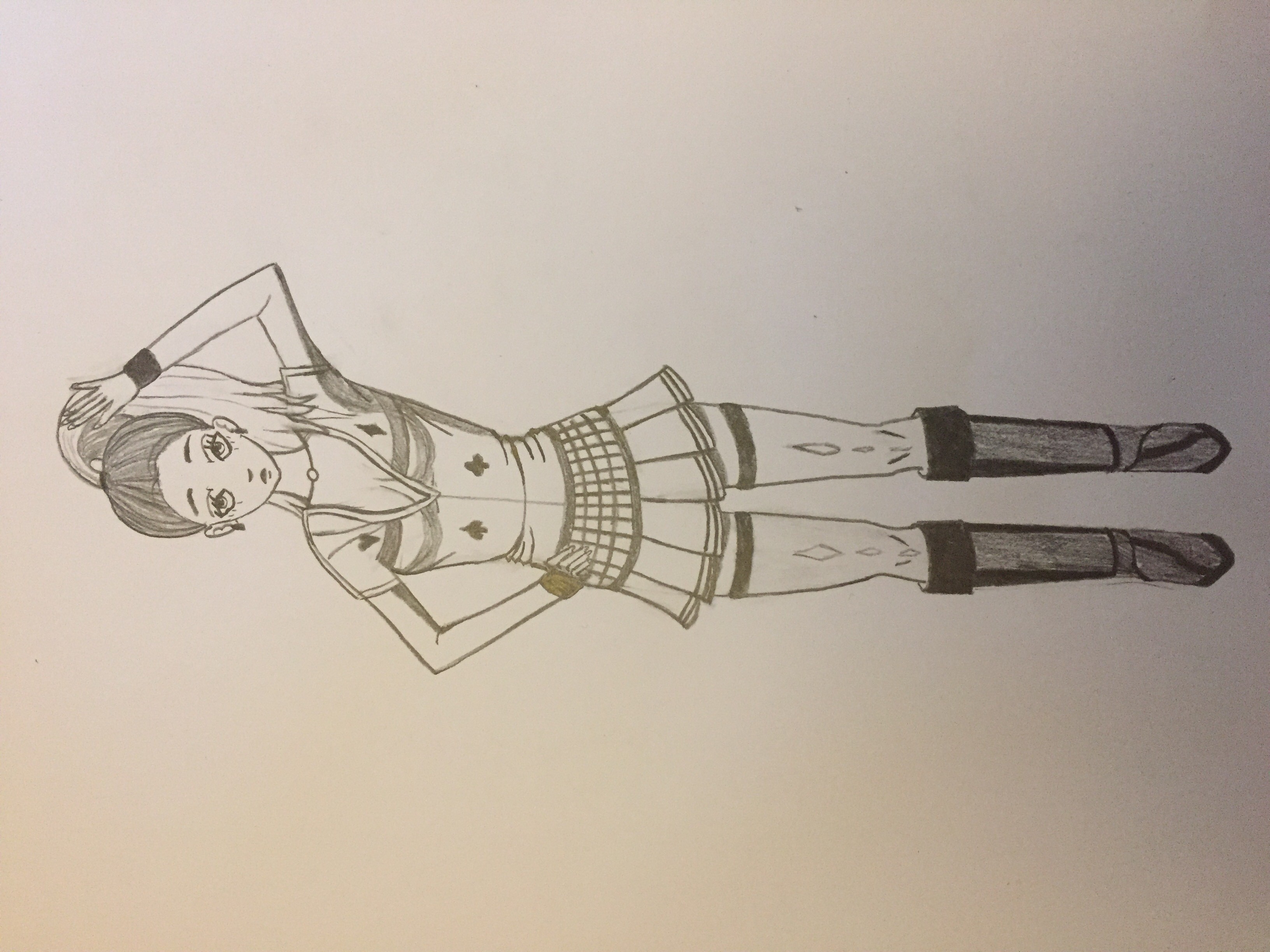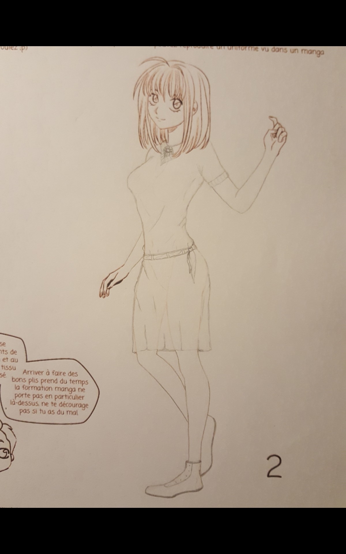 Autrement au niveau de la jupe on sent que tu savais pas forcément comment placer les plis et ils sont trop réguliers (espacés de la même manière, tous parallèles entre eux, etc.)
