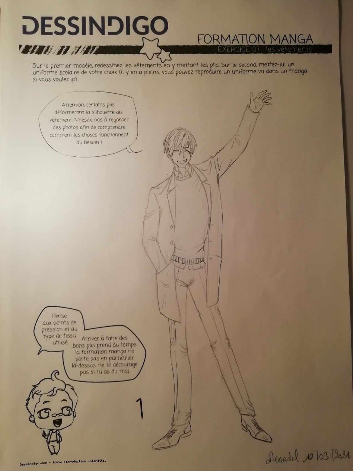 Attention aussi à son pull. Comme La partie basse n’est pas dans le pantalon, les plis ne sont pas si présents normalement voir pas du tout. Cela reste de la stylisation :)