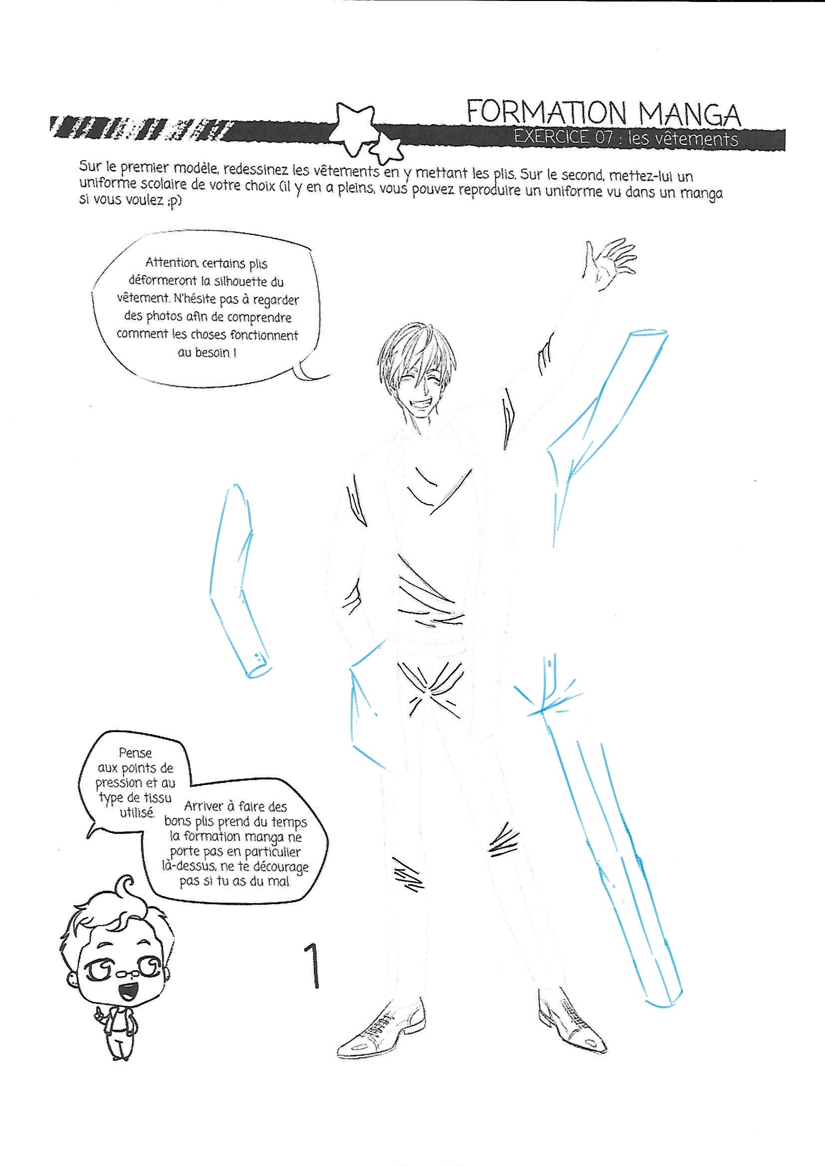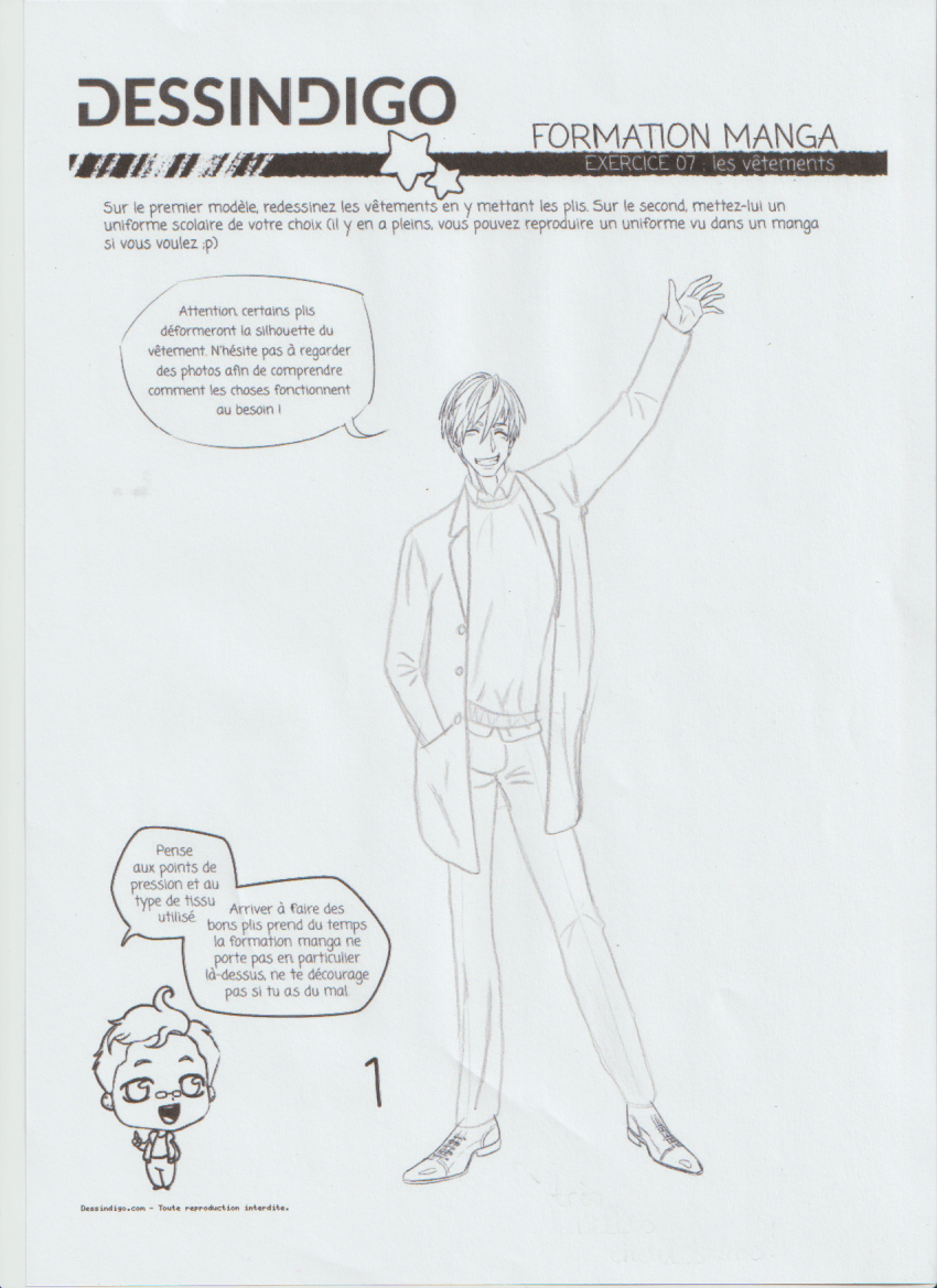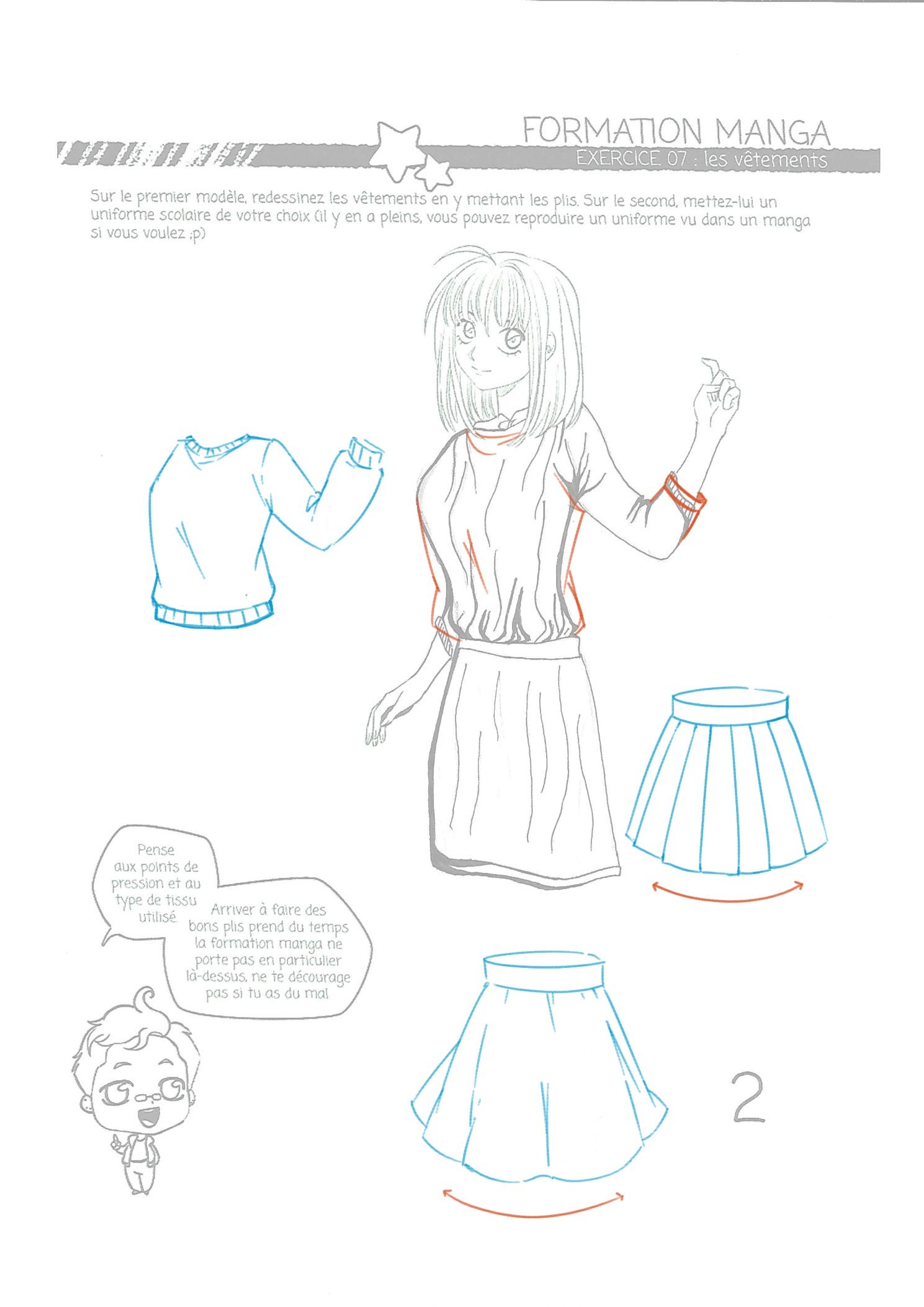 Le manga étant stylisé, mettre des plis “clé”, peu et bien placé, suffit :)
