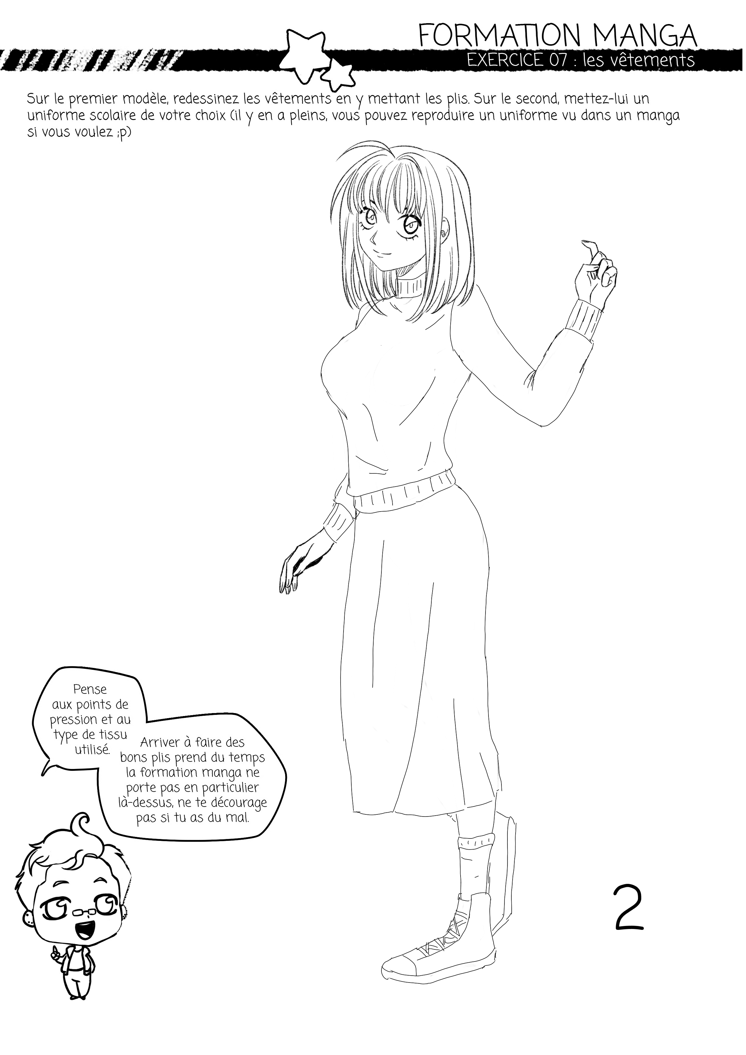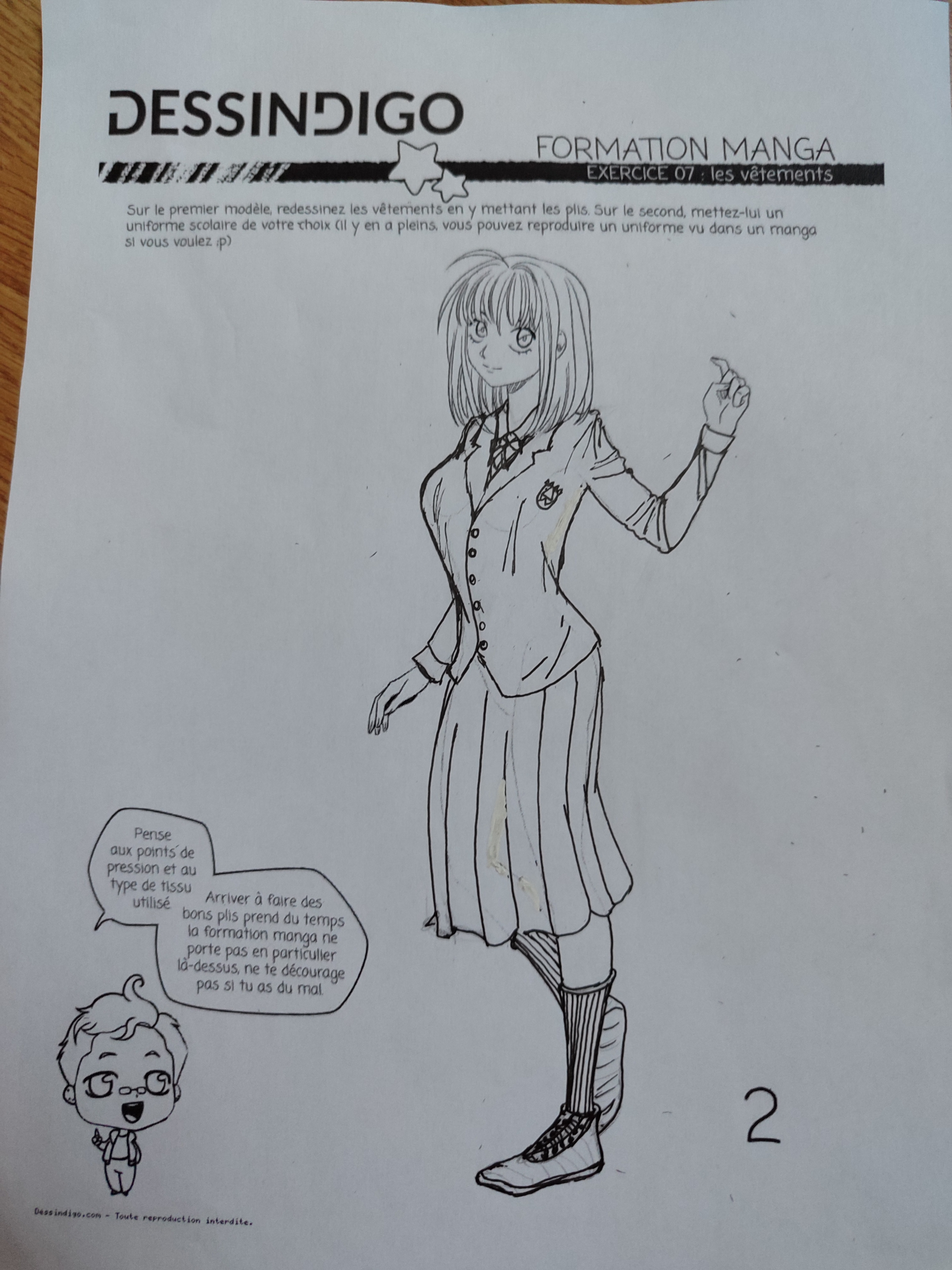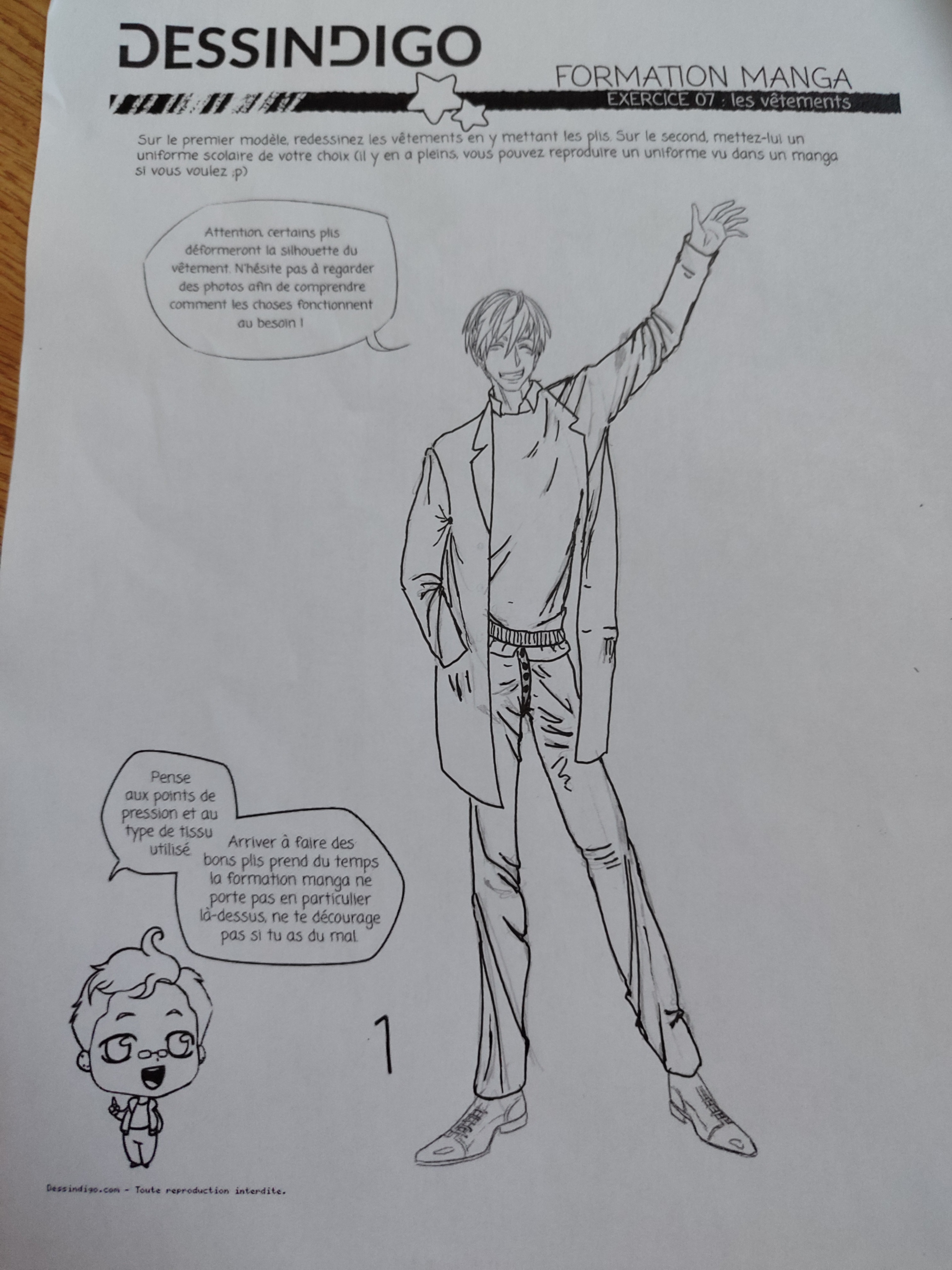 Salut Pieroyolo, super, beau travail! Pas grand chose à redire sur l'habillage et les plis, tu as bien géré. Rien à voir avec les vêtements, mais attention à ton encrage, essaie de faire des traits plus continus pour éviter tout un tas de coupures ou de raccord dans tes lignes... 🙂
