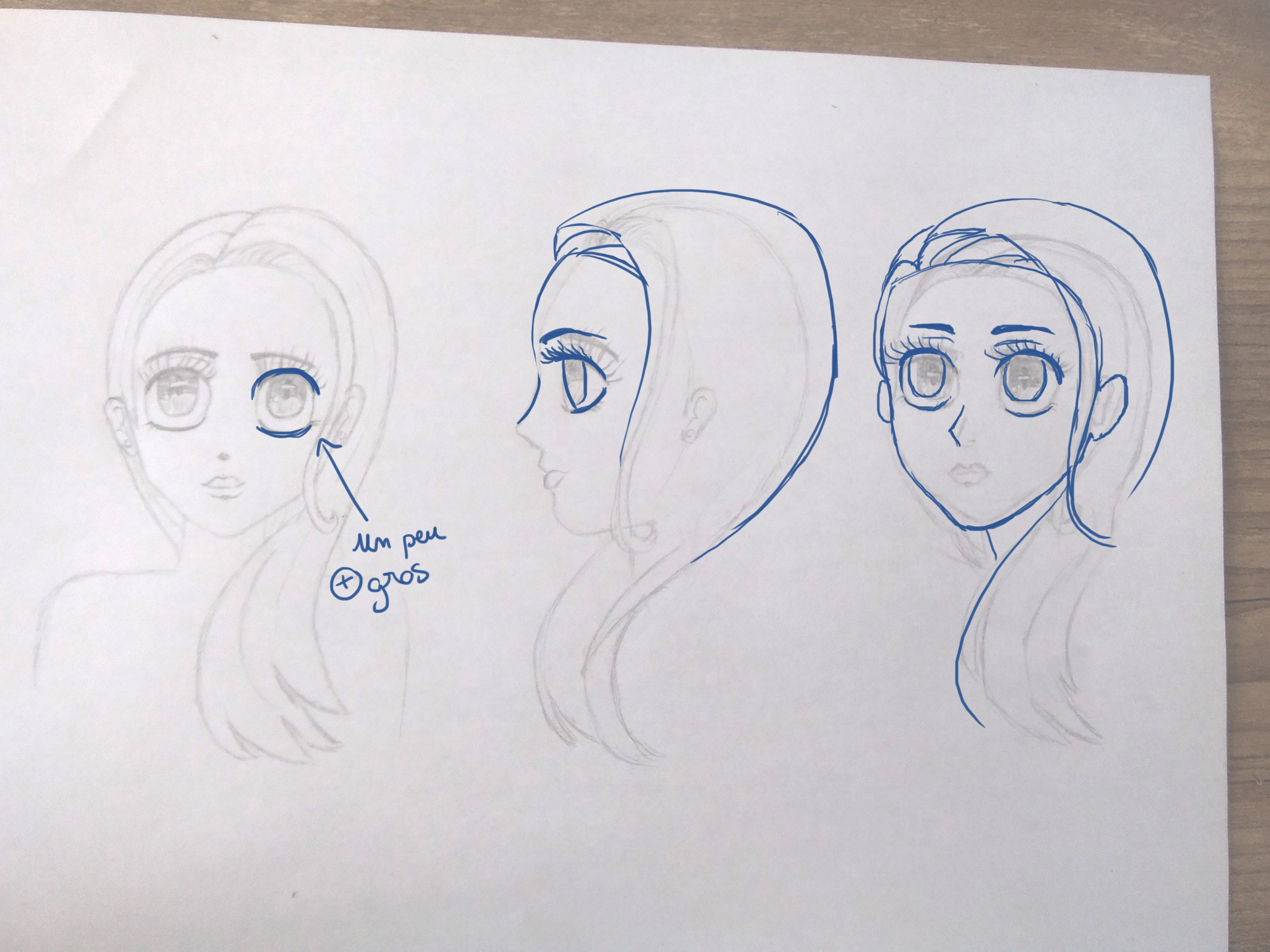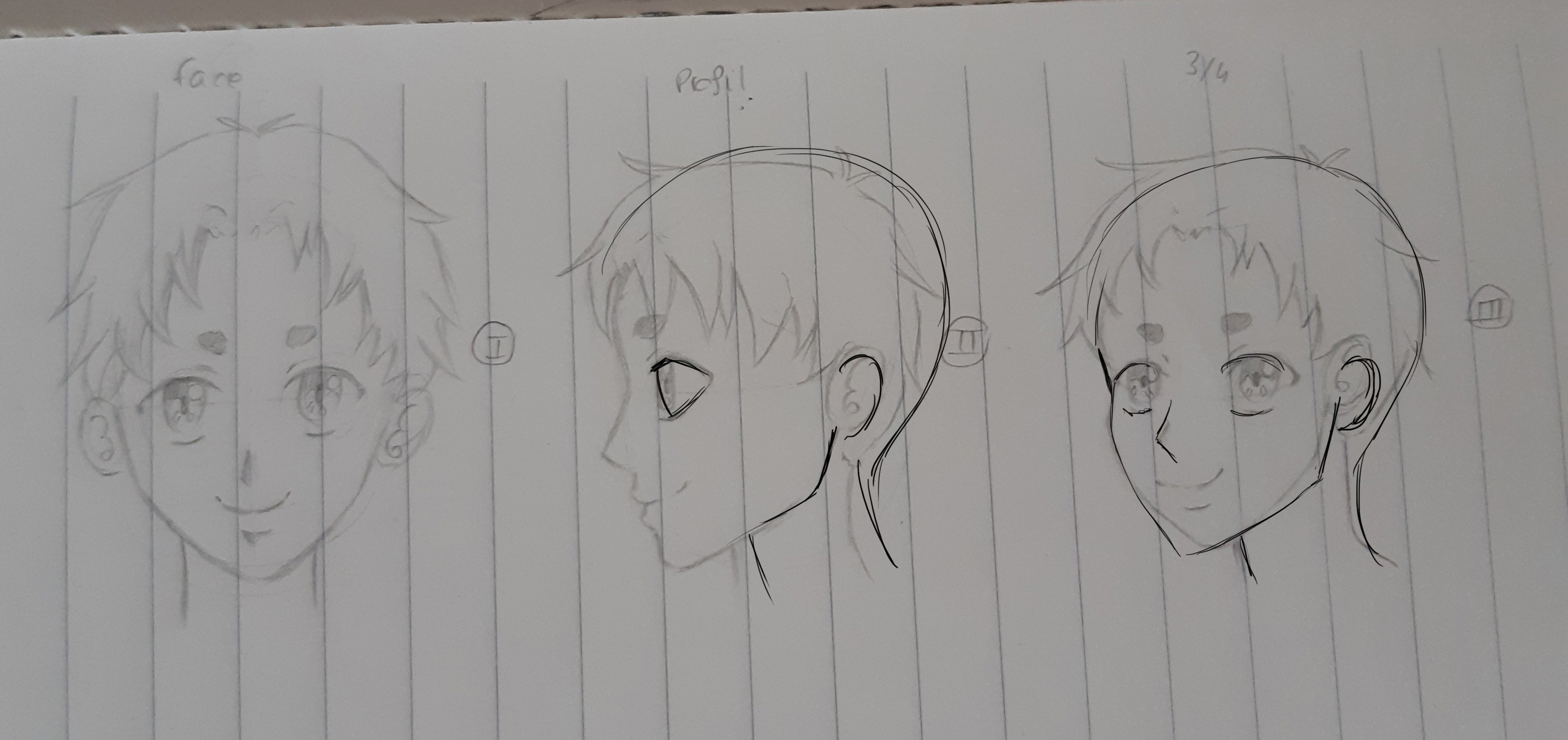Voici mon exercice. Je dois avouer que j'ai un peu de peine avec le visage de profil et de 3/4, j'ai l'impression que quelque chose cloche...