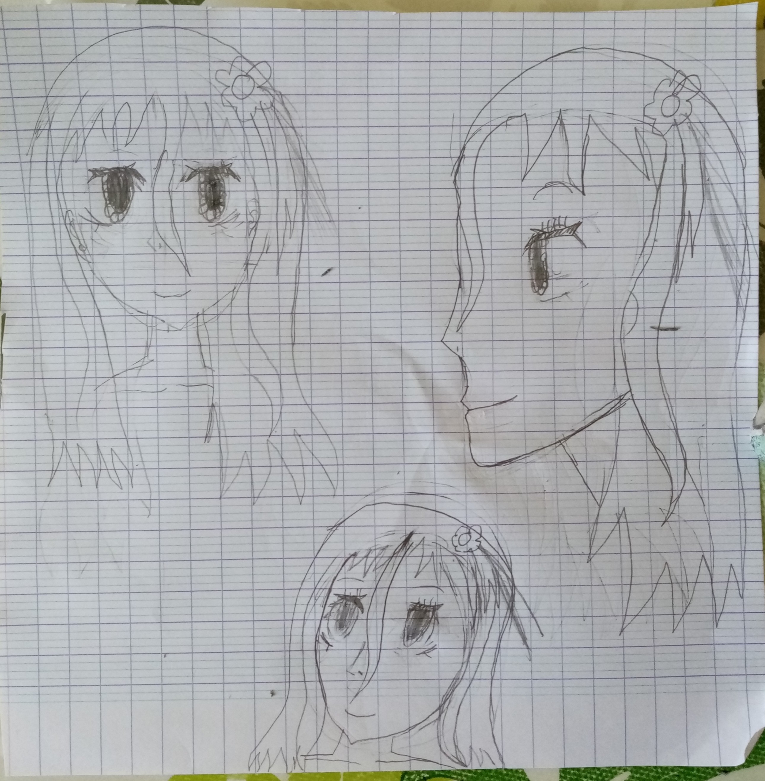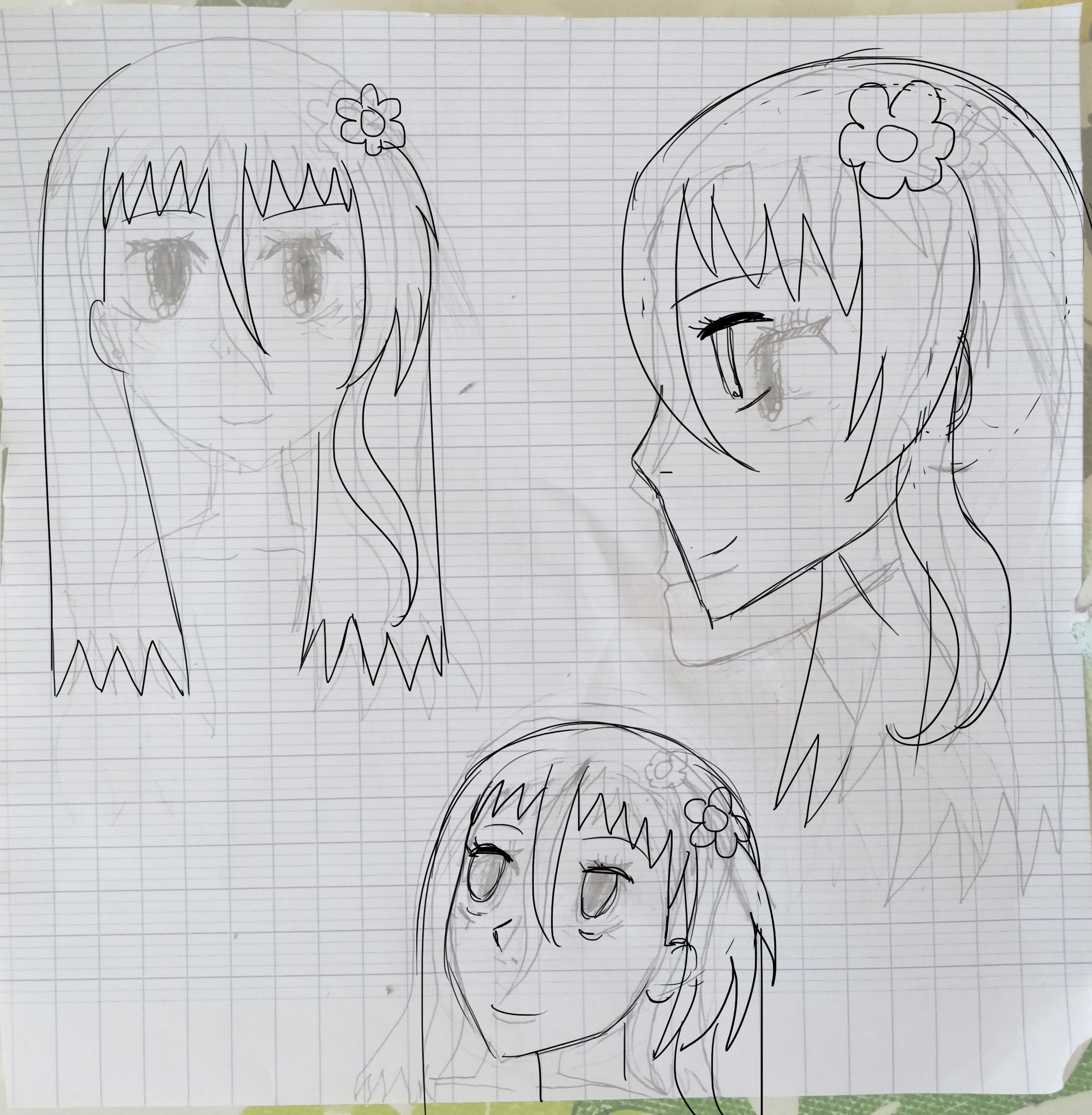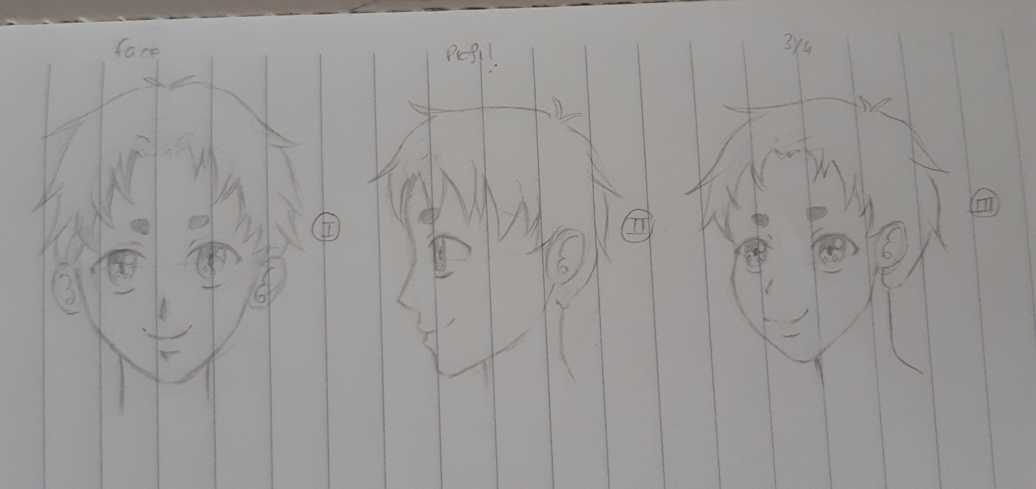 Here is my exercise. I'm still having trouble drawing the profile of the face. For now, it’s just the face from the front.
