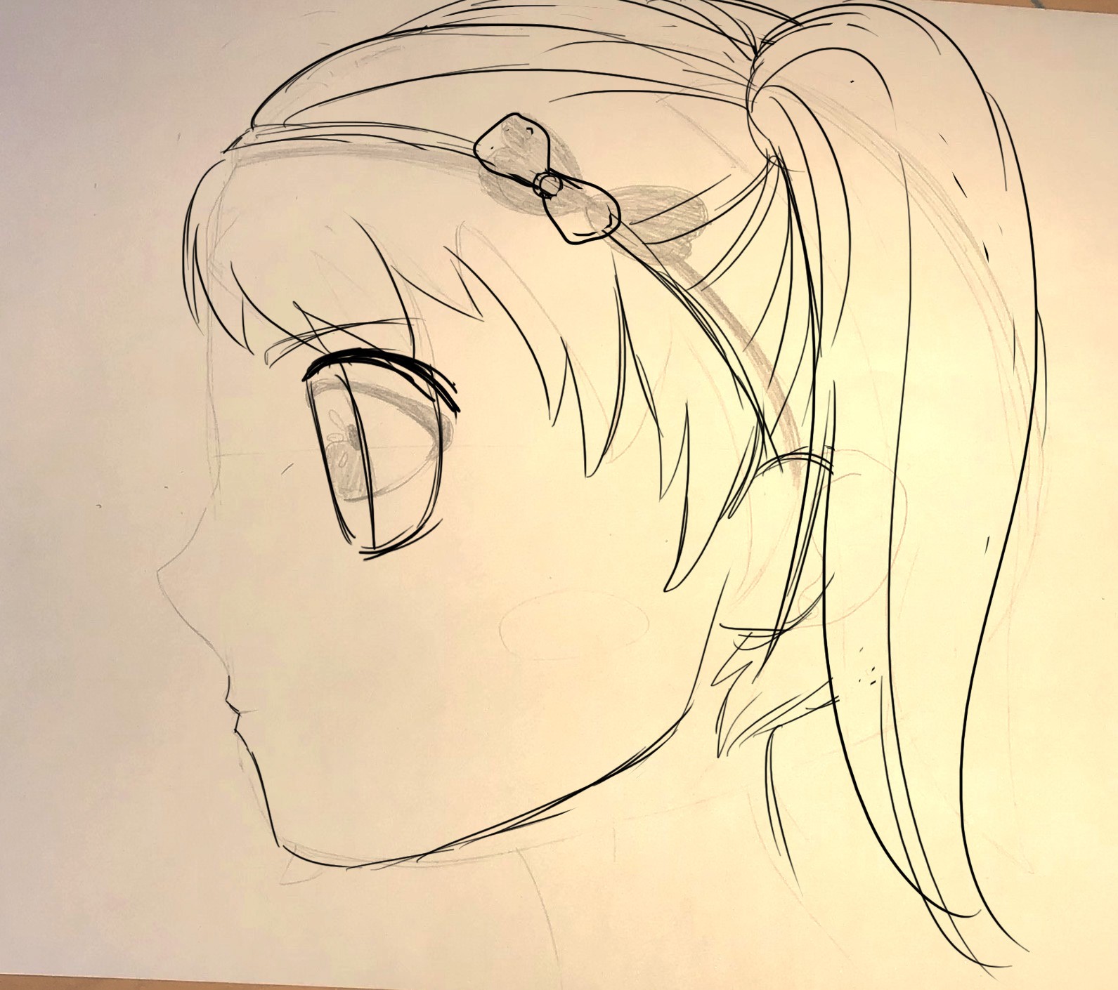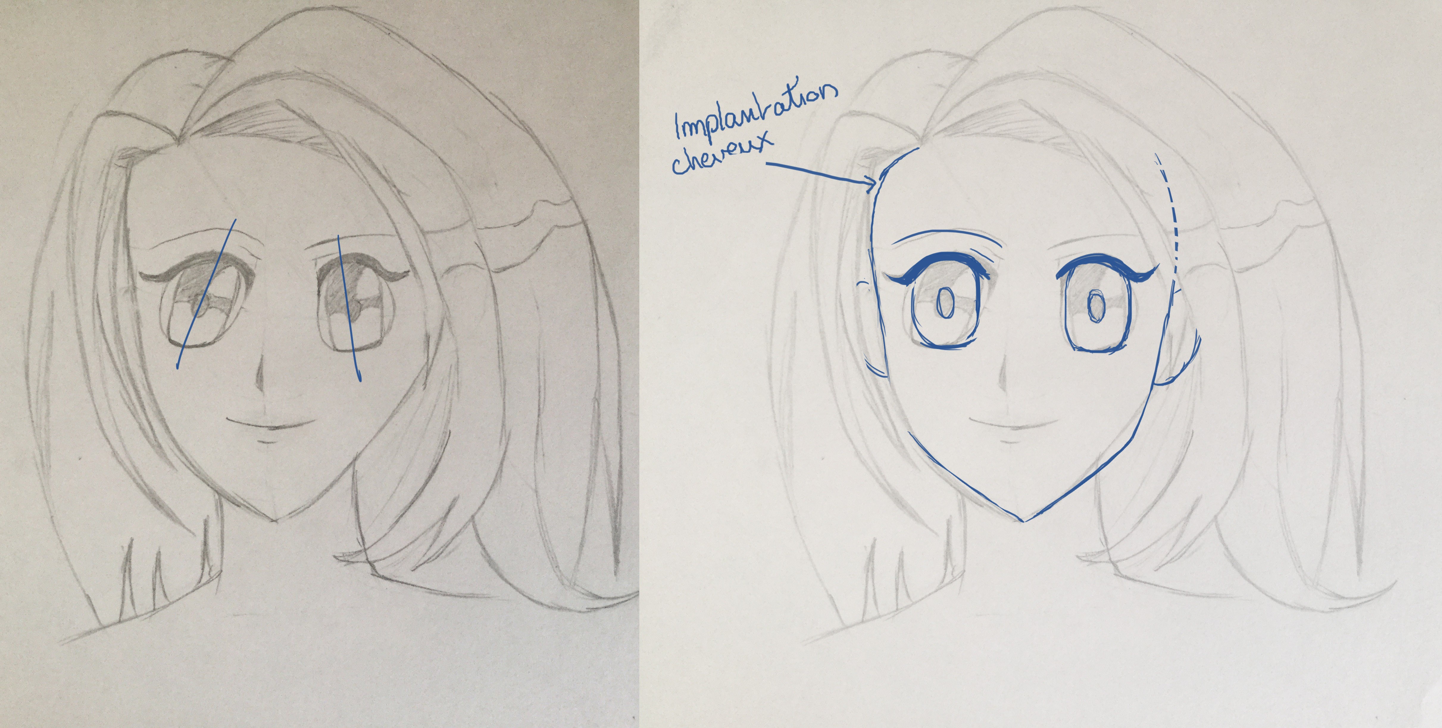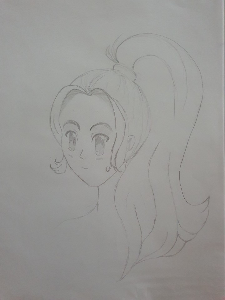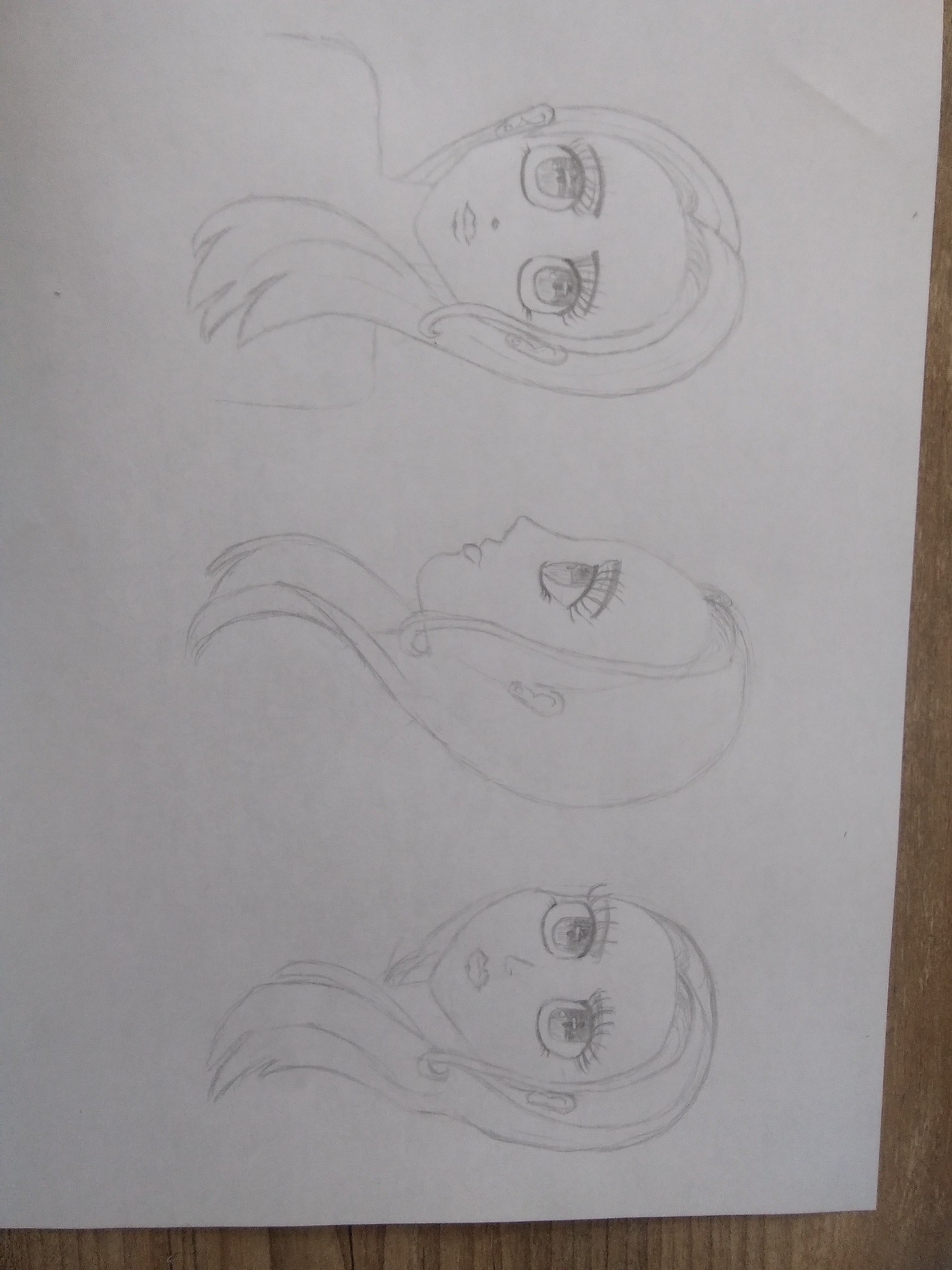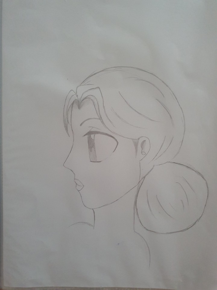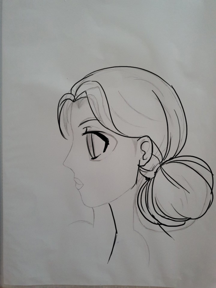 De profil, je te joins une correction mais ce sont des petits ajustements à vrai dire ^^ Les yeux sont trop grandes, les oreilles trop petites, le cou placé trop vers l'avant et il y a des choses à revoir sur les mèches de cheveux.