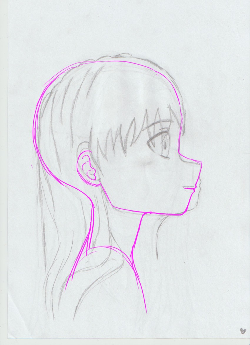 Watch out for her profile, her jawline goes too much into a triangle downwards. The angle shouldn't be that sharp :)