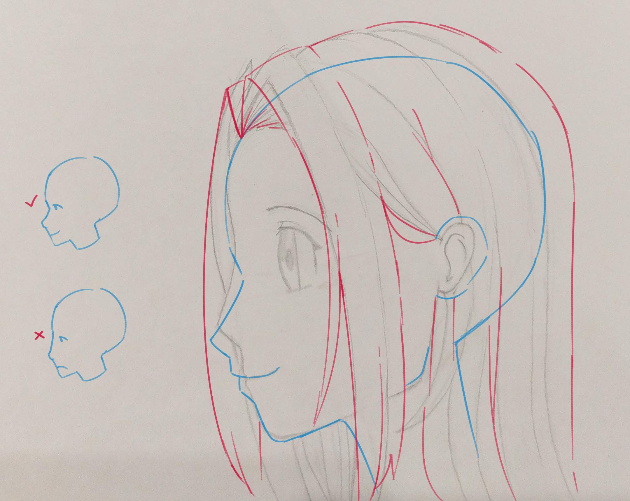 For the profile view, just make sure not to flatten the skull too much :)