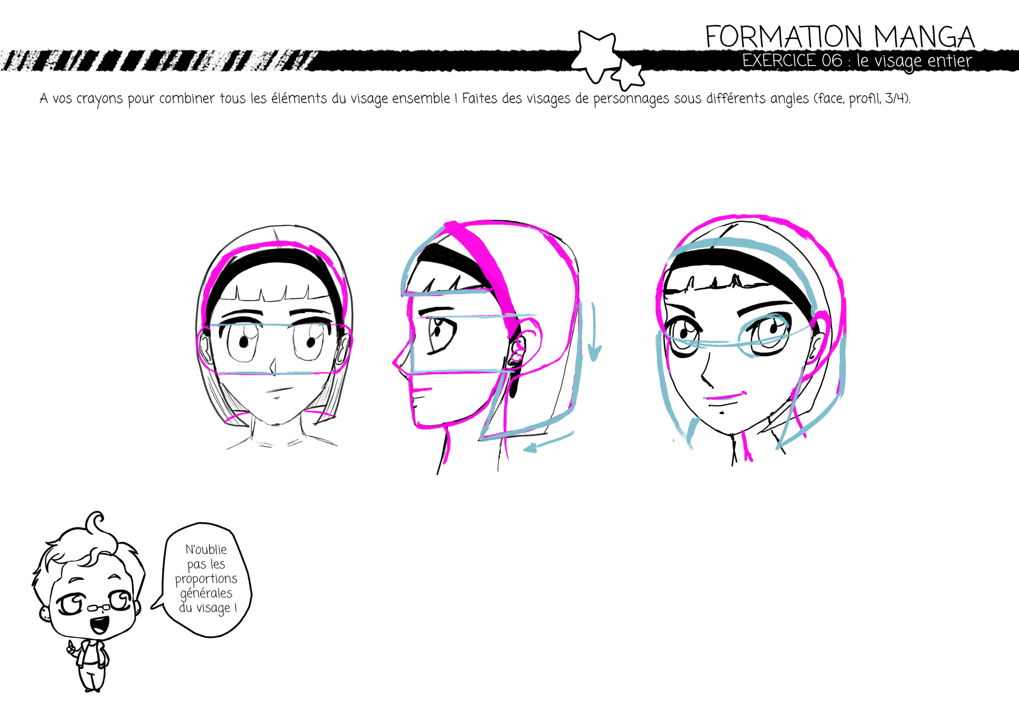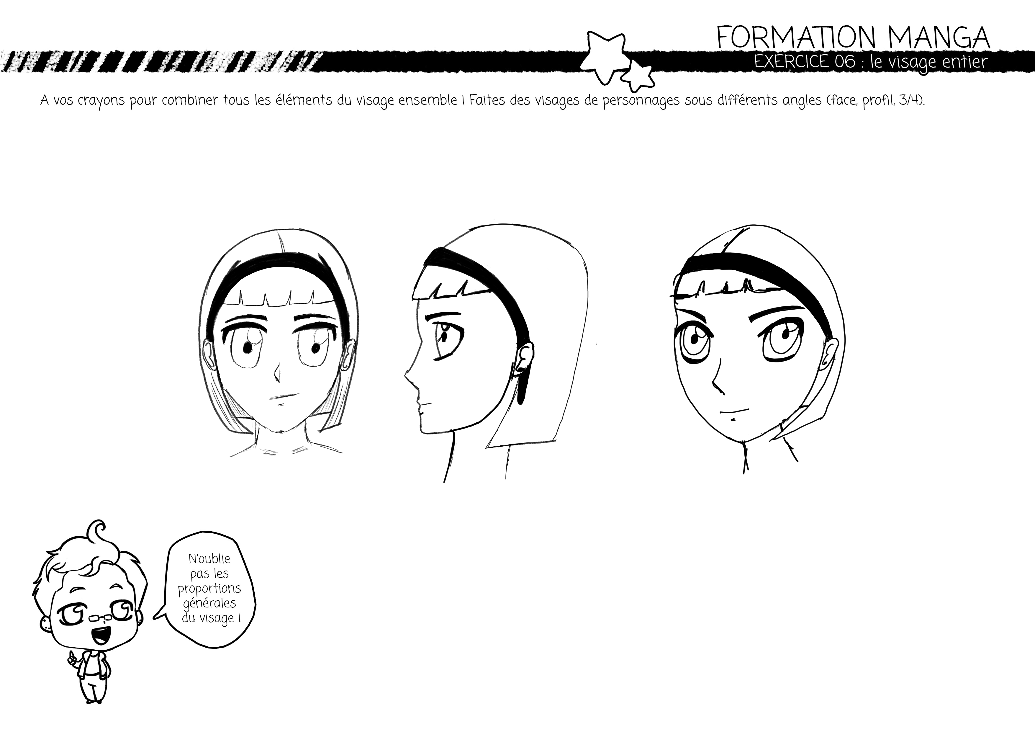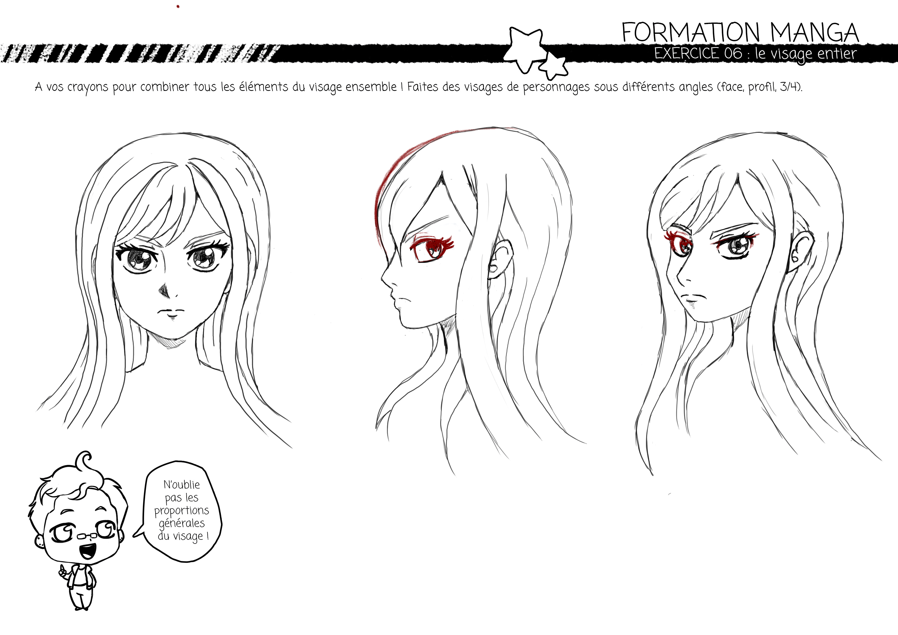 Bravo, tu t'en sors très sur le bilan visage! Je t'ai fait là encore un correctif en image pour que mes explications soient plus parlante. Le premier petit défaut que j'ai repéré, c'est la taille des oreilles que tu fais globalement trop petite. N'oublie pas de les placer en te basant sur l'oeil pour le haut de l'oreille et le nez pour le bas.