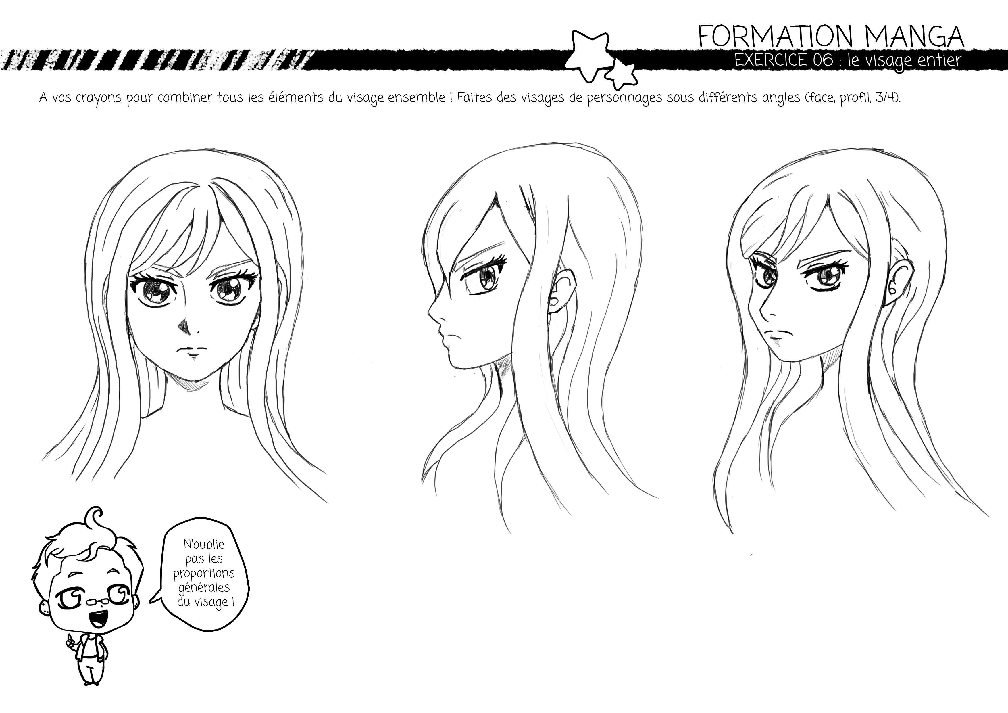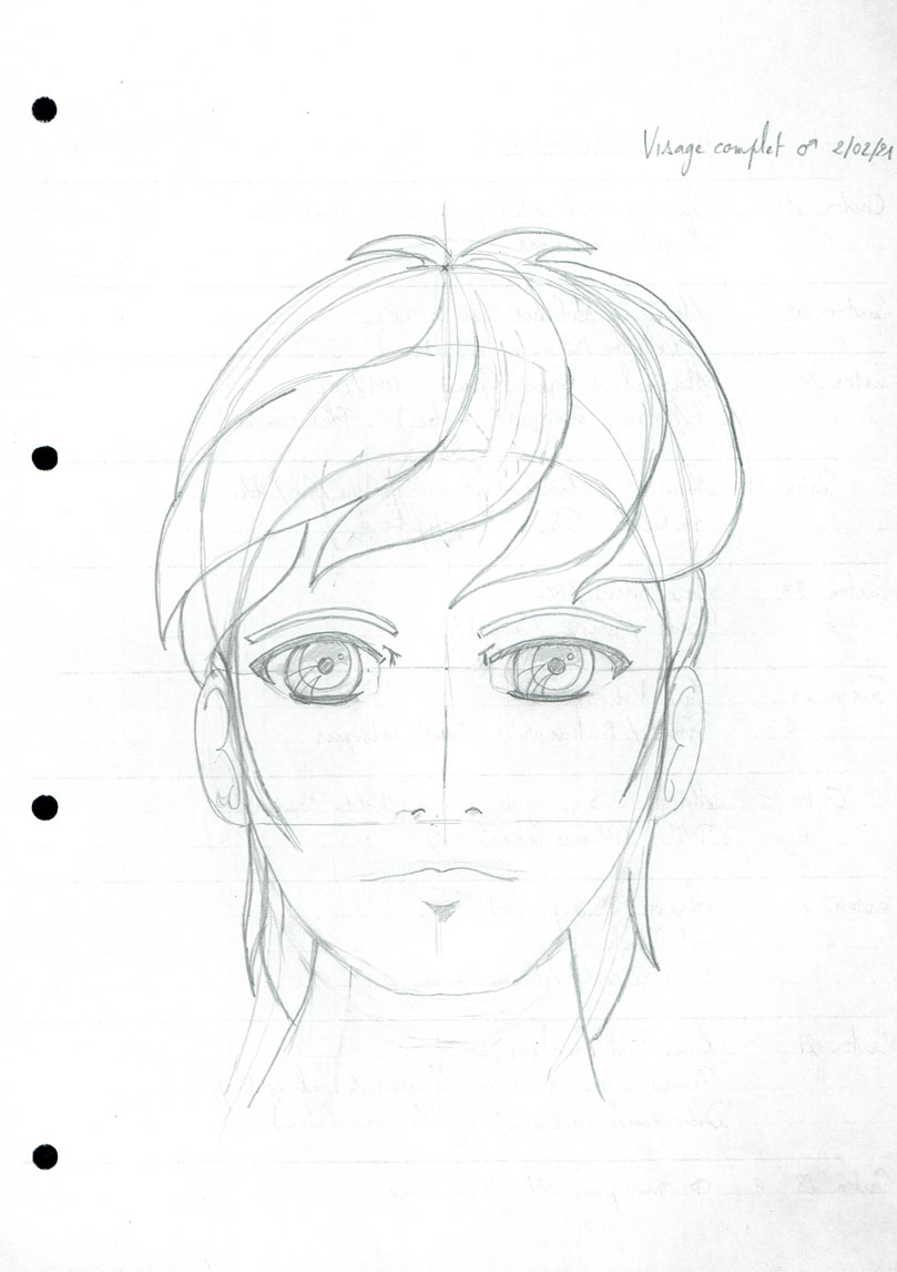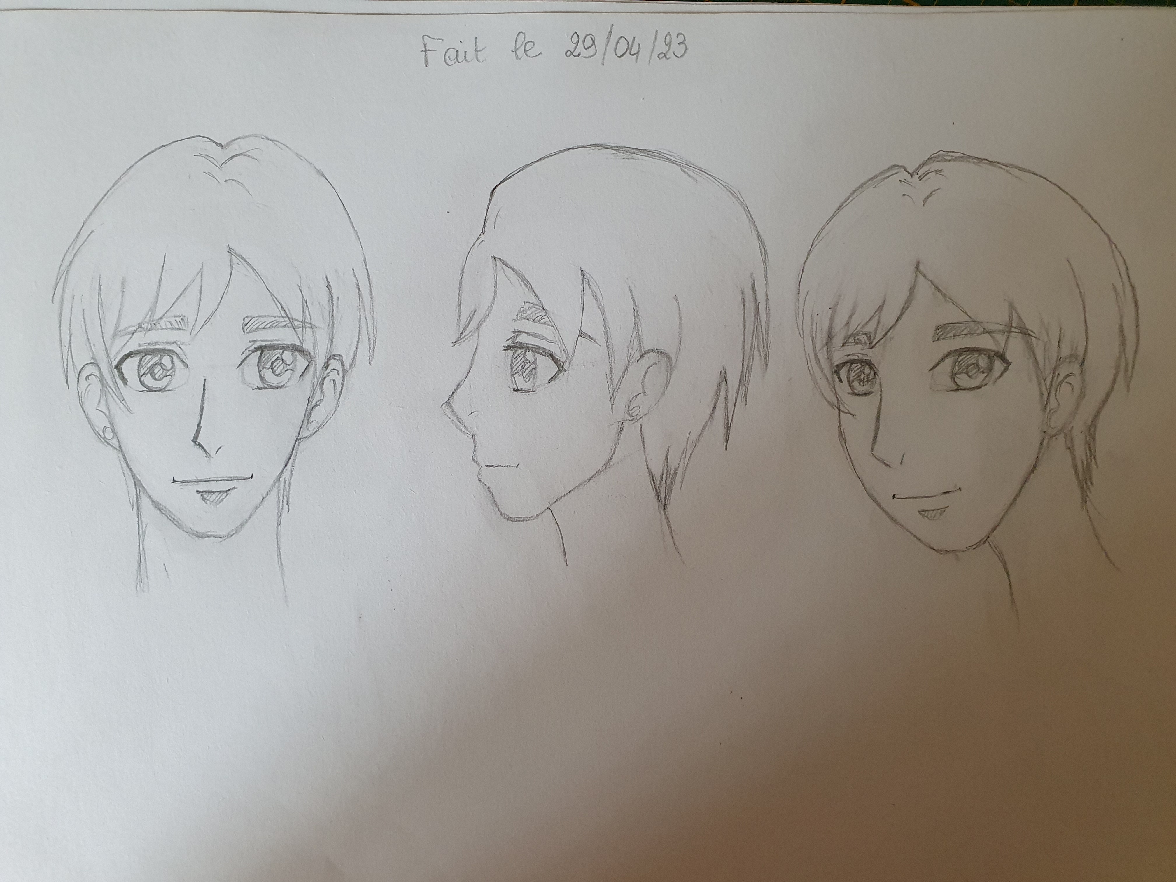 Ton visage de face est le mieux maîtrisé, attention quand même à la taille des yeux qui sont un poil trop grand. Tu dois avoir à peu près l'espace d'un oeil entre les deux.