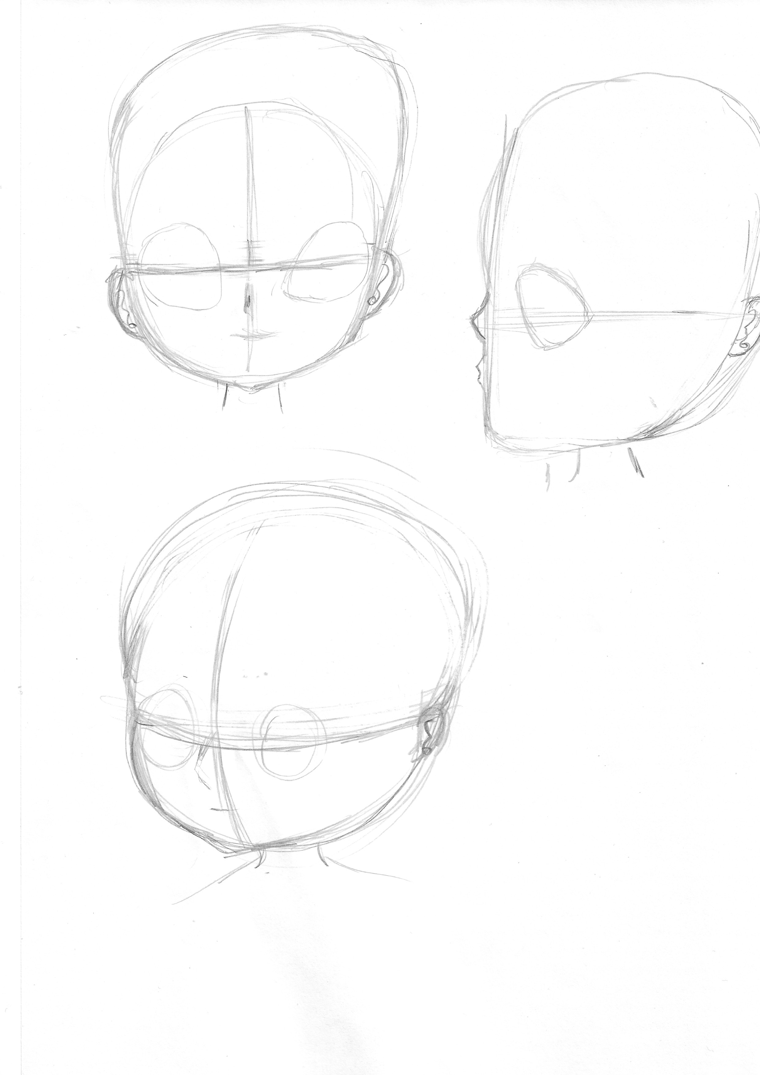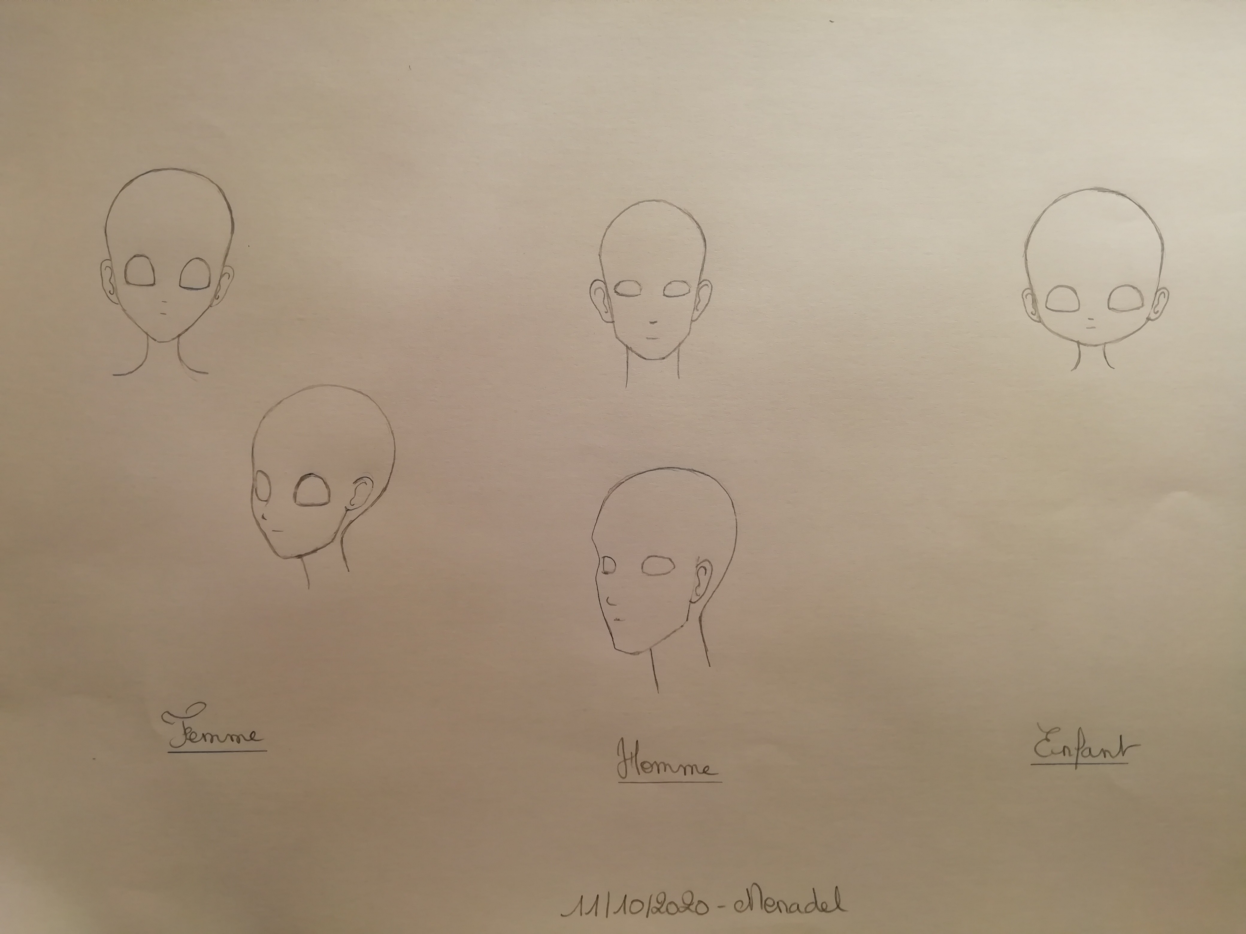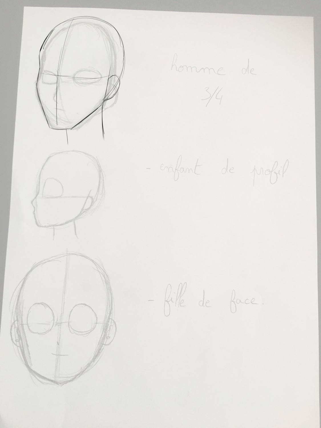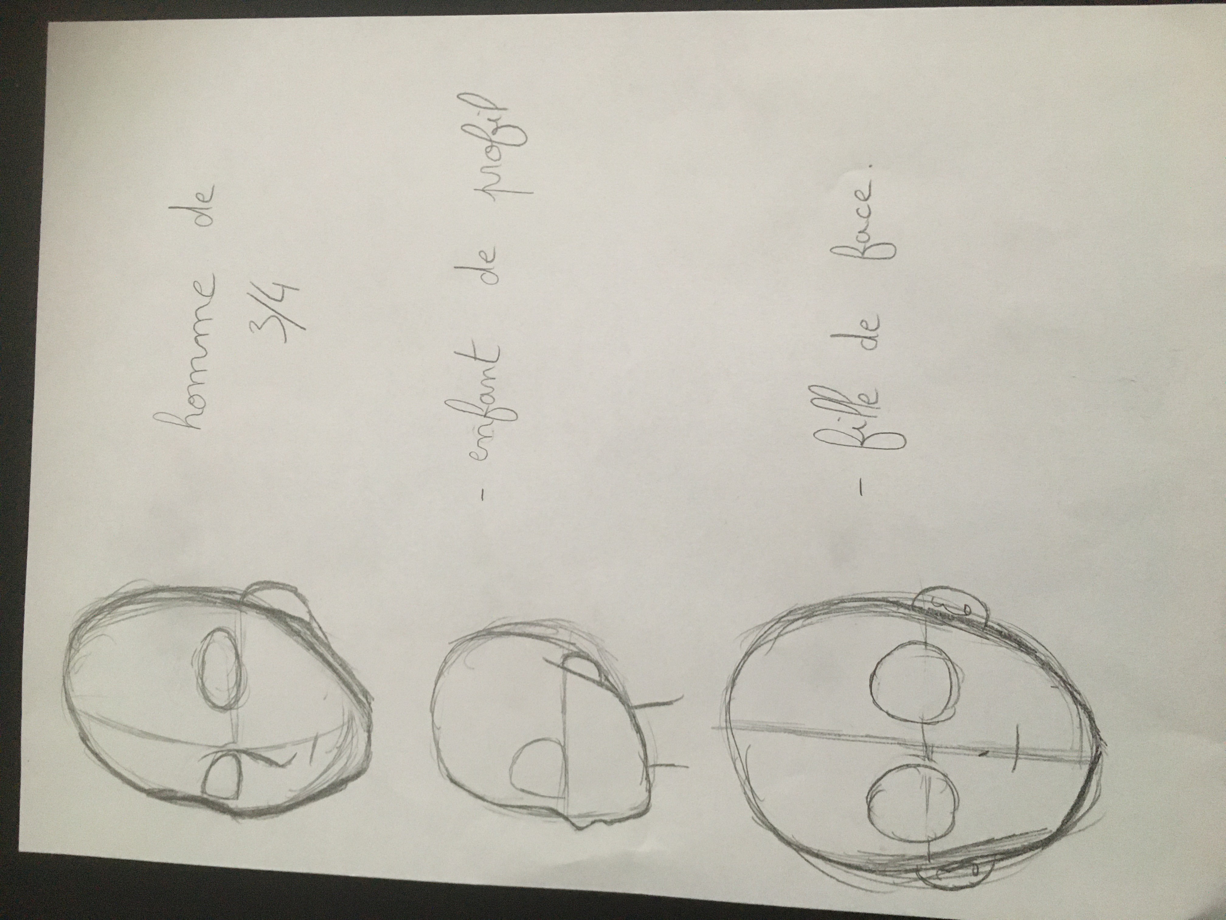 J'ai retravaillé mes croquis posant problème en espérant que cette fois-ci les côtés des visages soient assez inclinés (j'ai peur de trop exagérer).