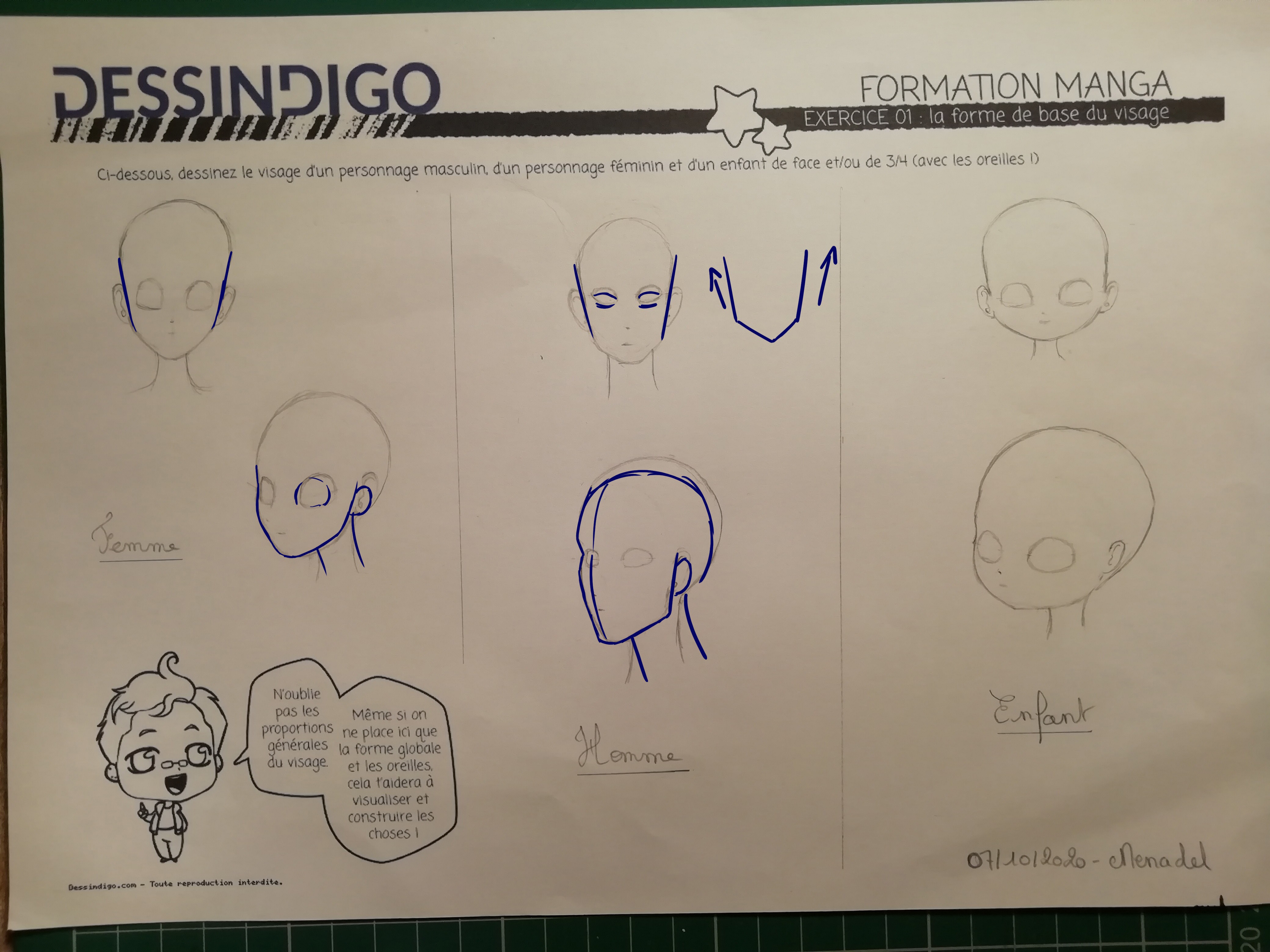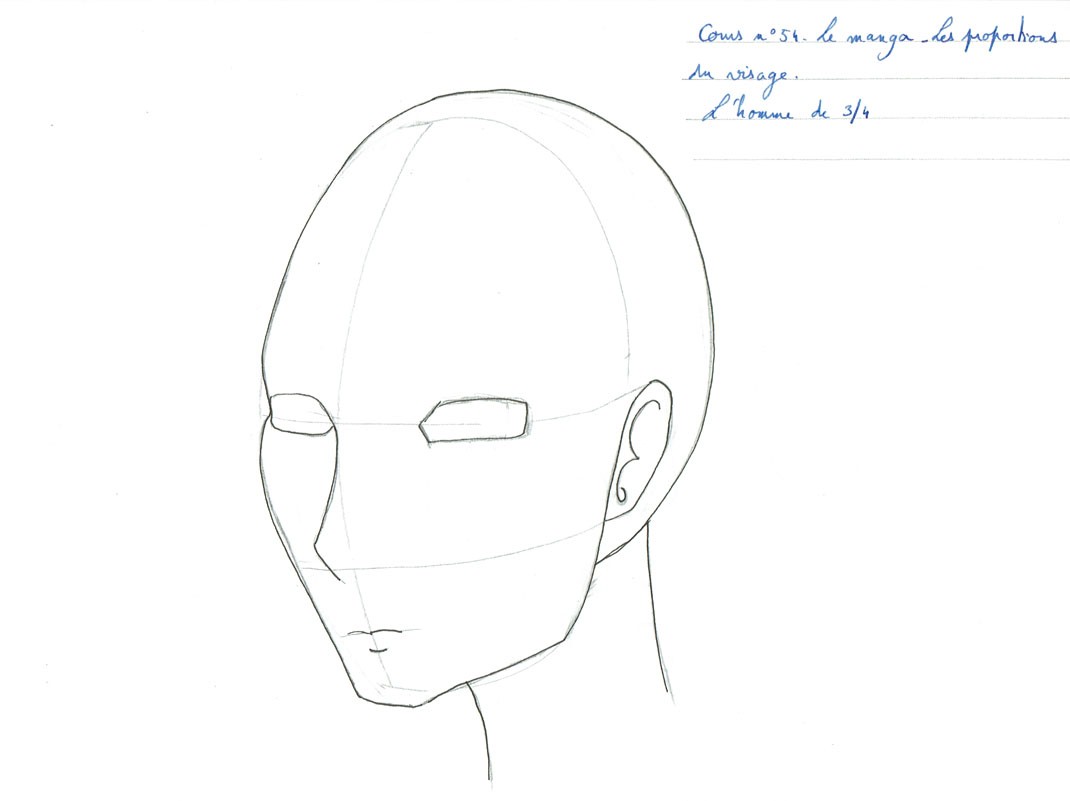 > On the 3/4 view, don't curve the center line too much, otherwise, the chin ends up a bit too far back, the curve should remain quite slight ^^