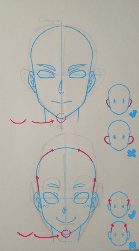 Attention le cou ne commence pas au niveau du menton. Utilise ton propre visage en référence ou des photos. Pareil pour le crâne qui ne descend pas plus bas que la mâchoire.