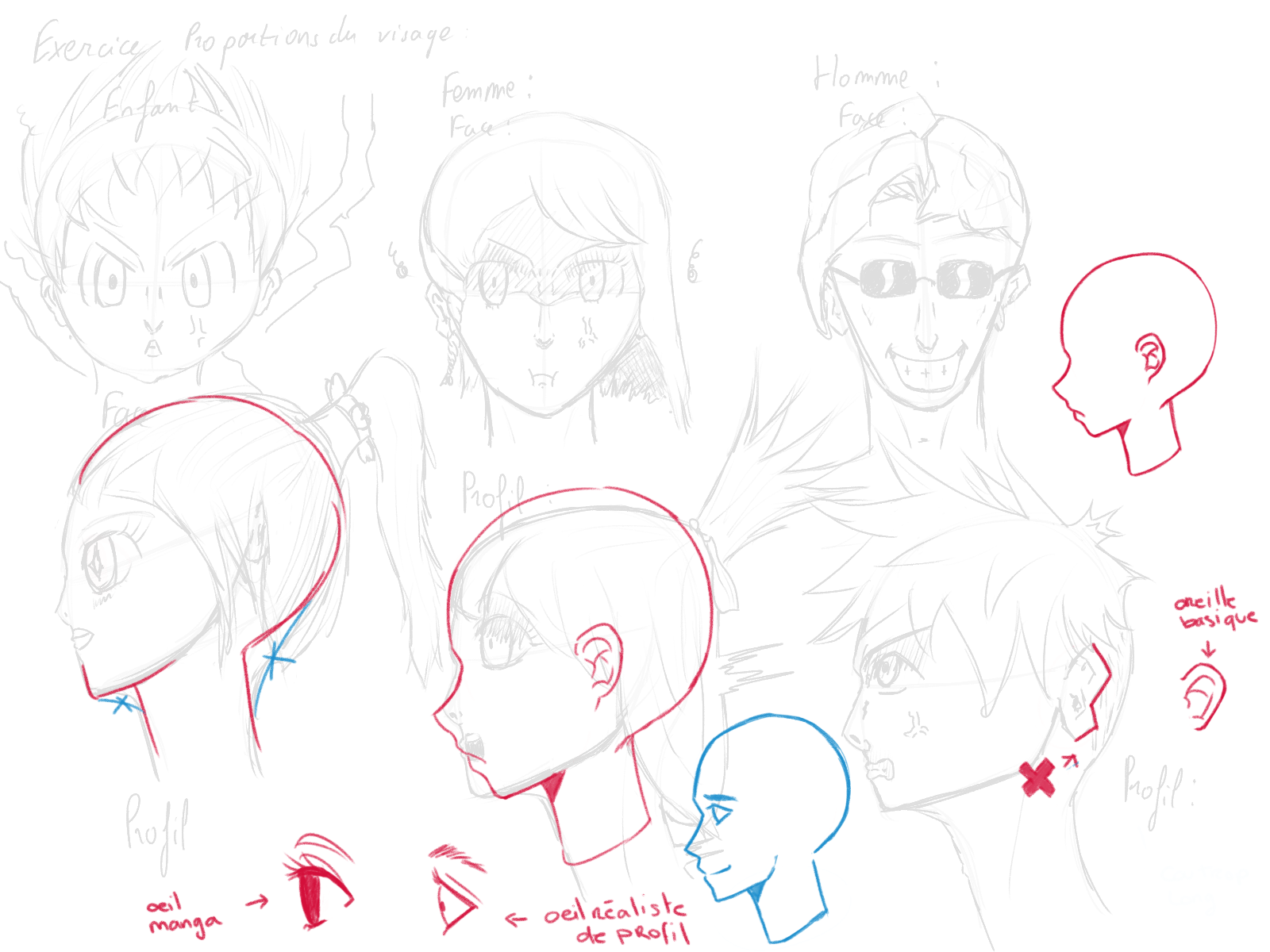 Tu as bien compris comment construir le visage ce qui fait une bonne base pour réajuster tes visages :D