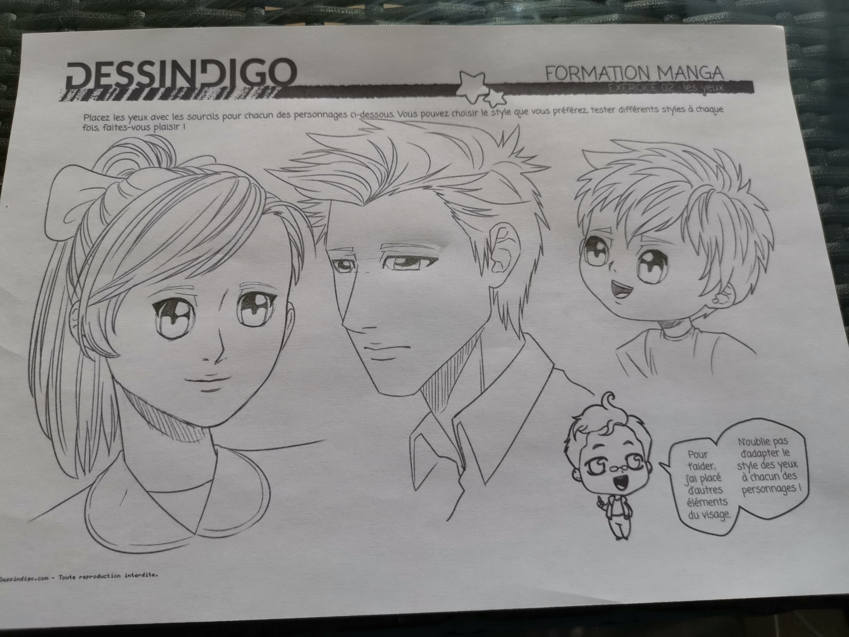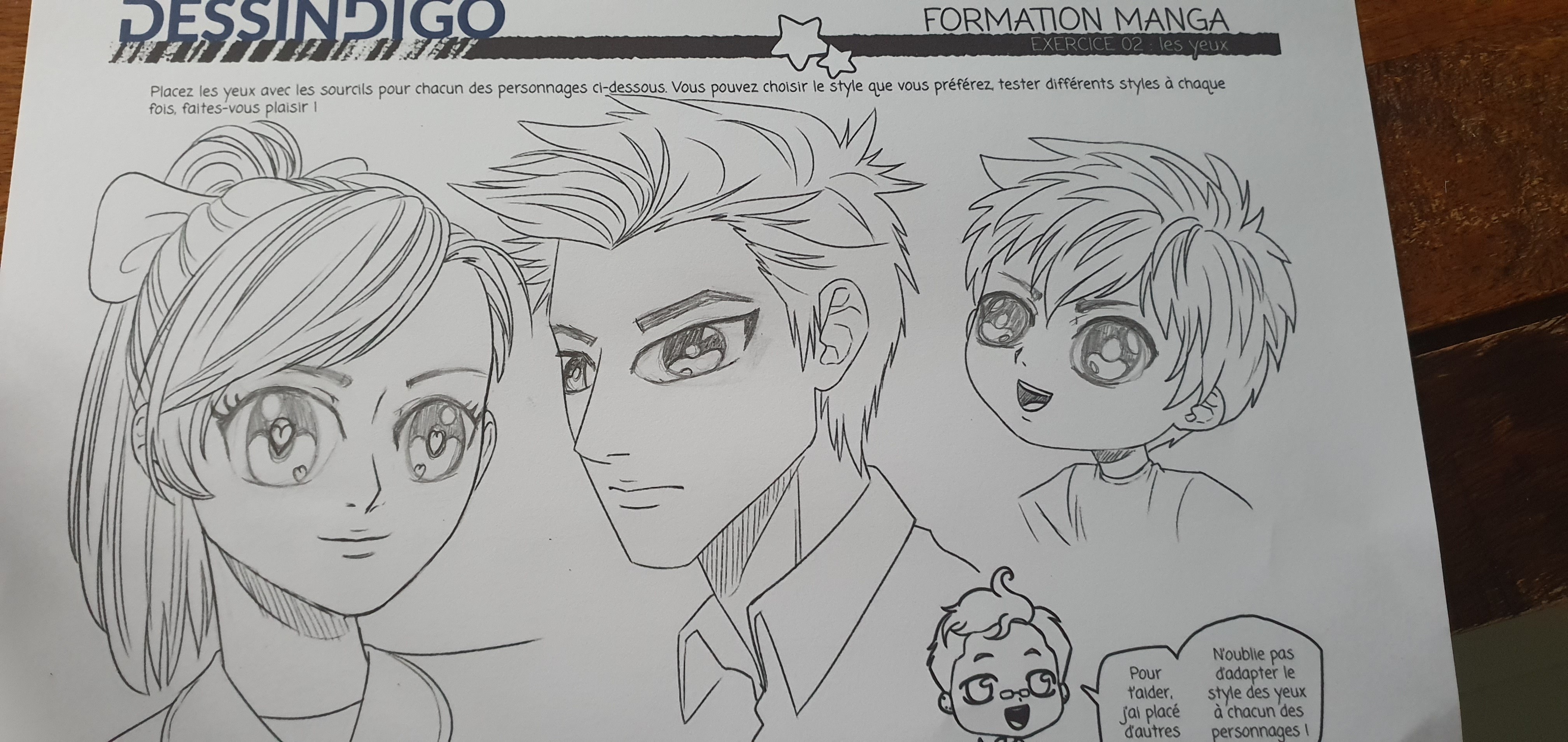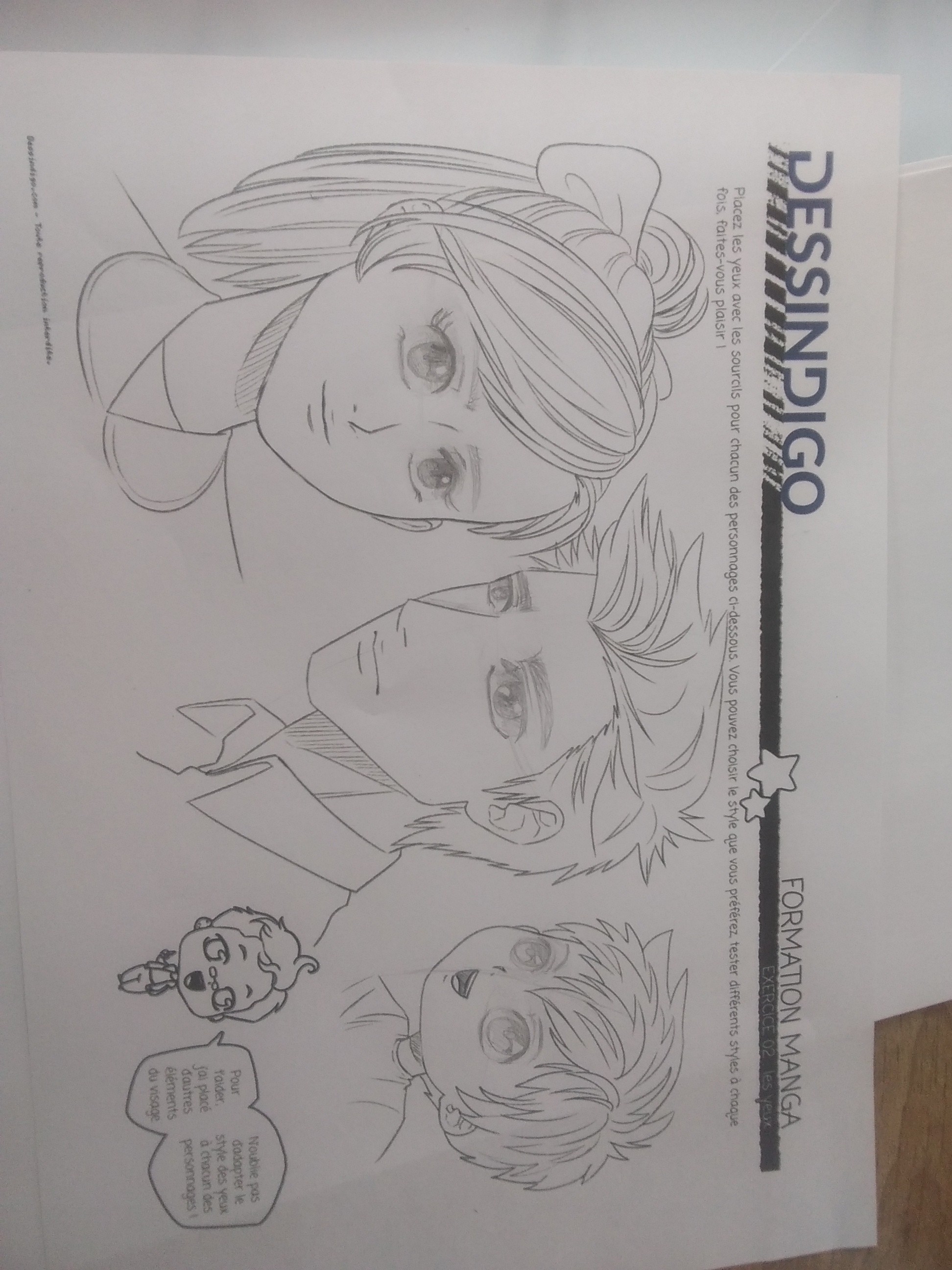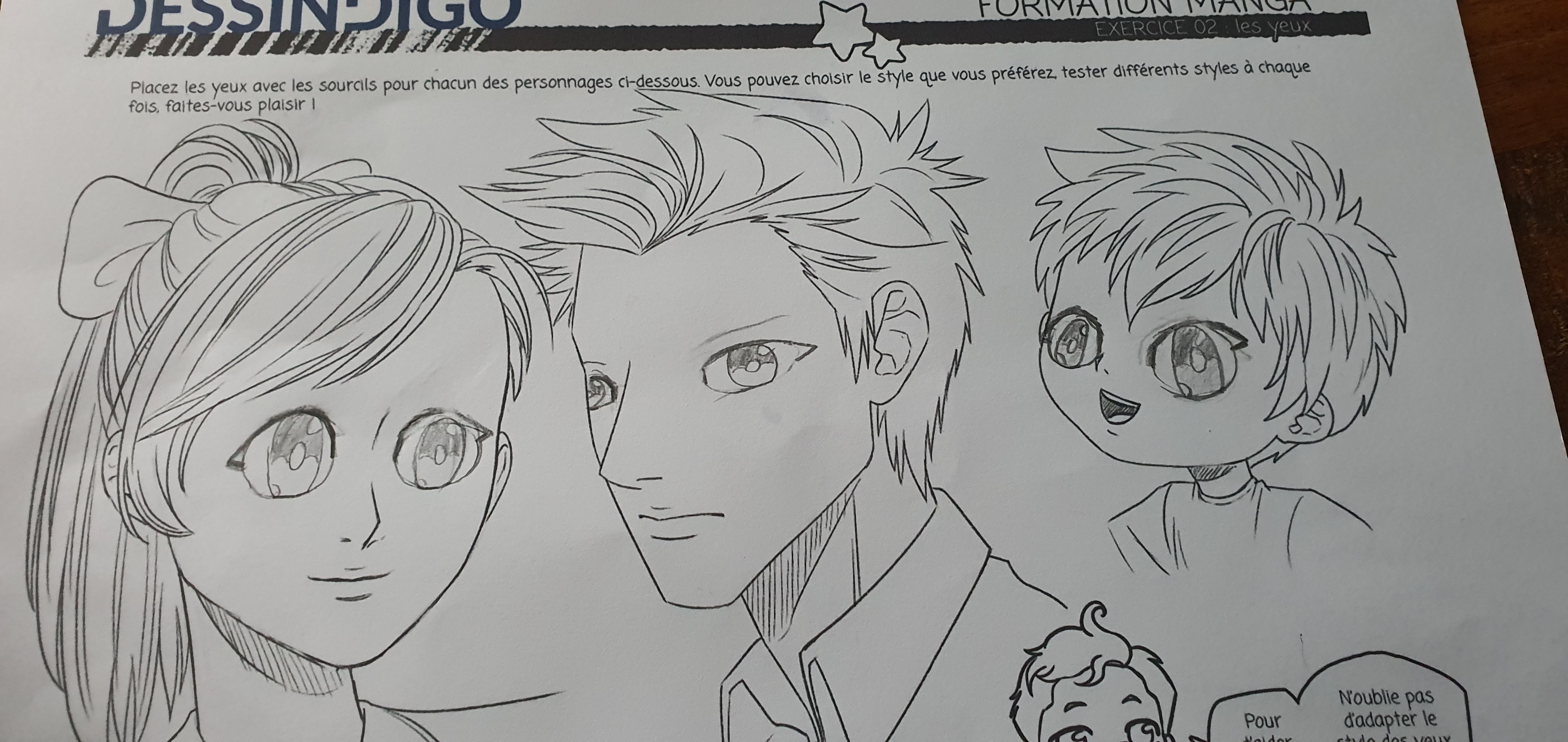 J'ai eu beaucoup de difficultés à dessiner les yeux pour la fille...