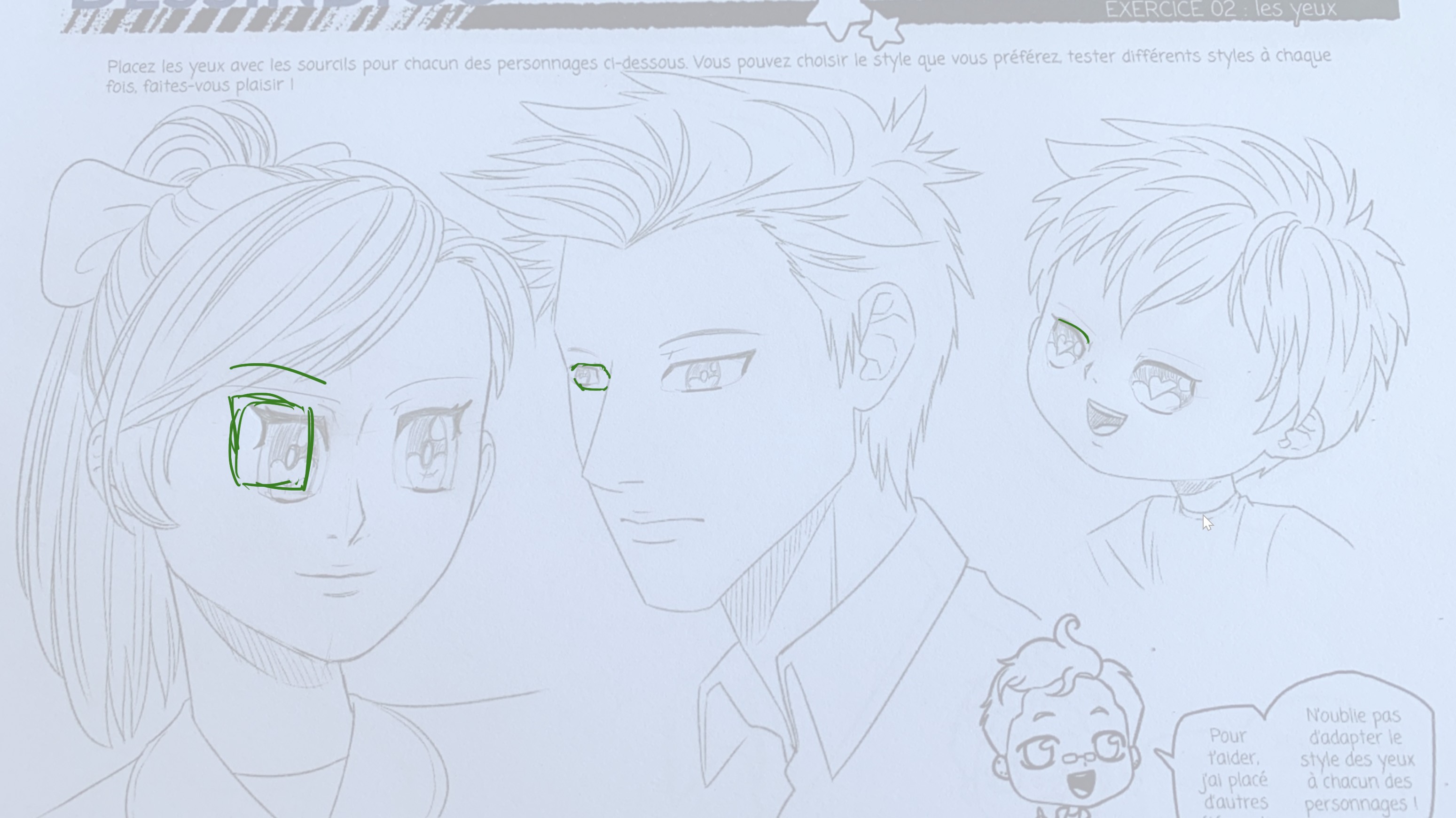 Pour le garçon, on Ă©tait presque sur un perfect, lâĆil le plus Ă©loignĂ© est simplement trop petit. Et pour l'enfant, c'est du chipotage, mais lâĆil vers le fond a une lĂ©gĂšre inclinaison sur le haut. C'est suffisamment lĂ©ger pour ne pas ĂȘtre dĂ©rangeant, mais comme tu as ce souci aussi sur la fille, je prĂ©fĂšre te l'indiquer pour que tu fasses attention lors des fois suivantes :3