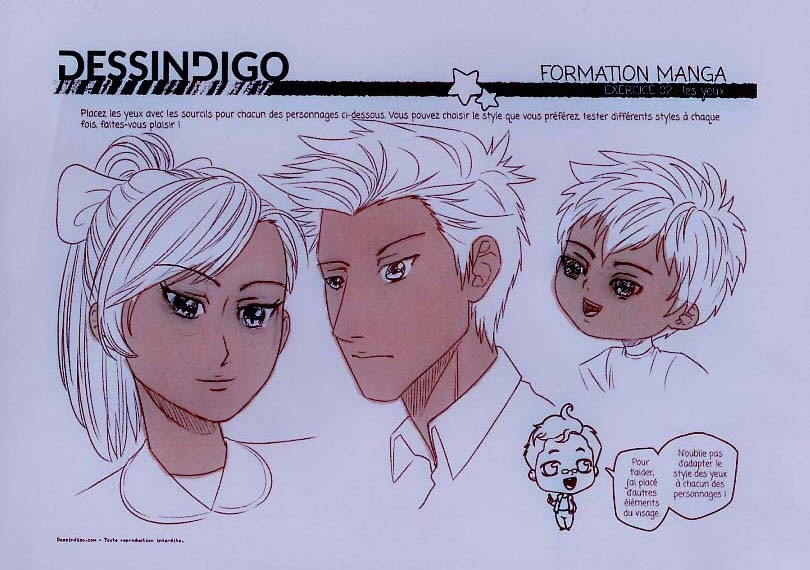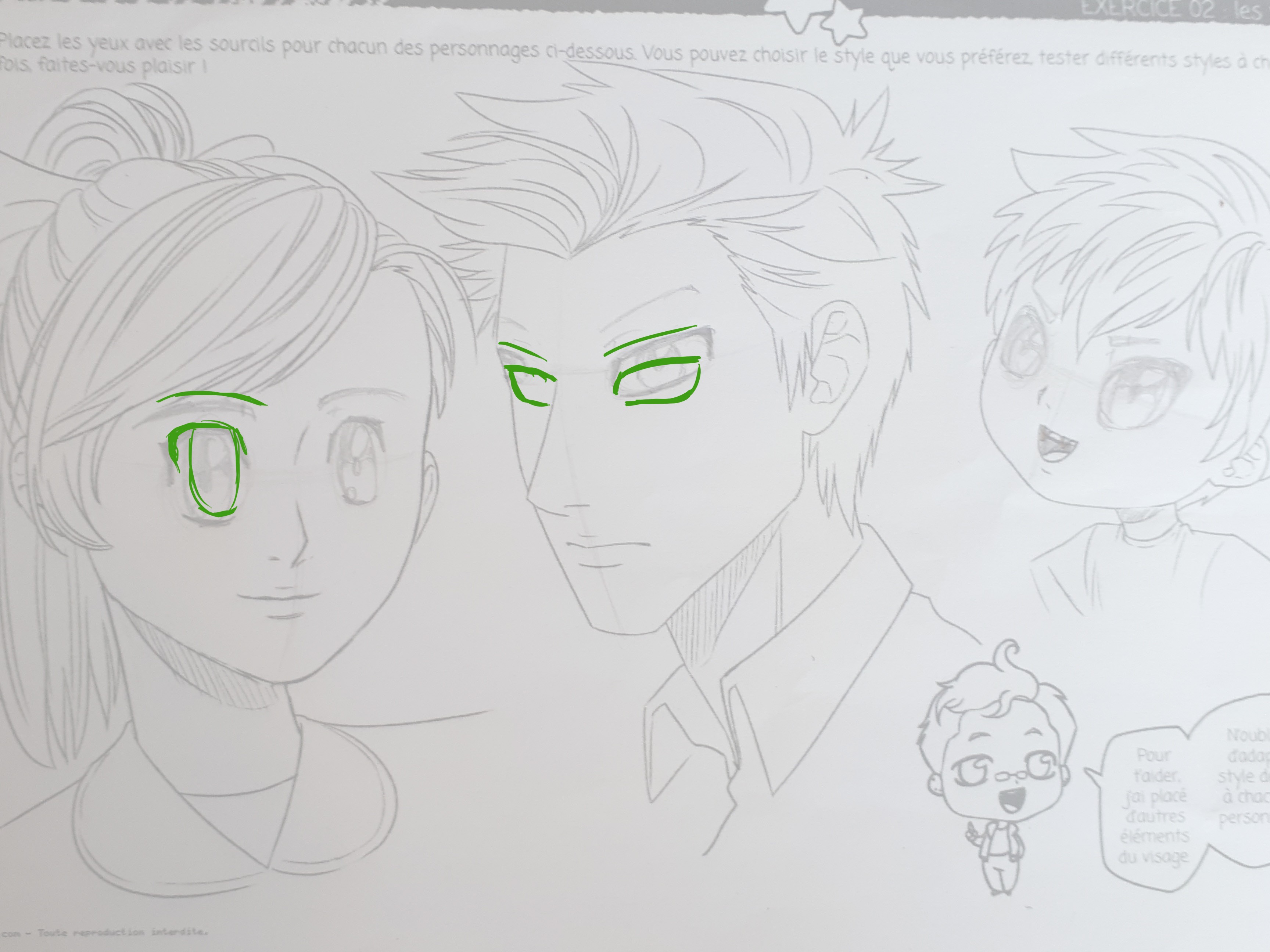Tu as la ligne des yeux souvent en biais, du coup il faut corriger. Sur la fille, tu as un oeil trop incliné. Sur le garçon, un oeil trop bas.